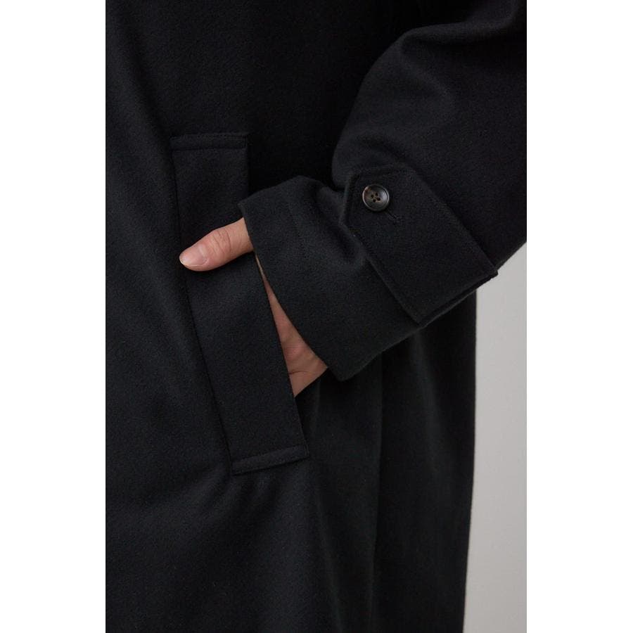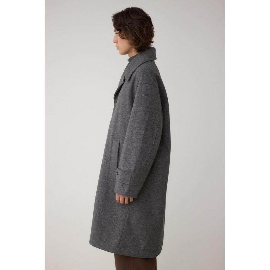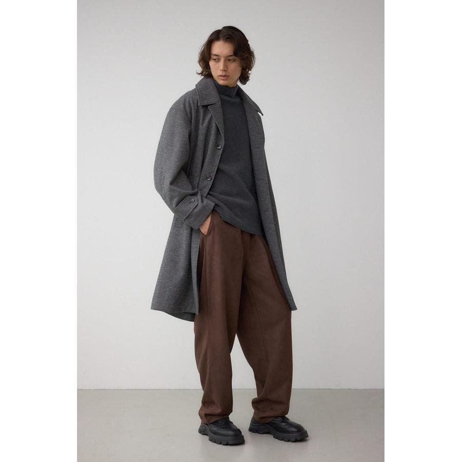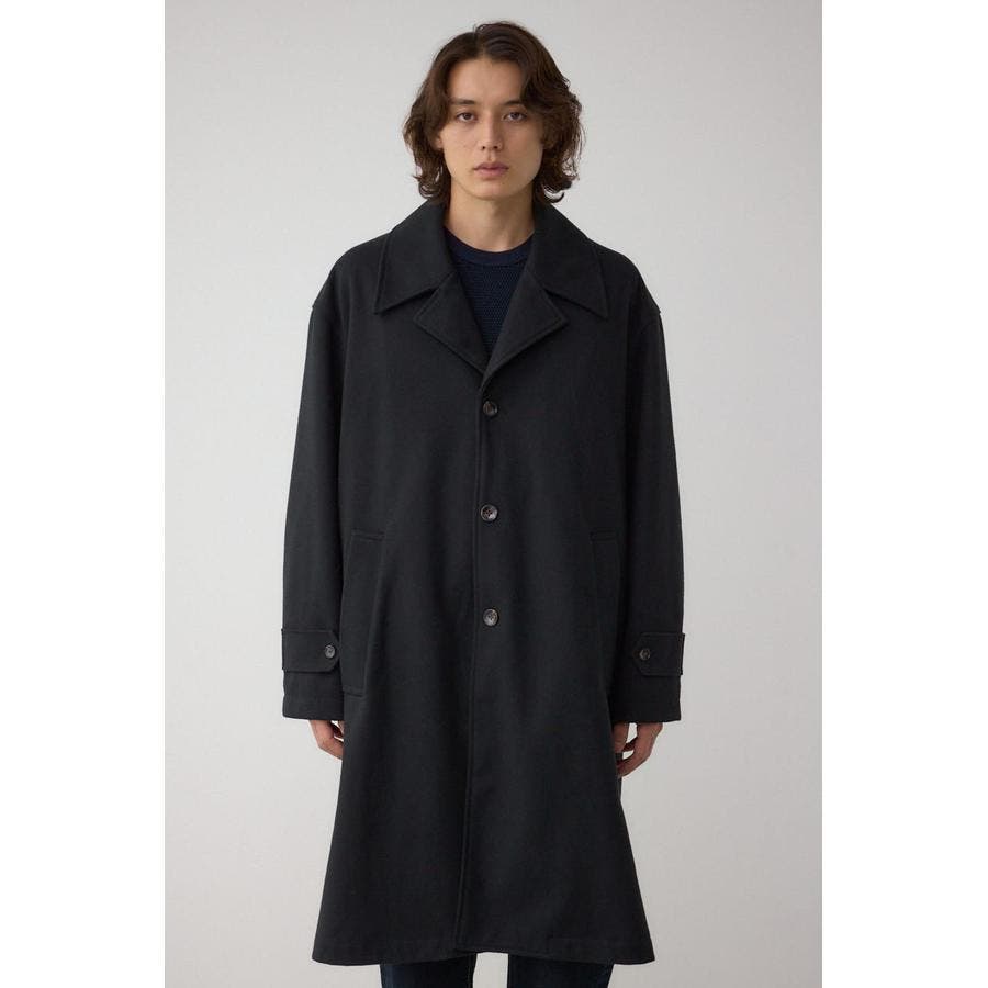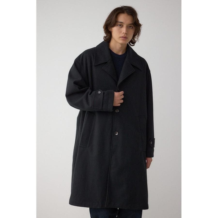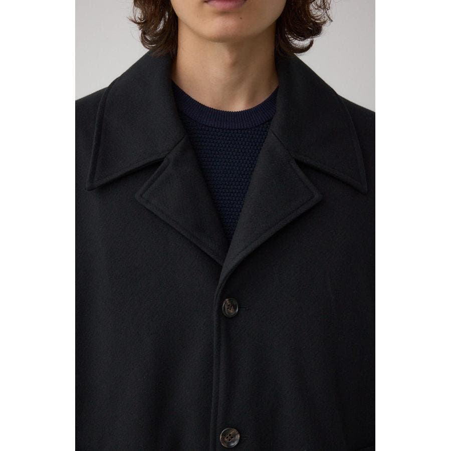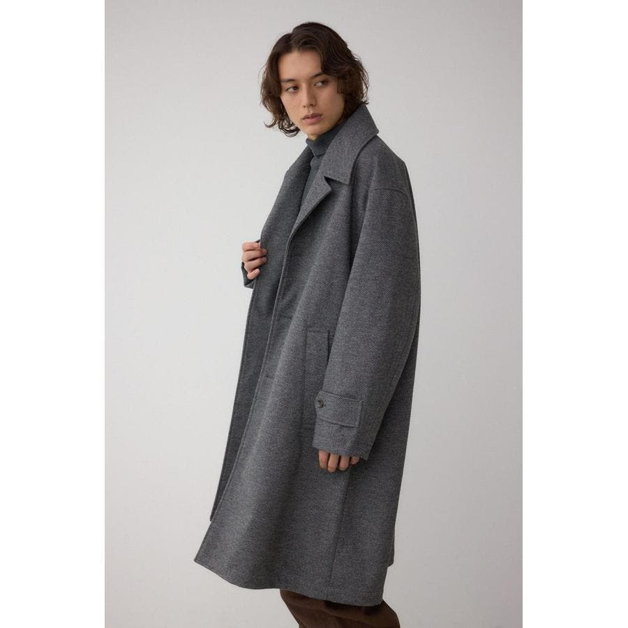 存在感のあるワイドラペルがデザインポイントのチェスターコート。