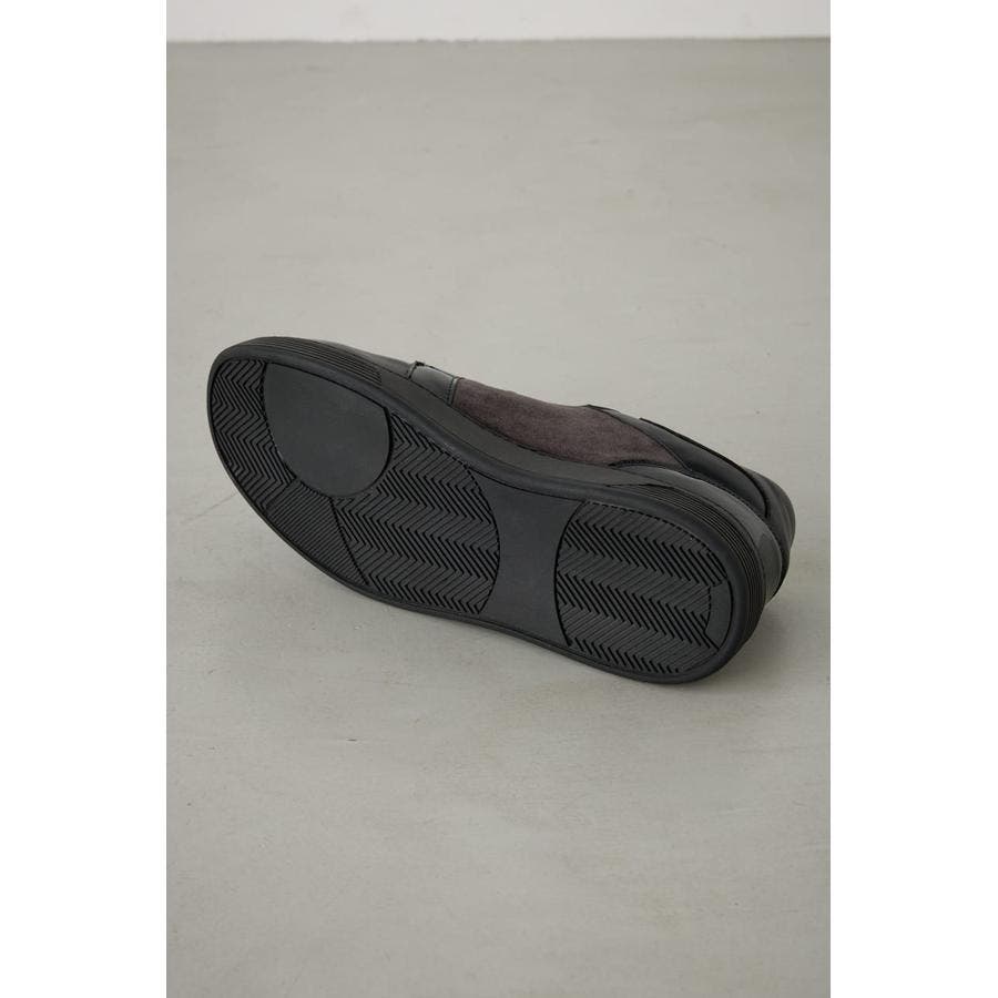 ザラザラしたスエード調の素材を使用し、靴下に色移りしない様に、履き口を合成皮革にしています。