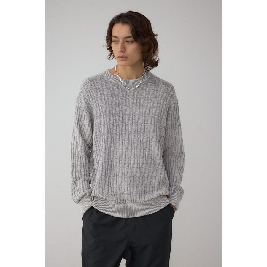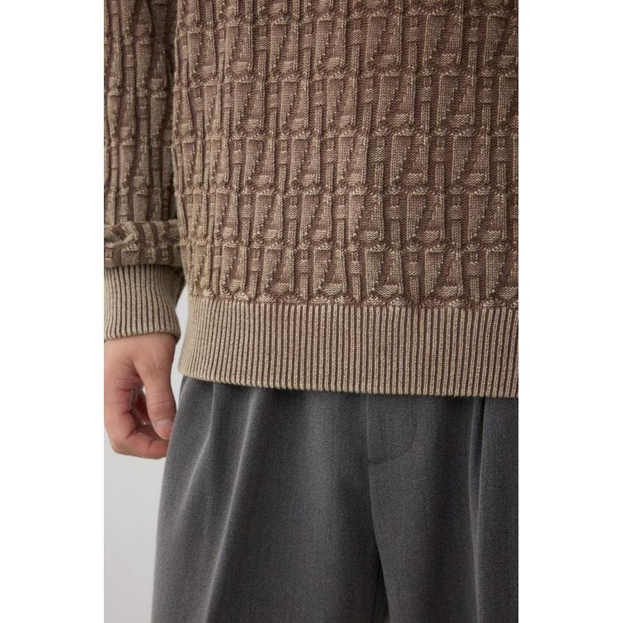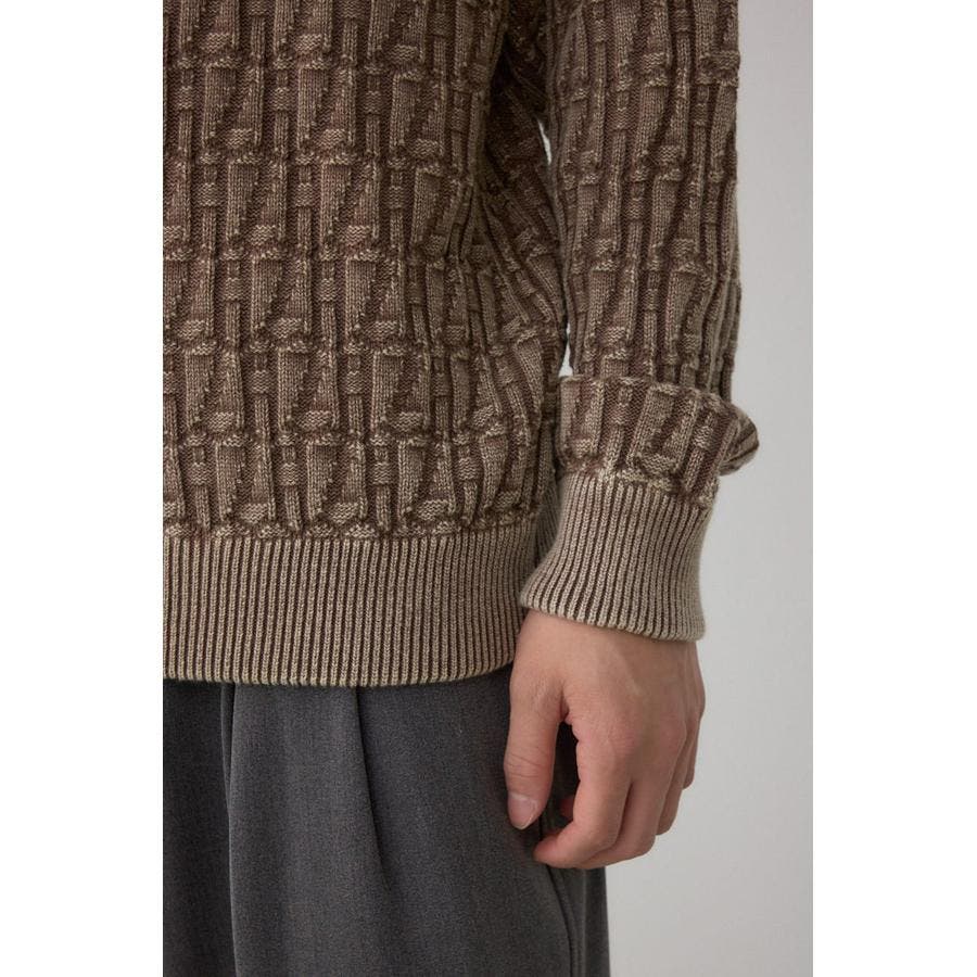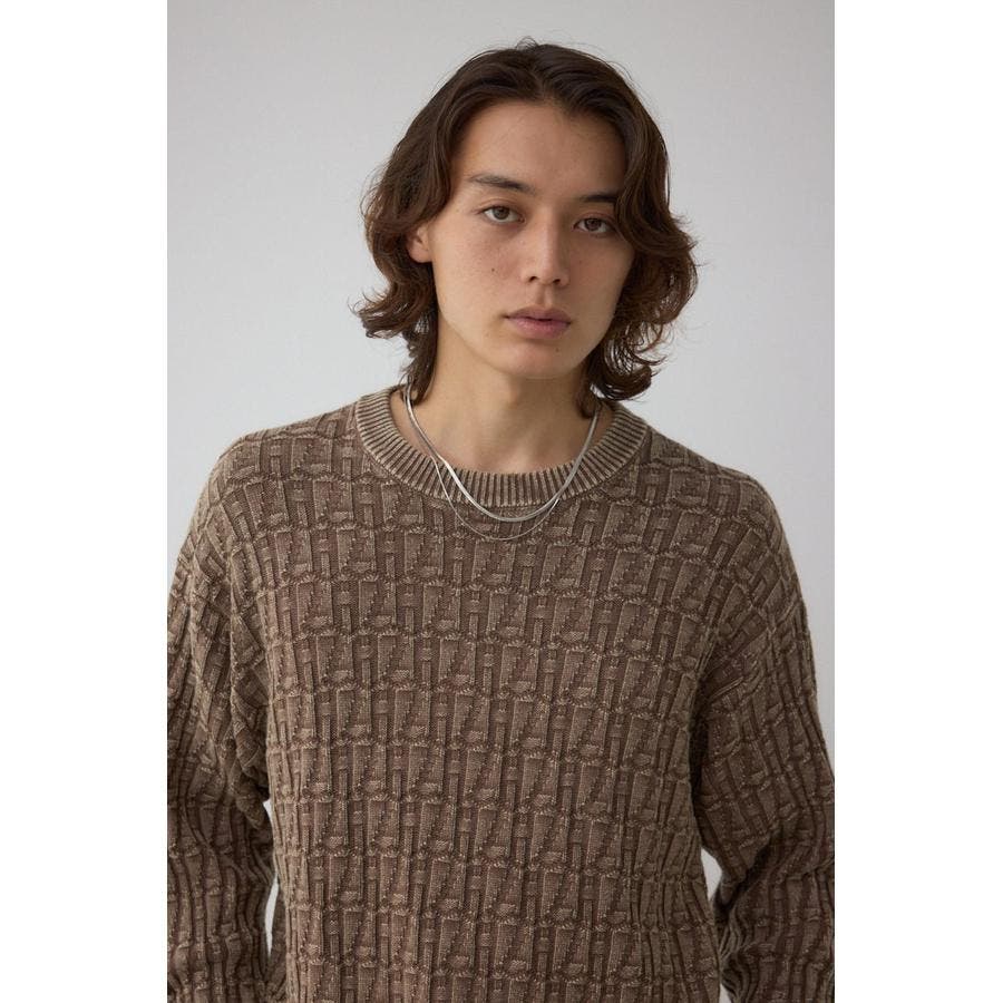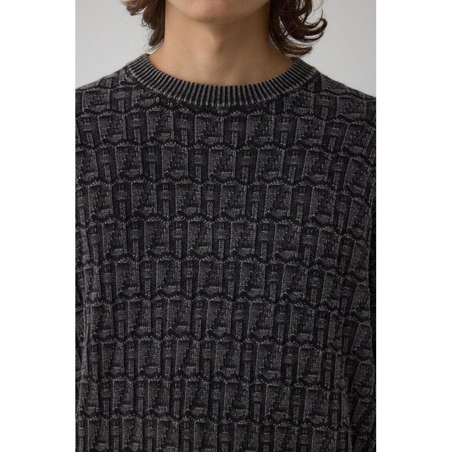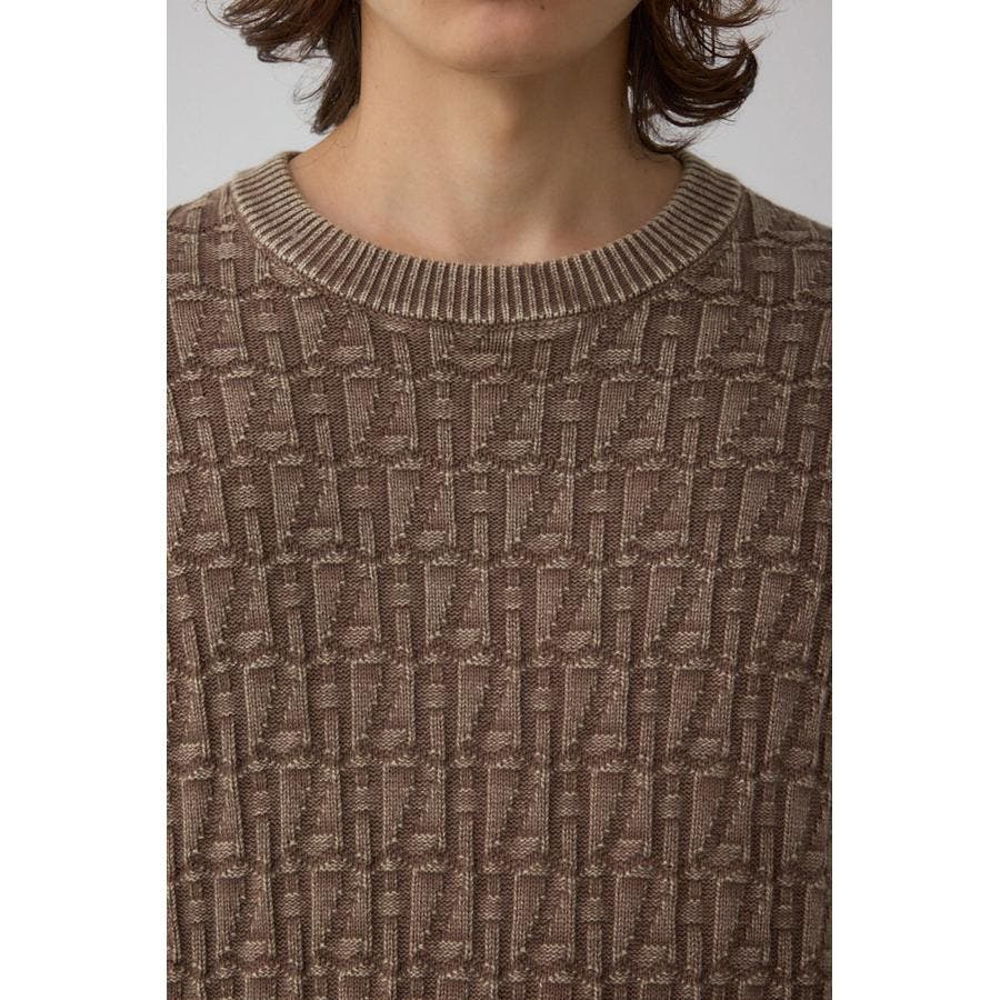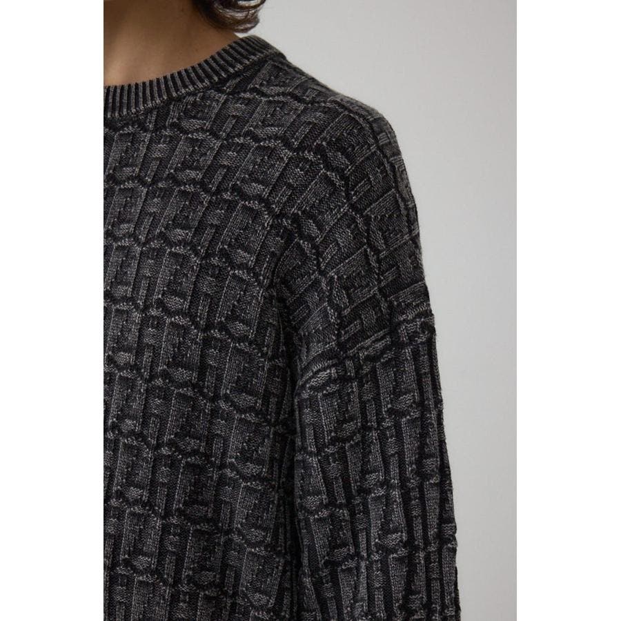 硫化染めとストーンウォッシュ加工による、ヴィンテージライクな表情が特徴のピグメントジャガードニットトップスです。