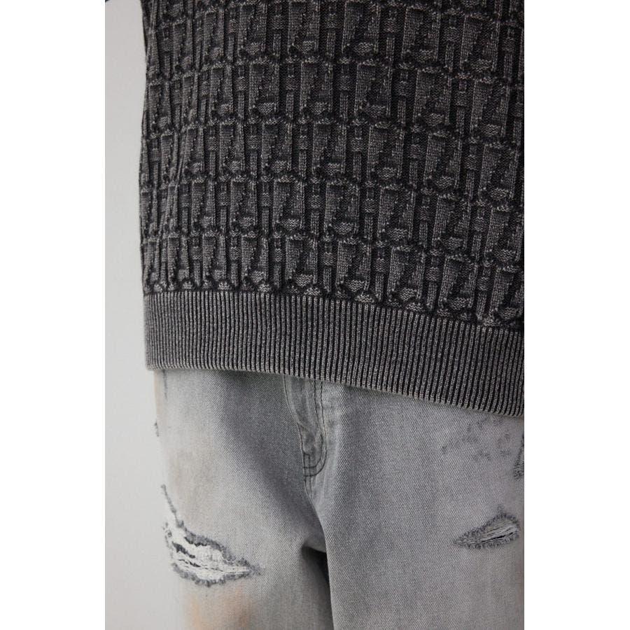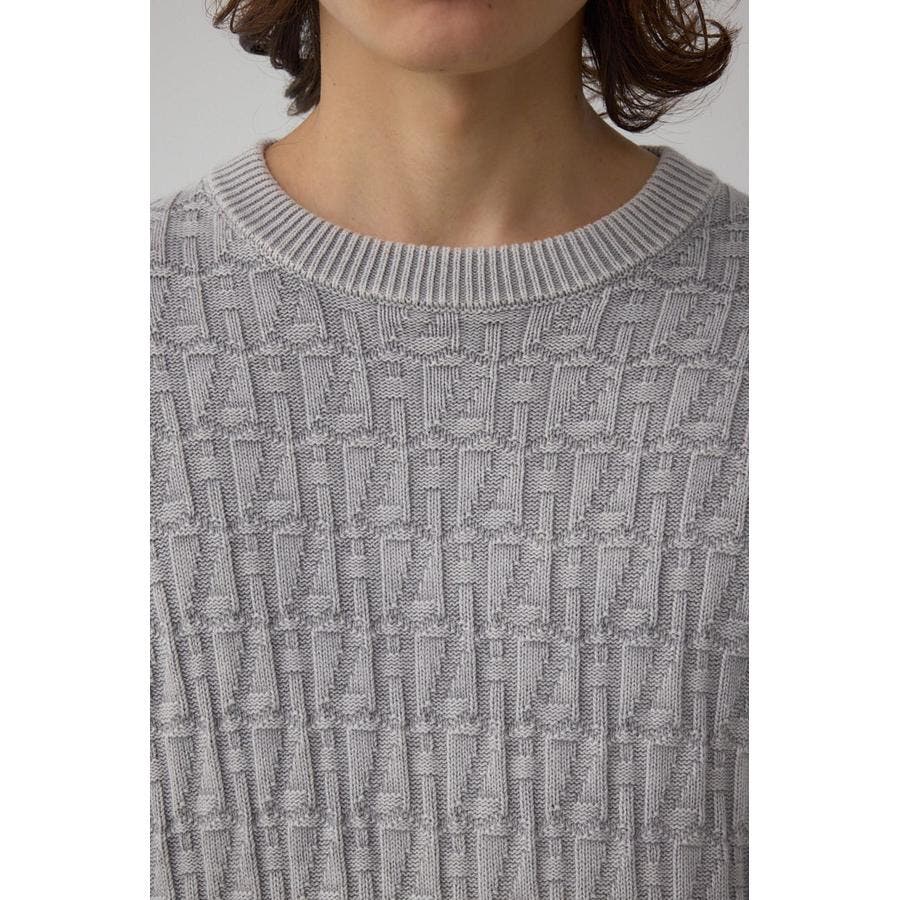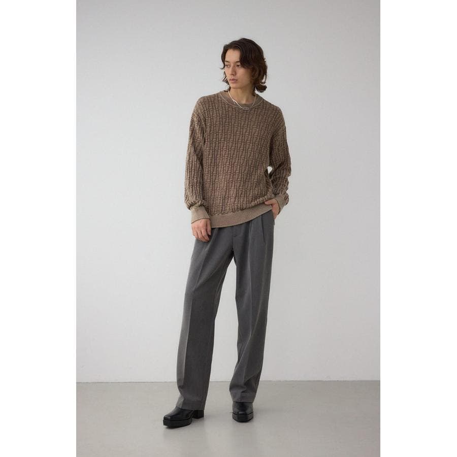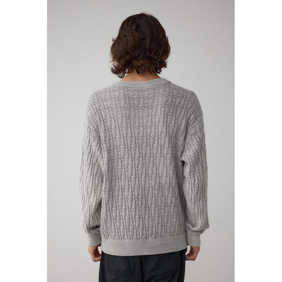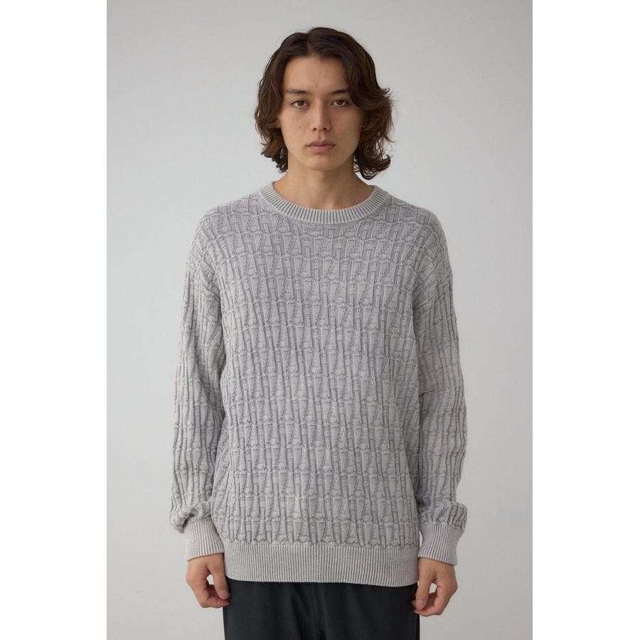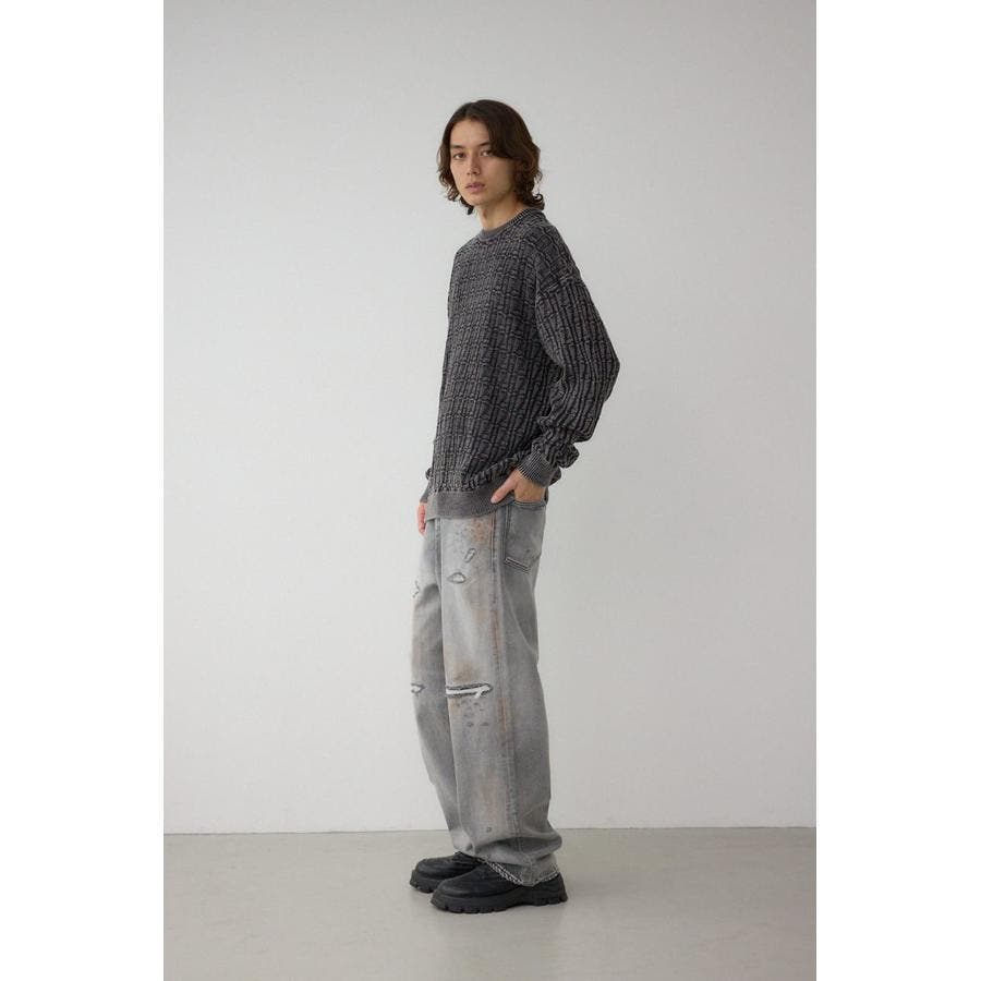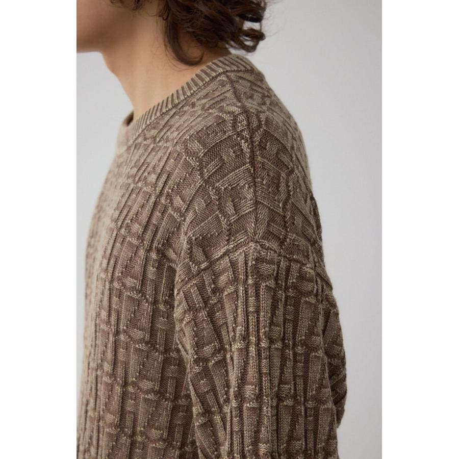 硫化染めとストーンウォッシュ加工による、ヴィンテージライクな表情が特徴のピグメントジャガードニットトップスです。