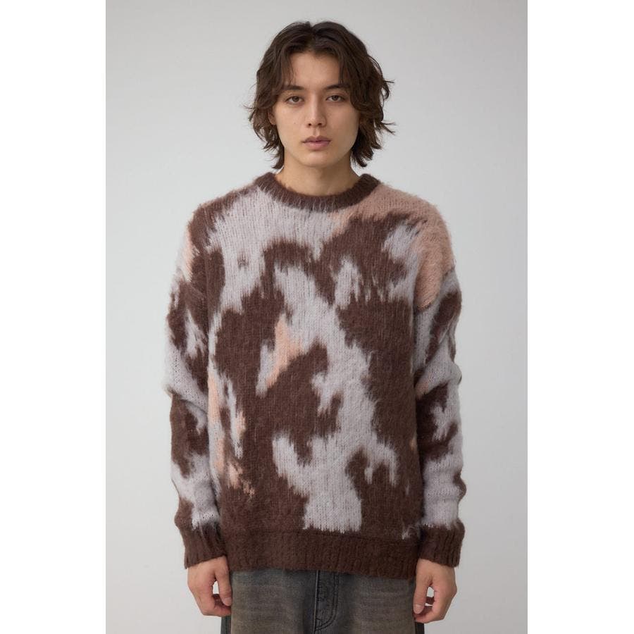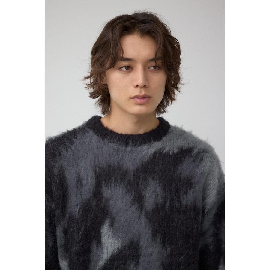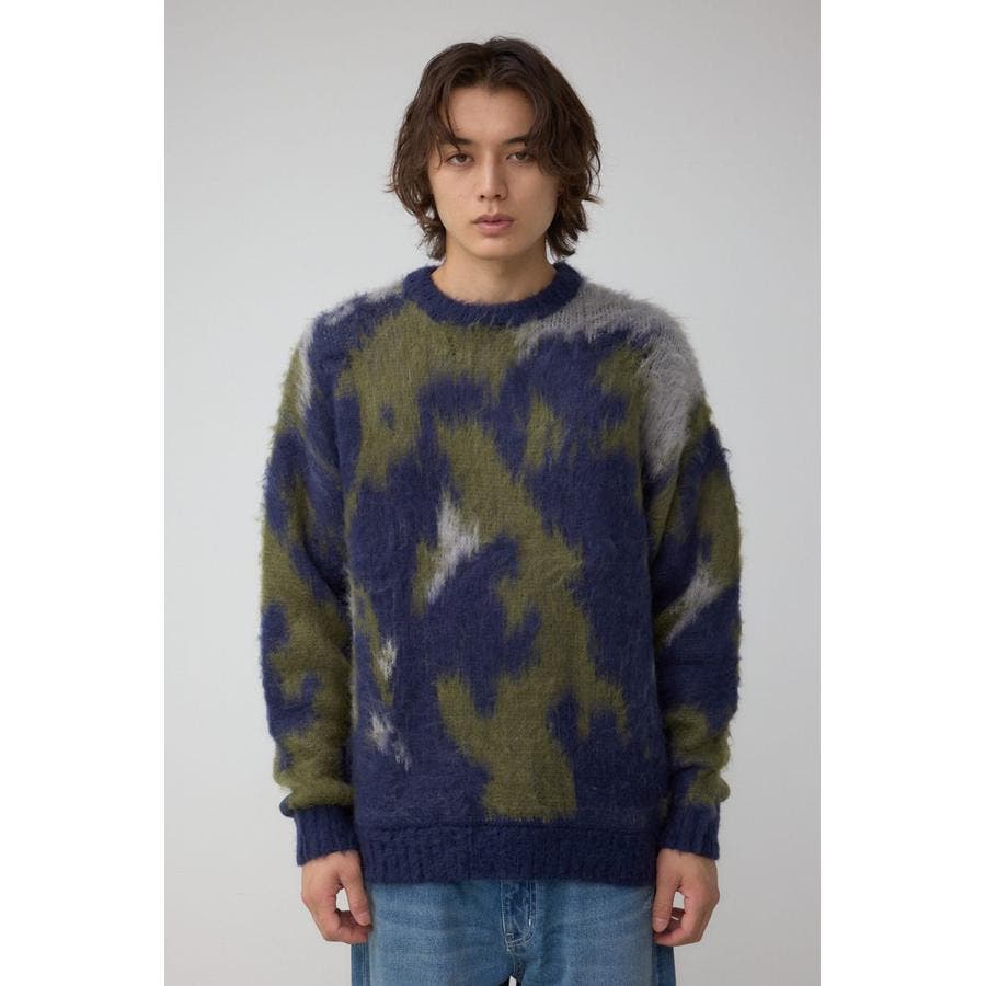 ミドルゲージの中肉のダブルジャガードに起毛をかけ、ボリュームを出したニットトップスです。