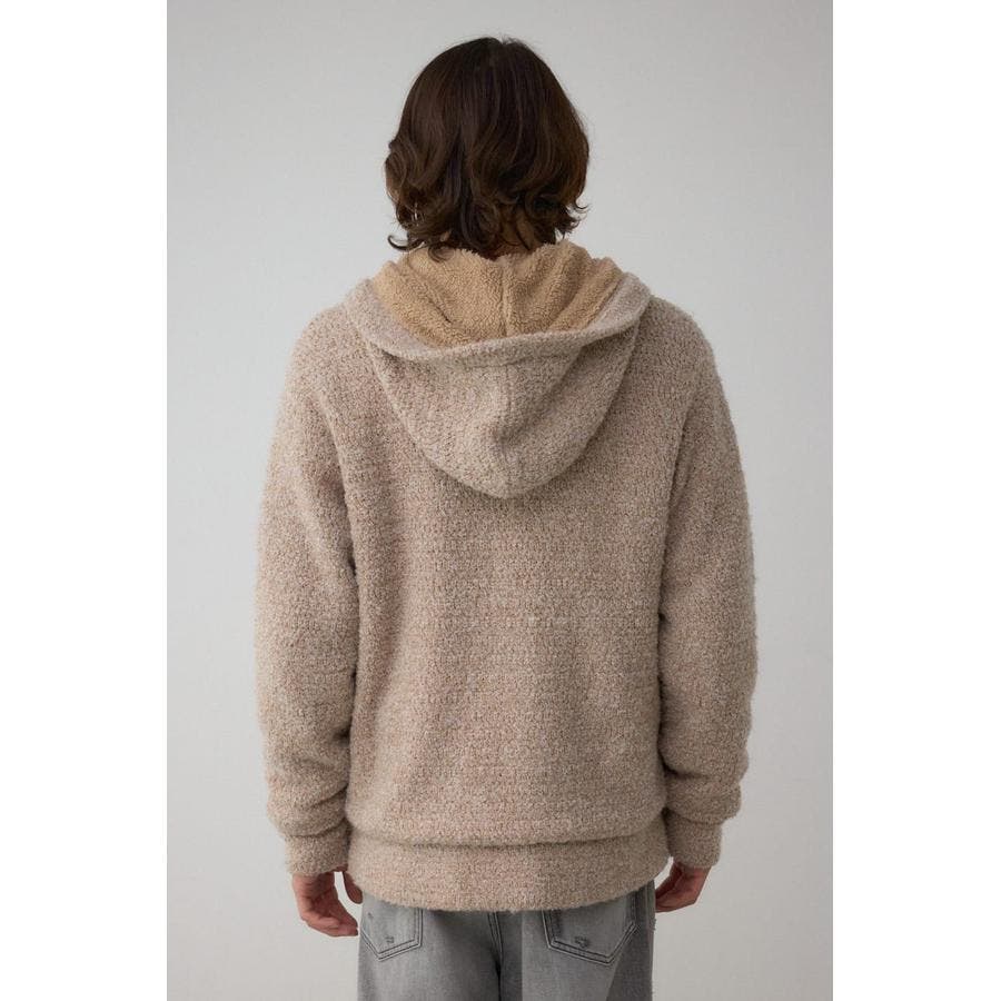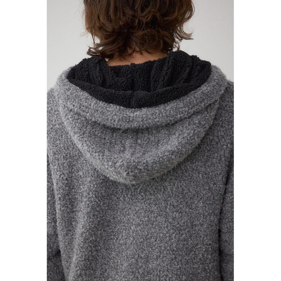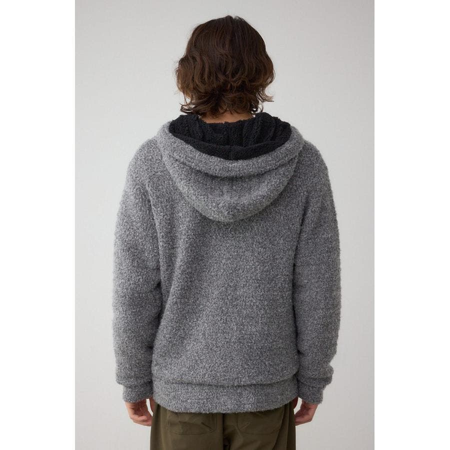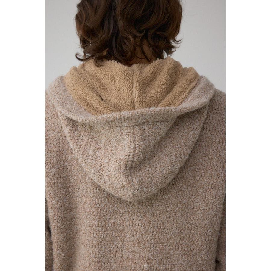 程よい厚みのあるニット身頃とフード裏には裏ボアを施しています。