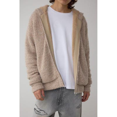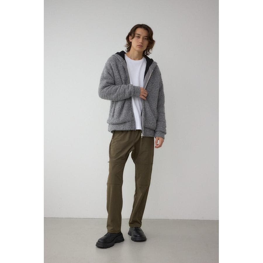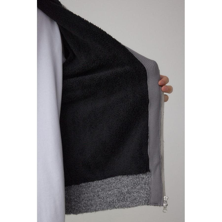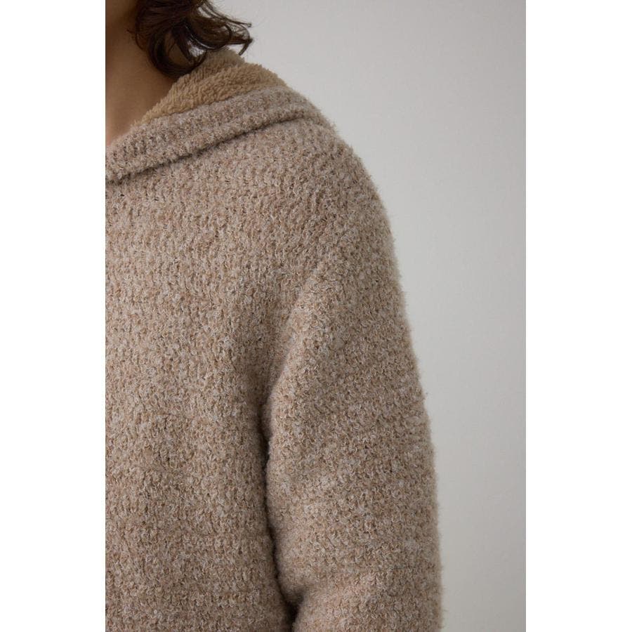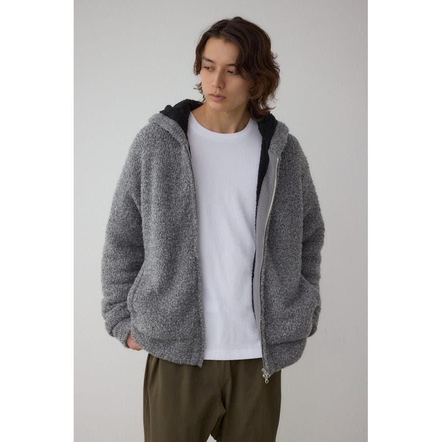 程よい厚みのあるニット身頃とフード裏には裏ボアを施しています。