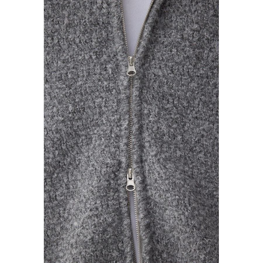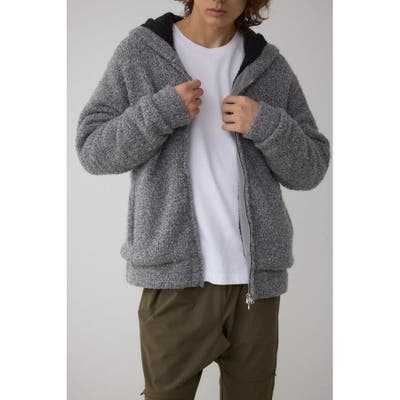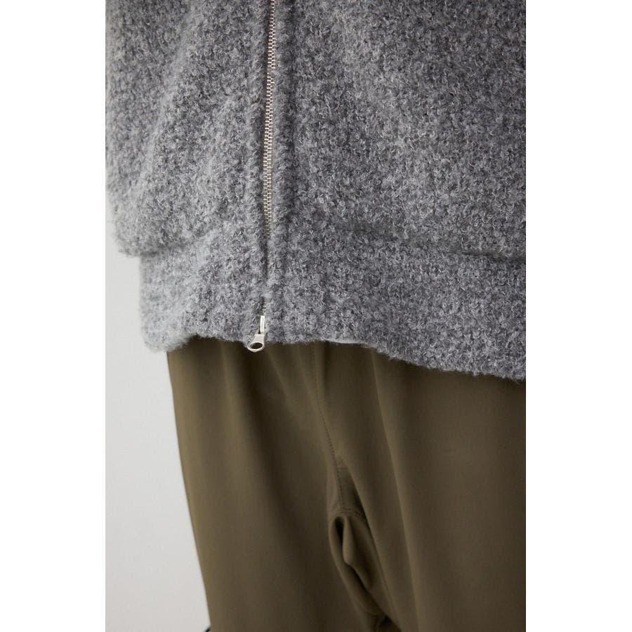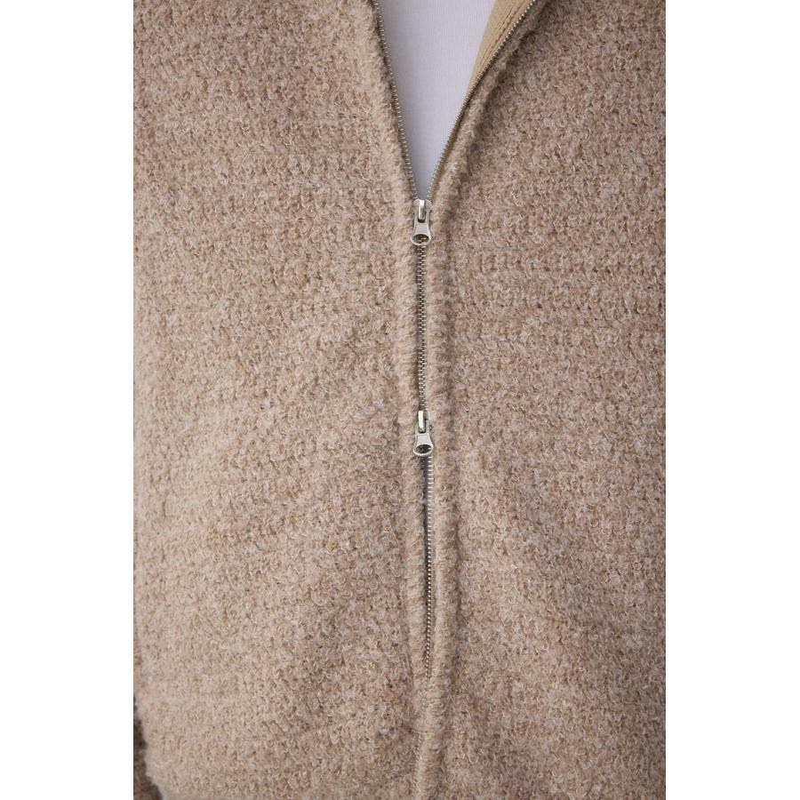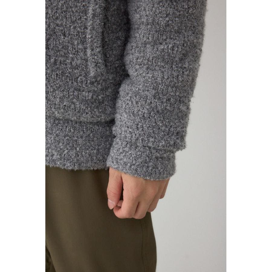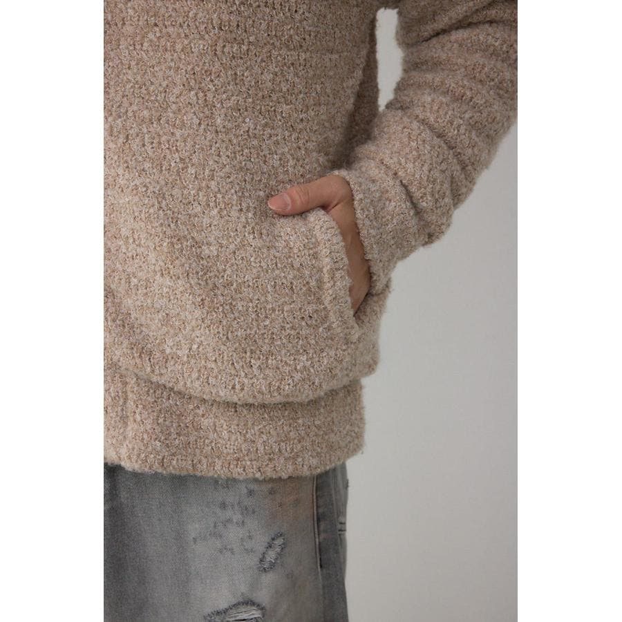 ブークレー糸のミドルゲージ柄編みでミックス感と温もりを演出したジップパーカーです。