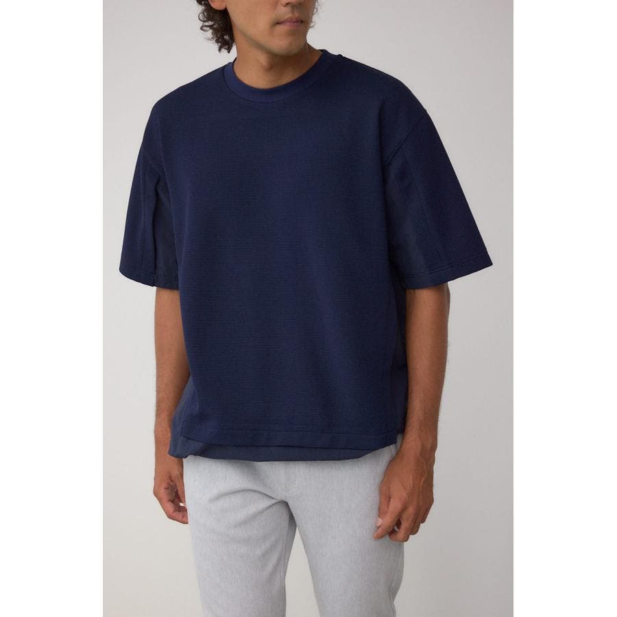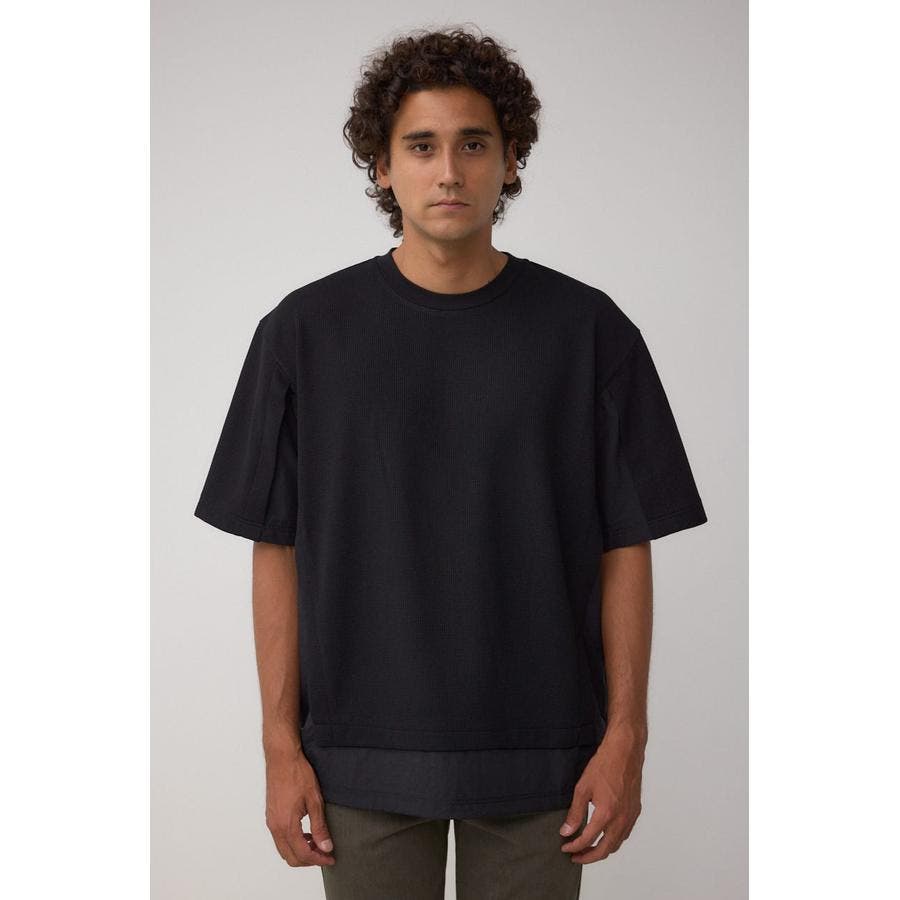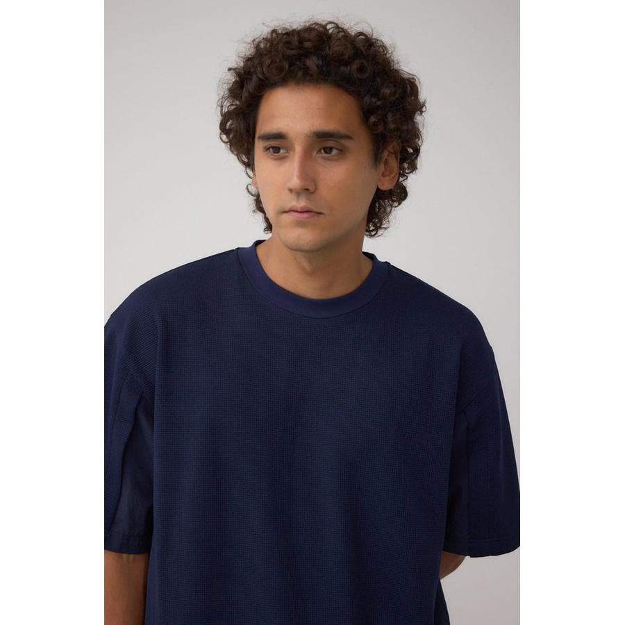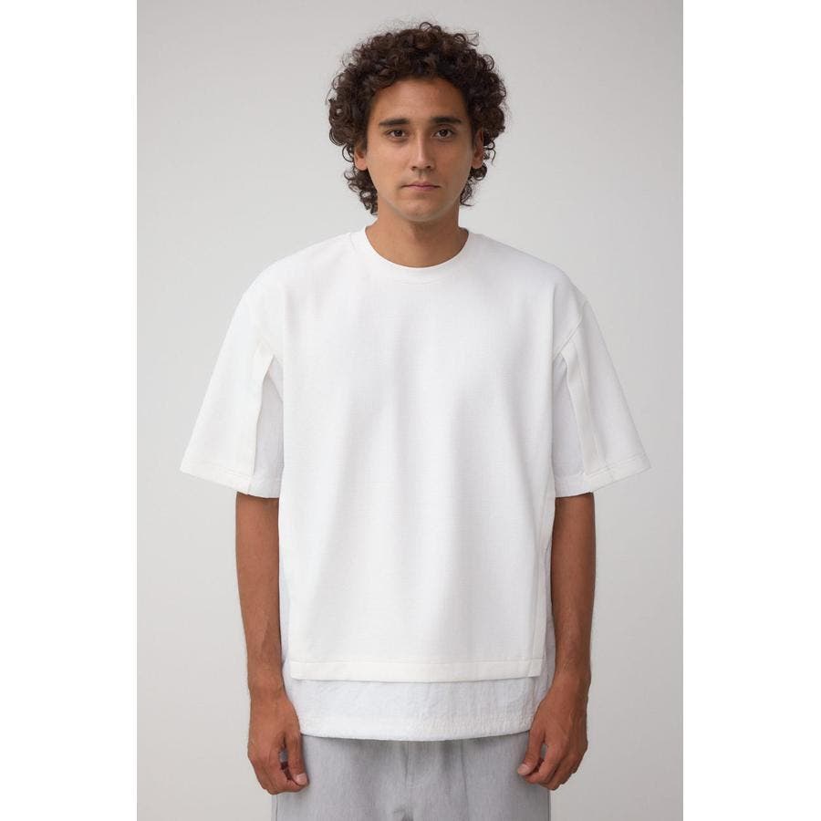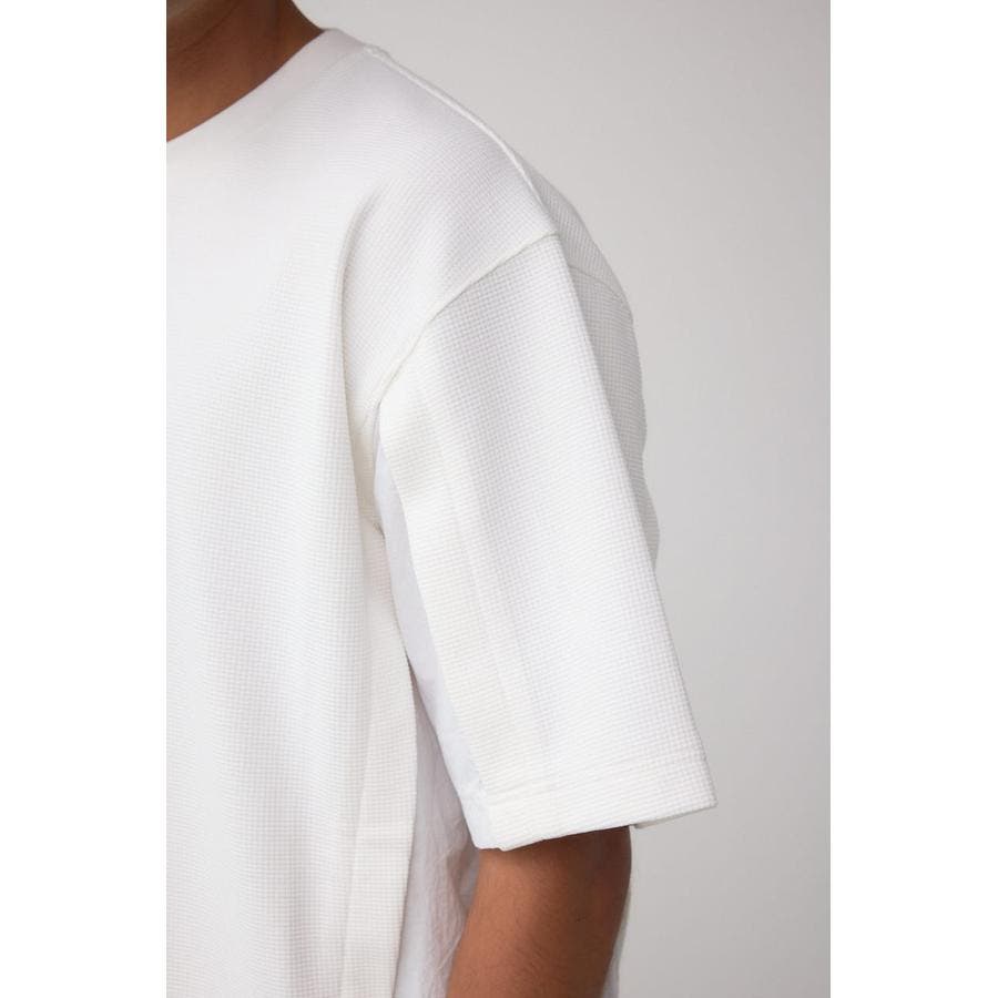 カット素材と布帛素材がドッキングしたトレンド感のあるトップスになります。