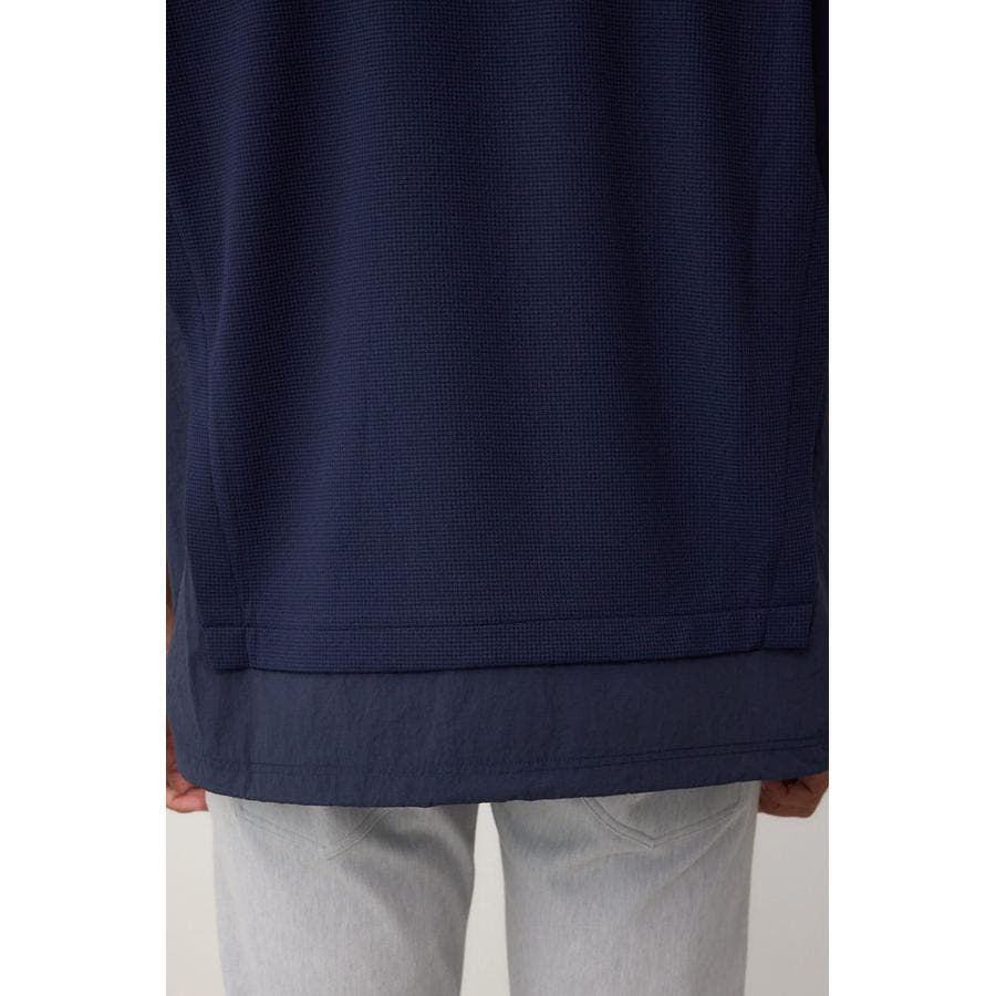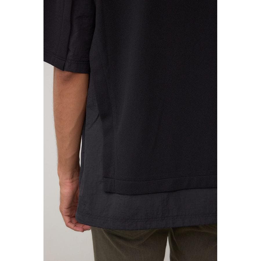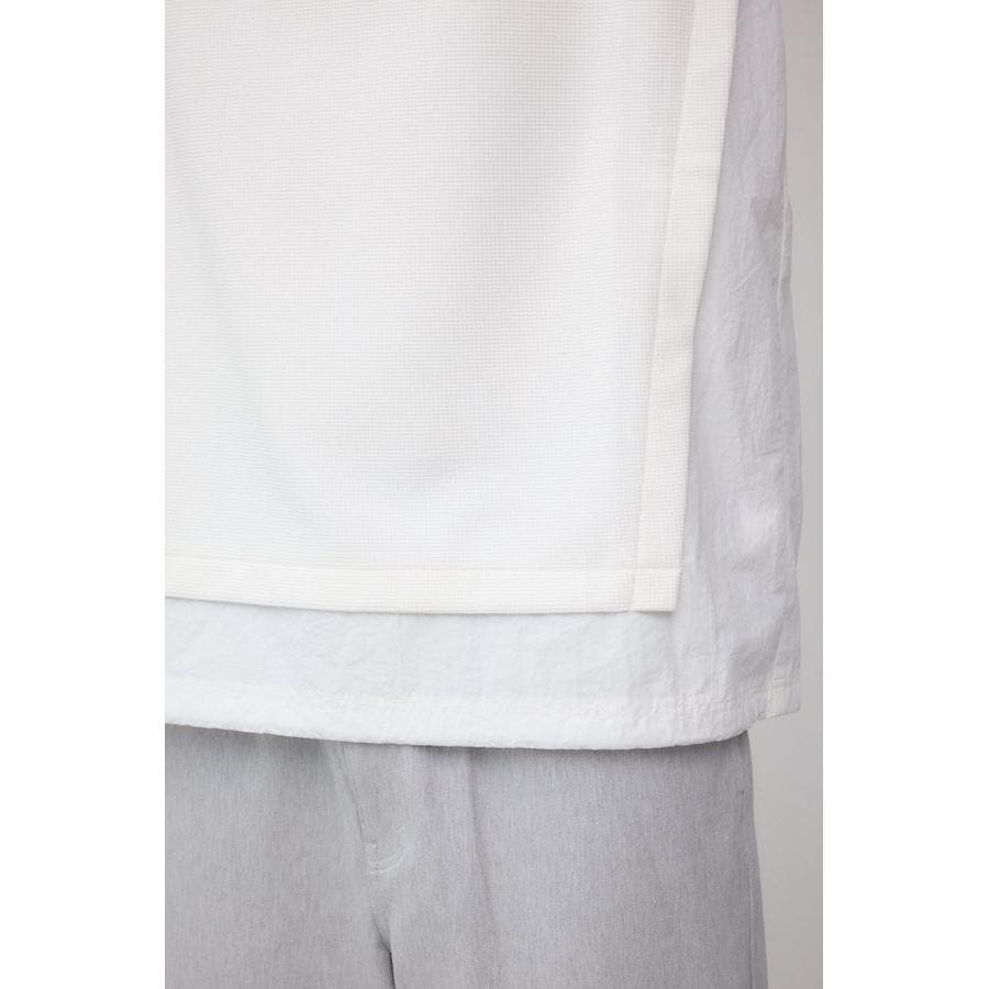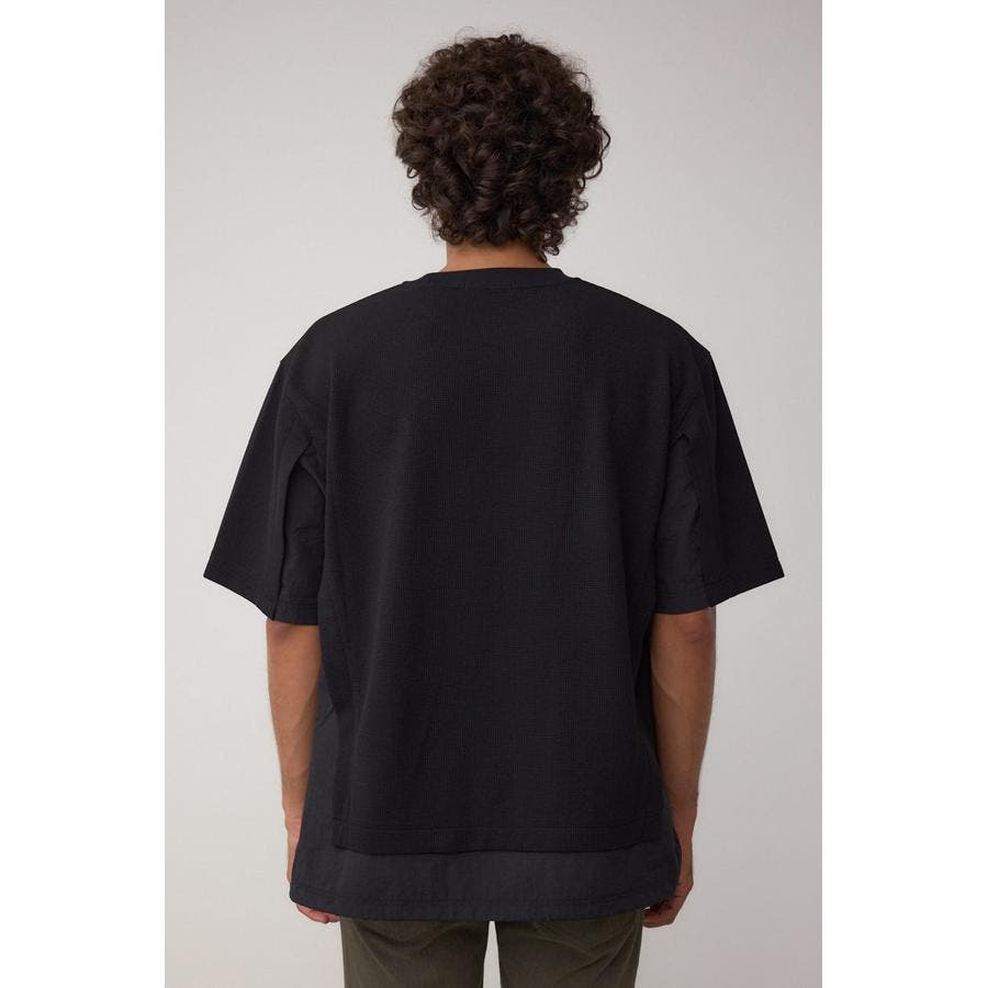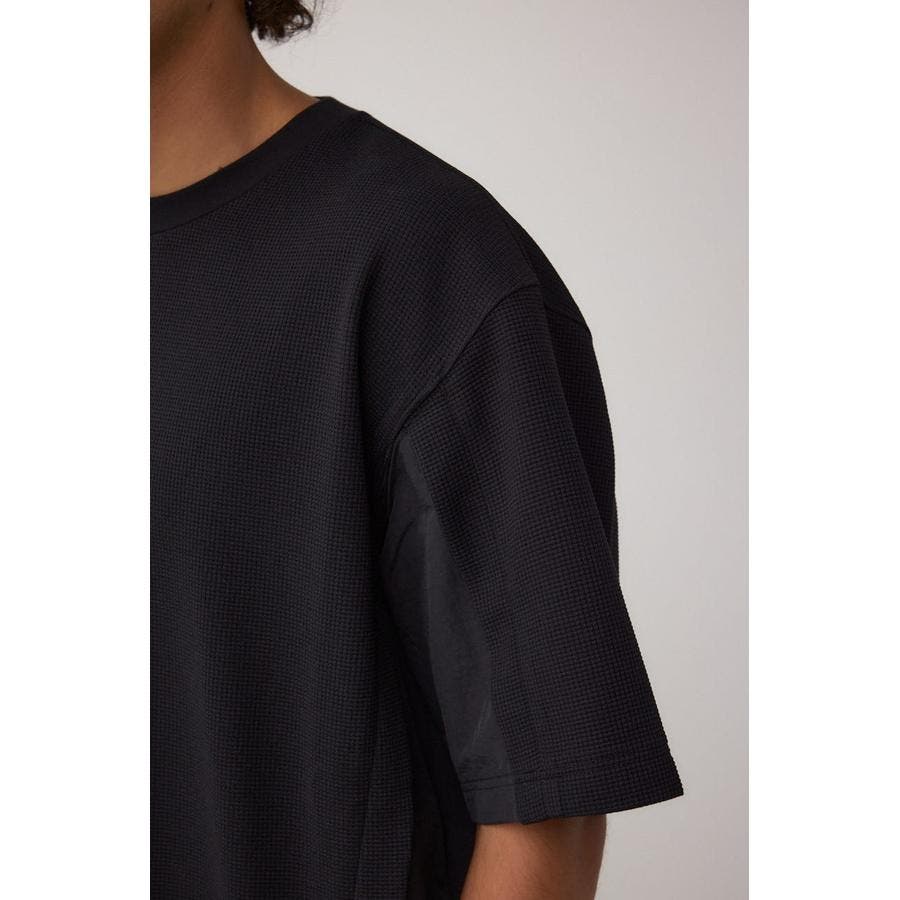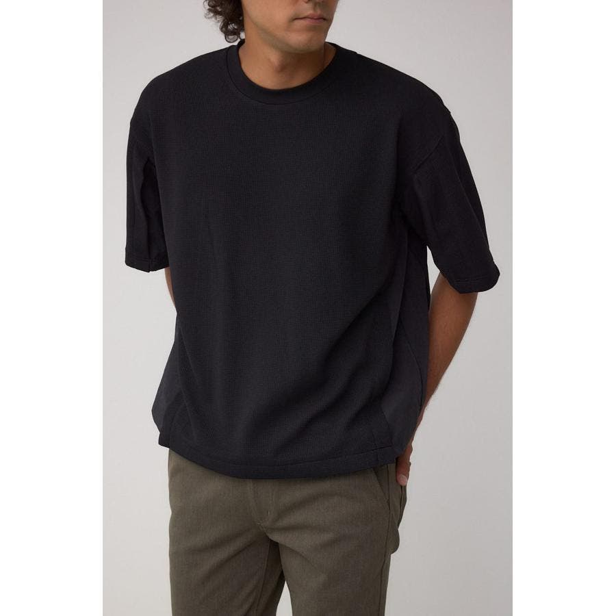 カット素材と布帛素材がドッキングしたトレンド感のあるトップスになります。