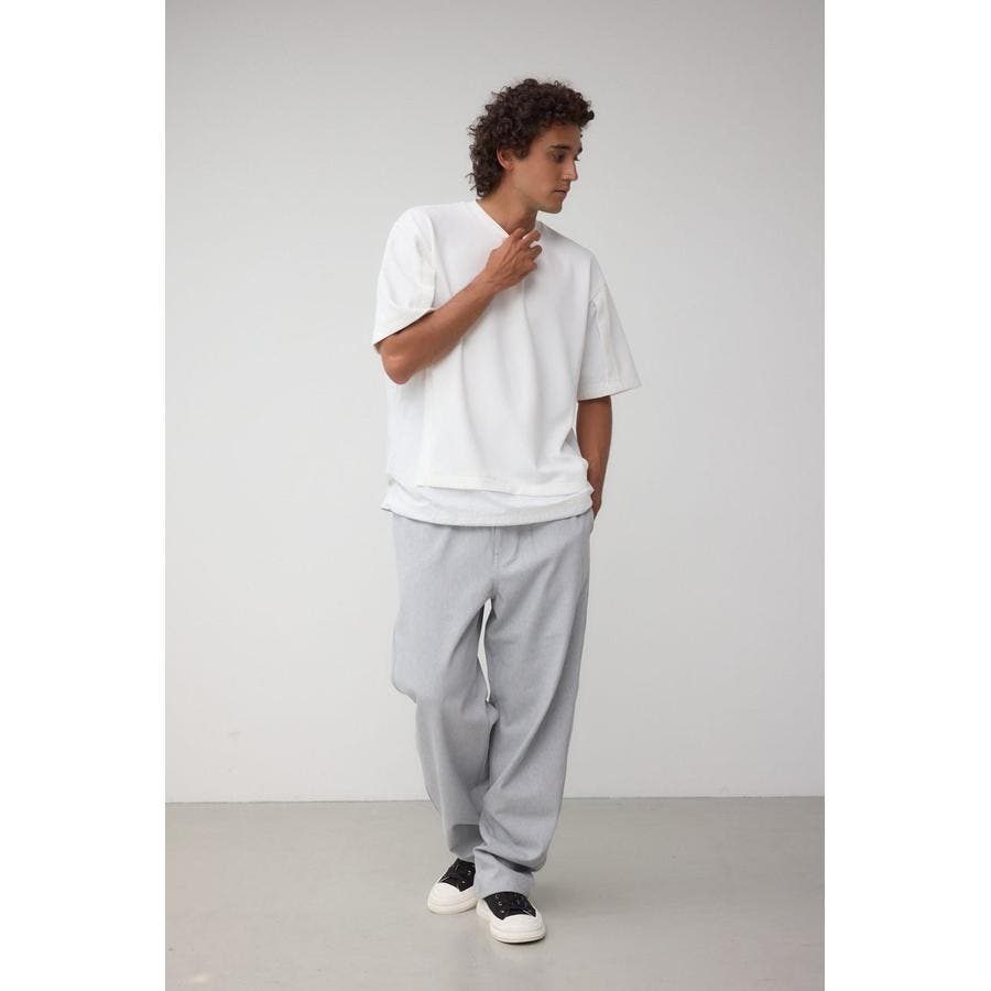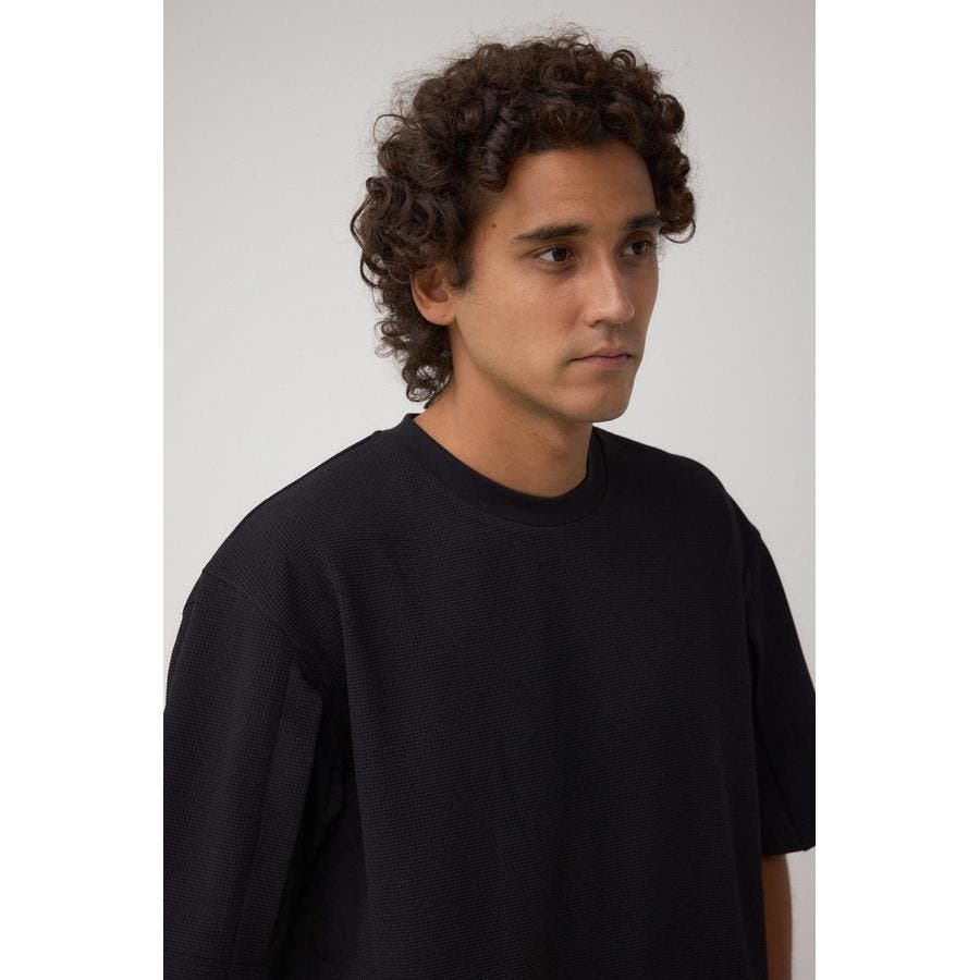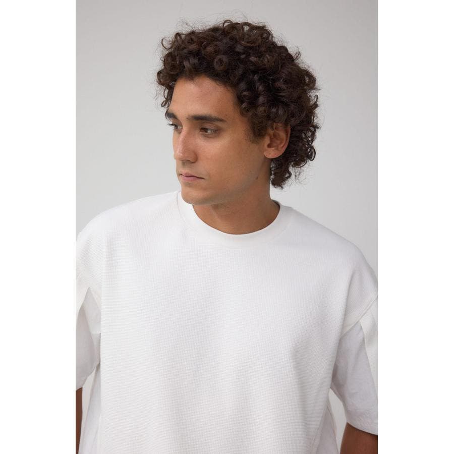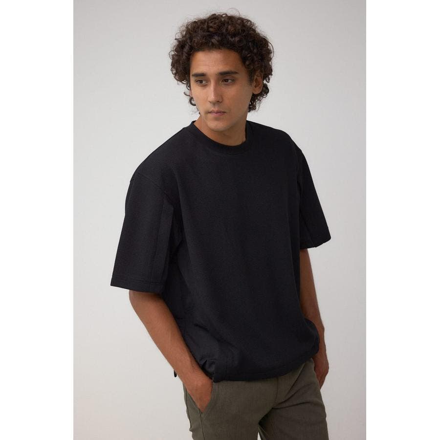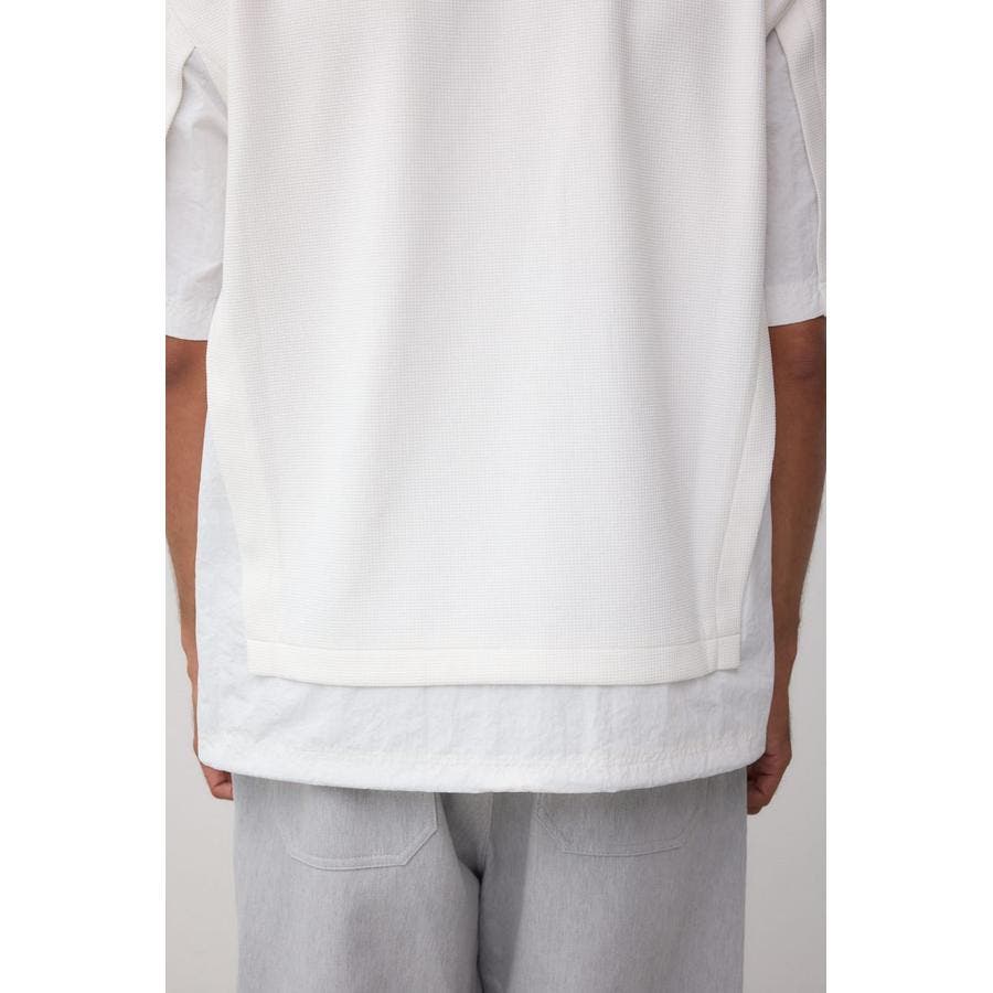 カット素材と布帛素材がドッキングしたトレンド感のあるトップスになります。