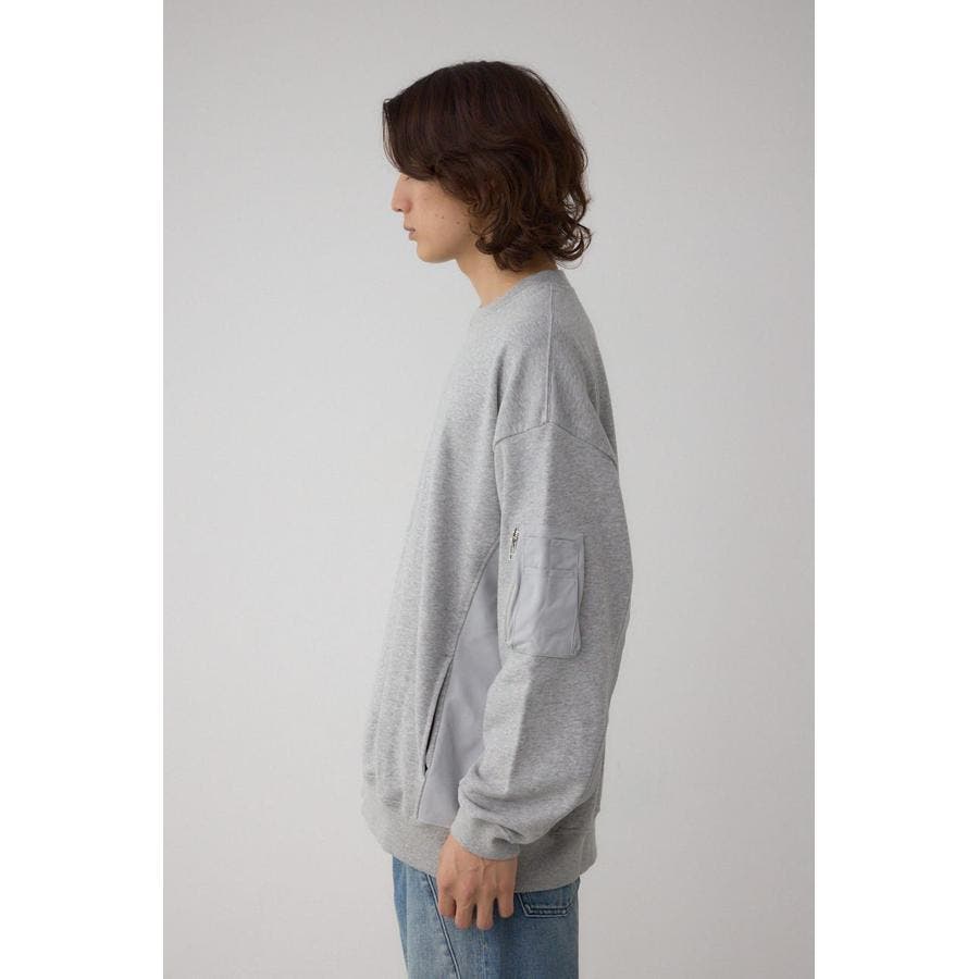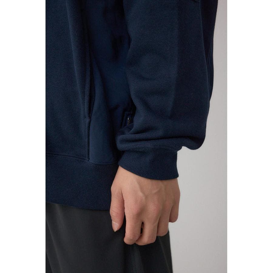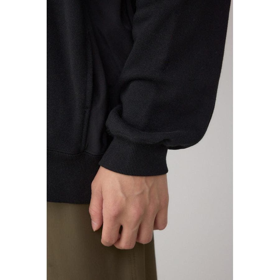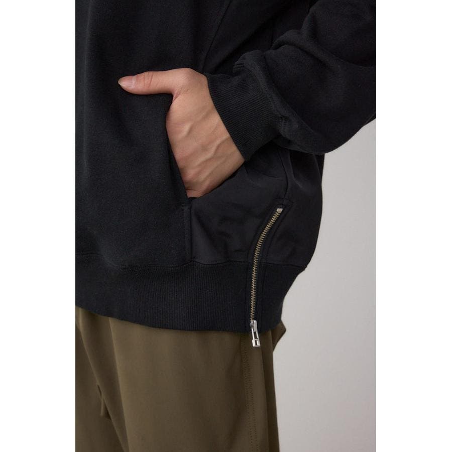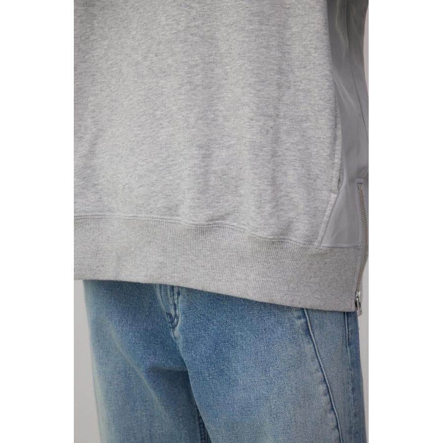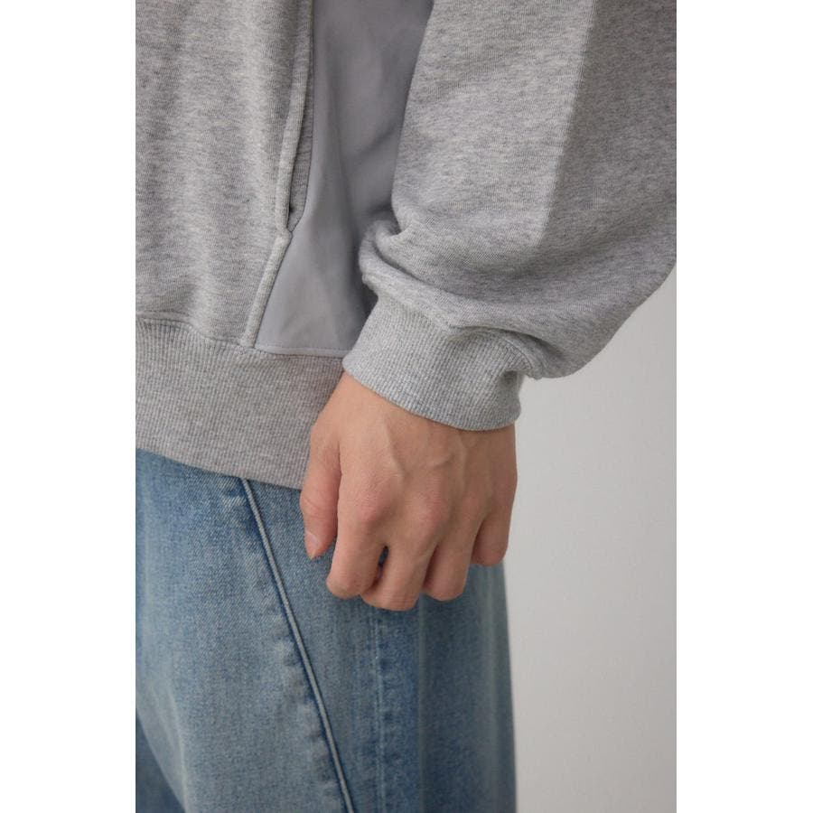 裏毛スウェットとやや光沢のある布帛をドッキングしたプルオーバー。