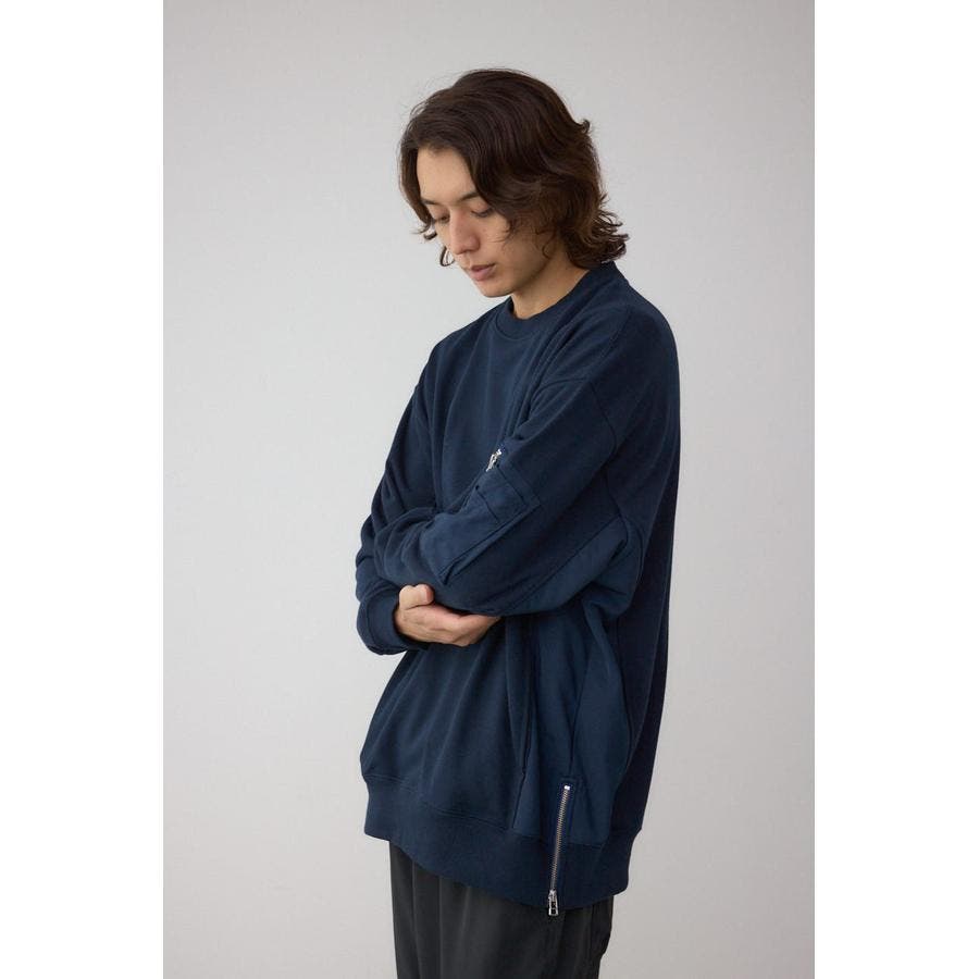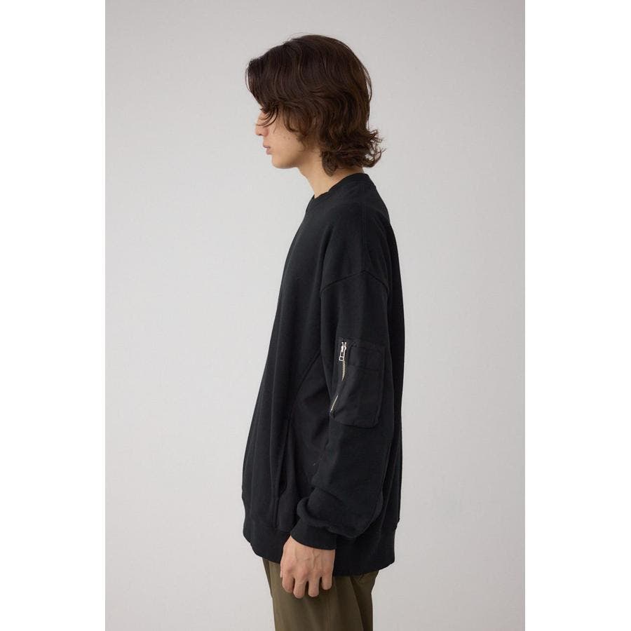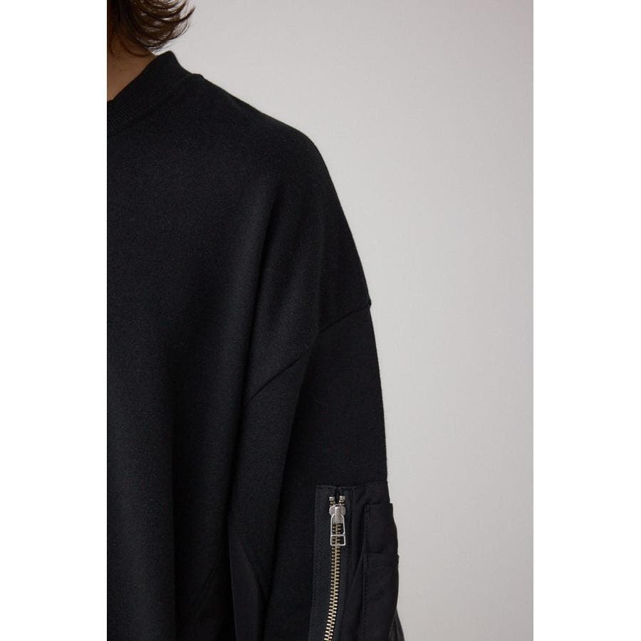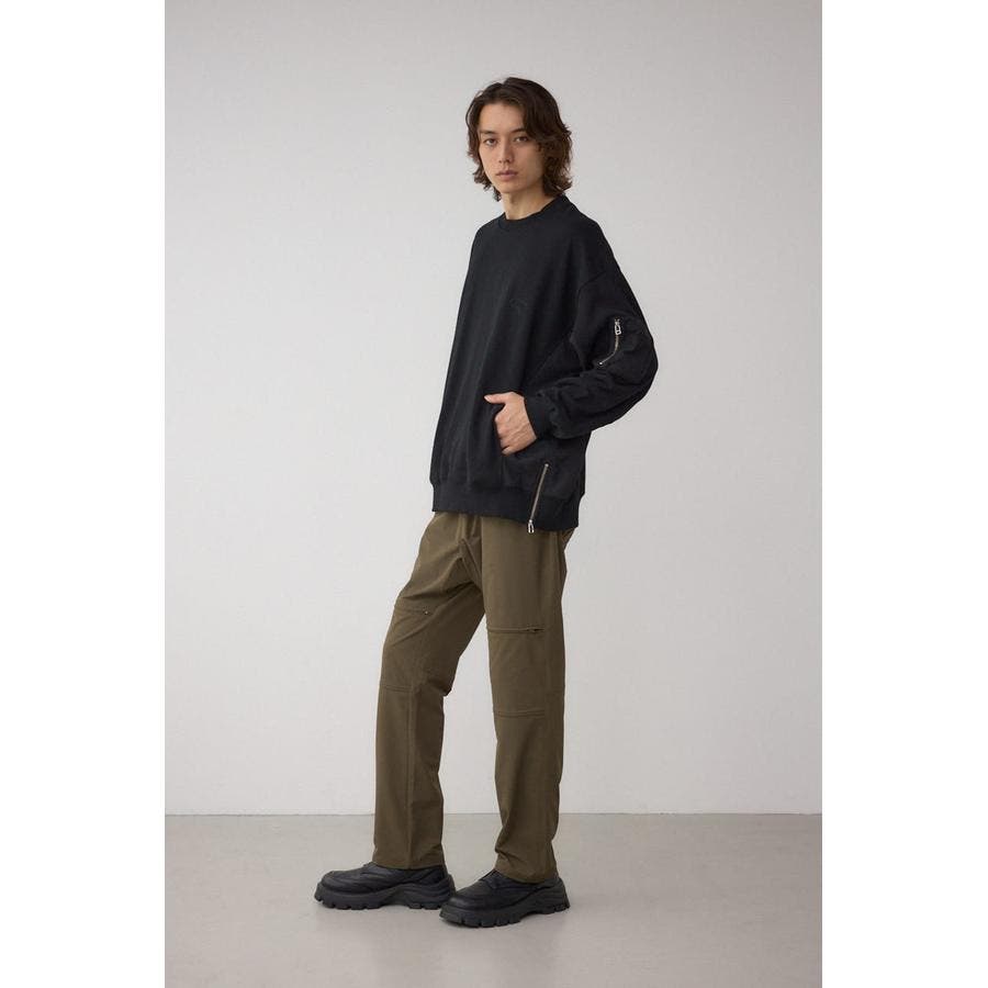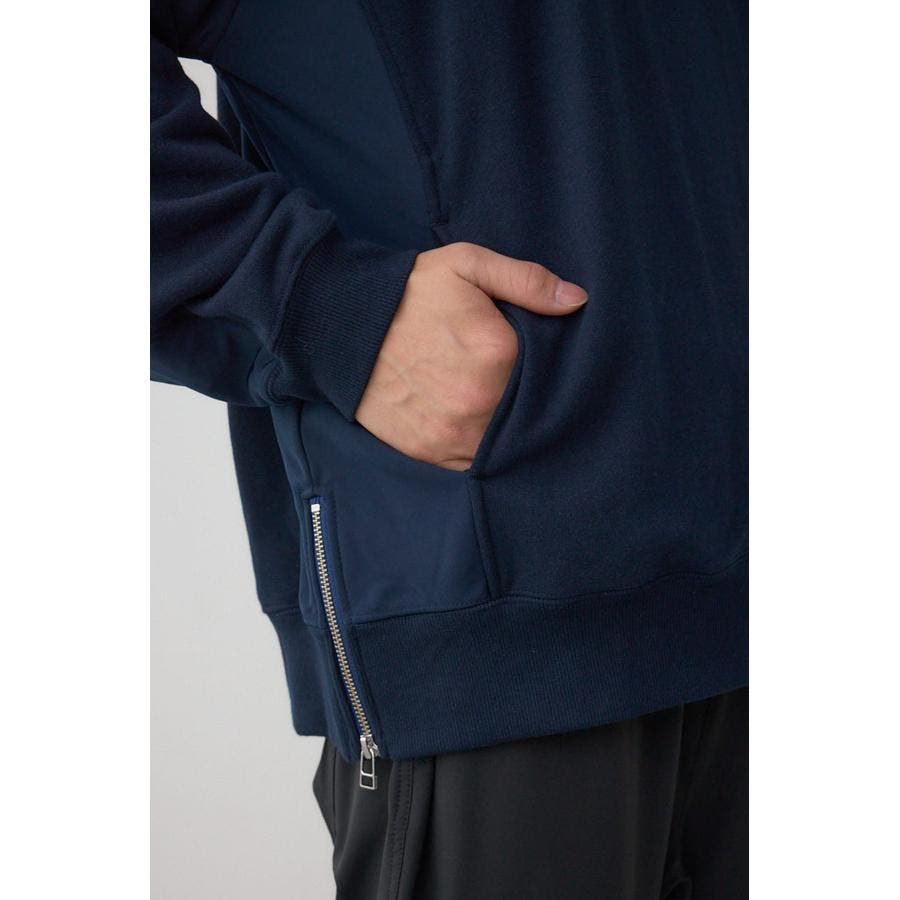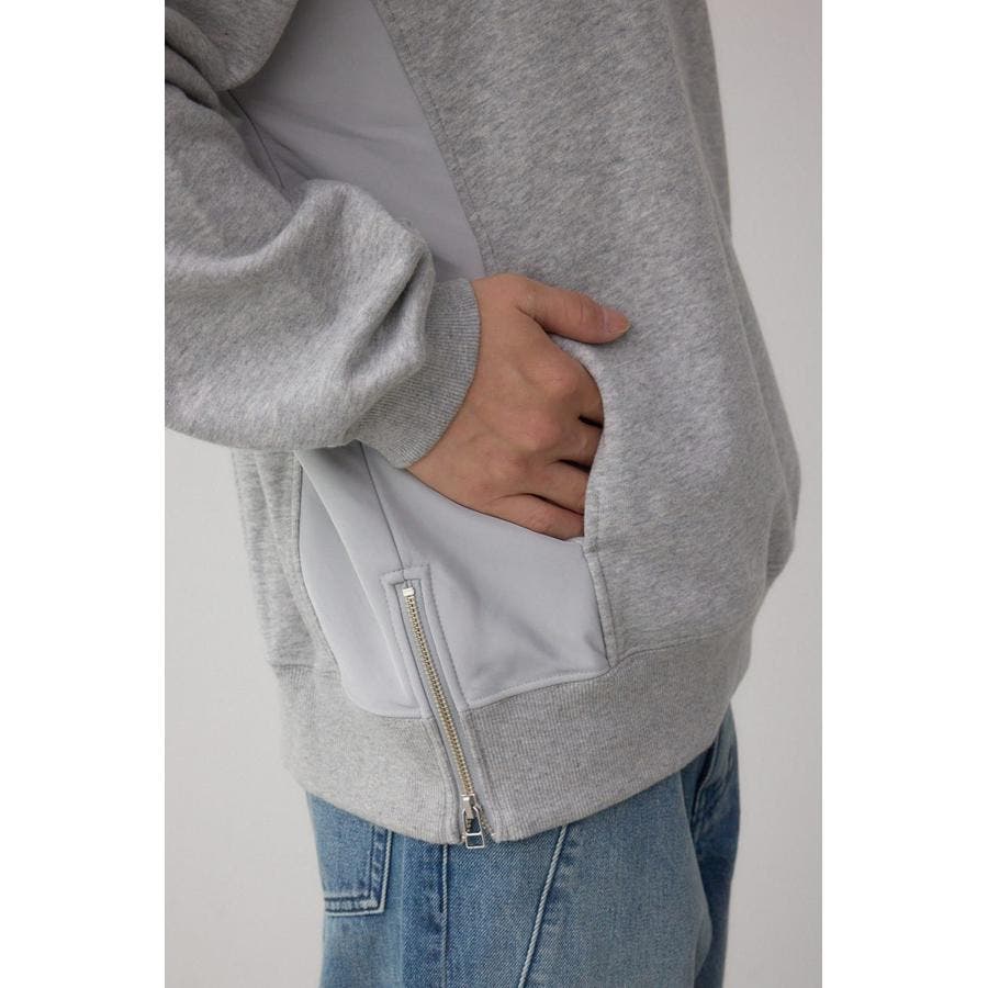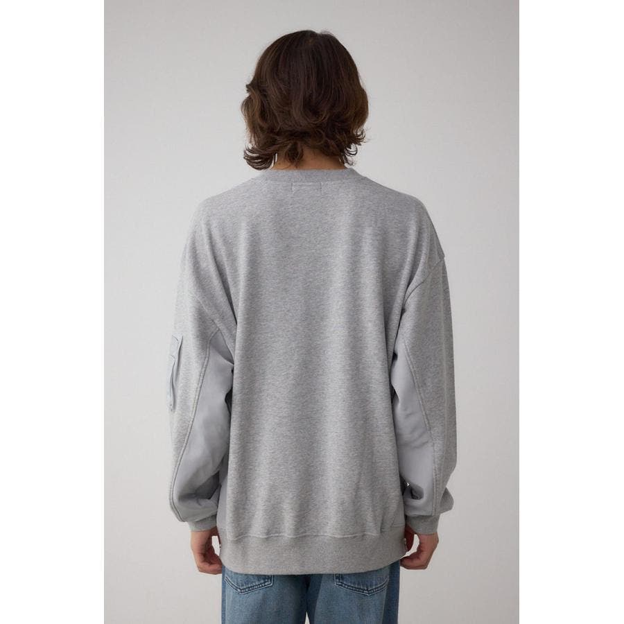 裏毛スウェットとやや光沢のある布帛をドッキングしたプルオーバー。
