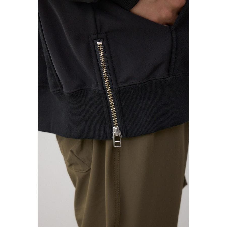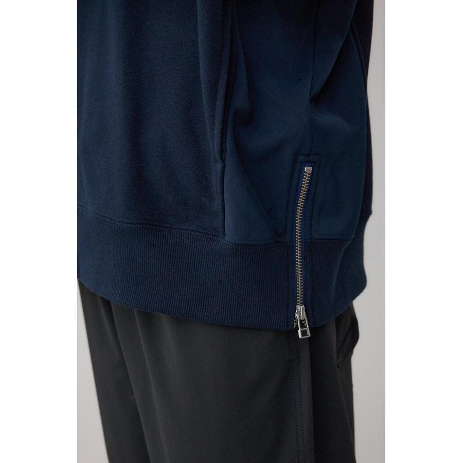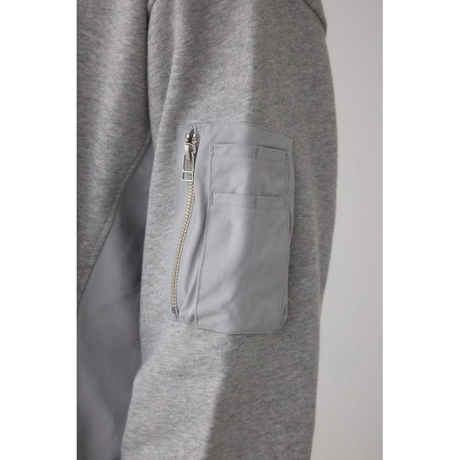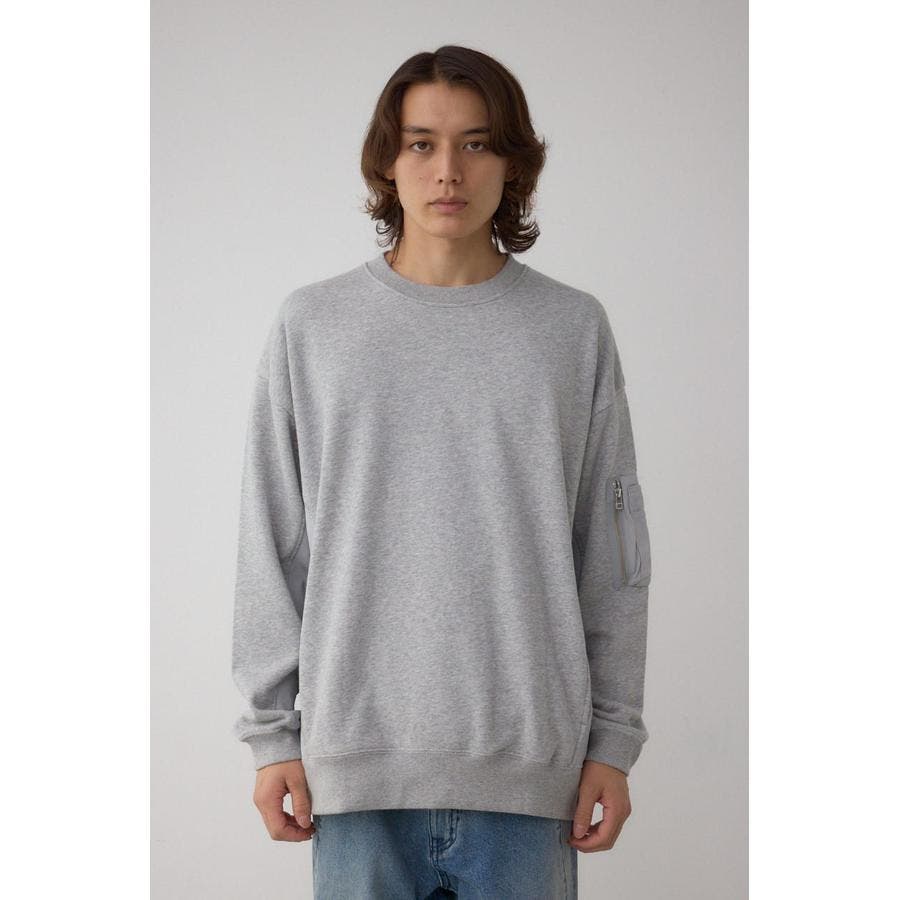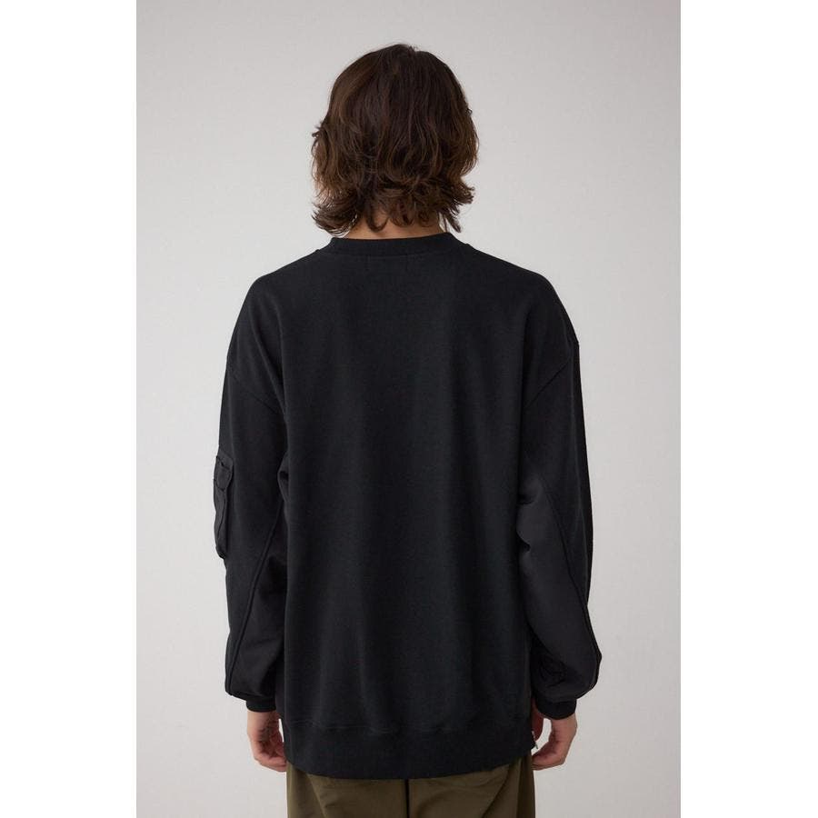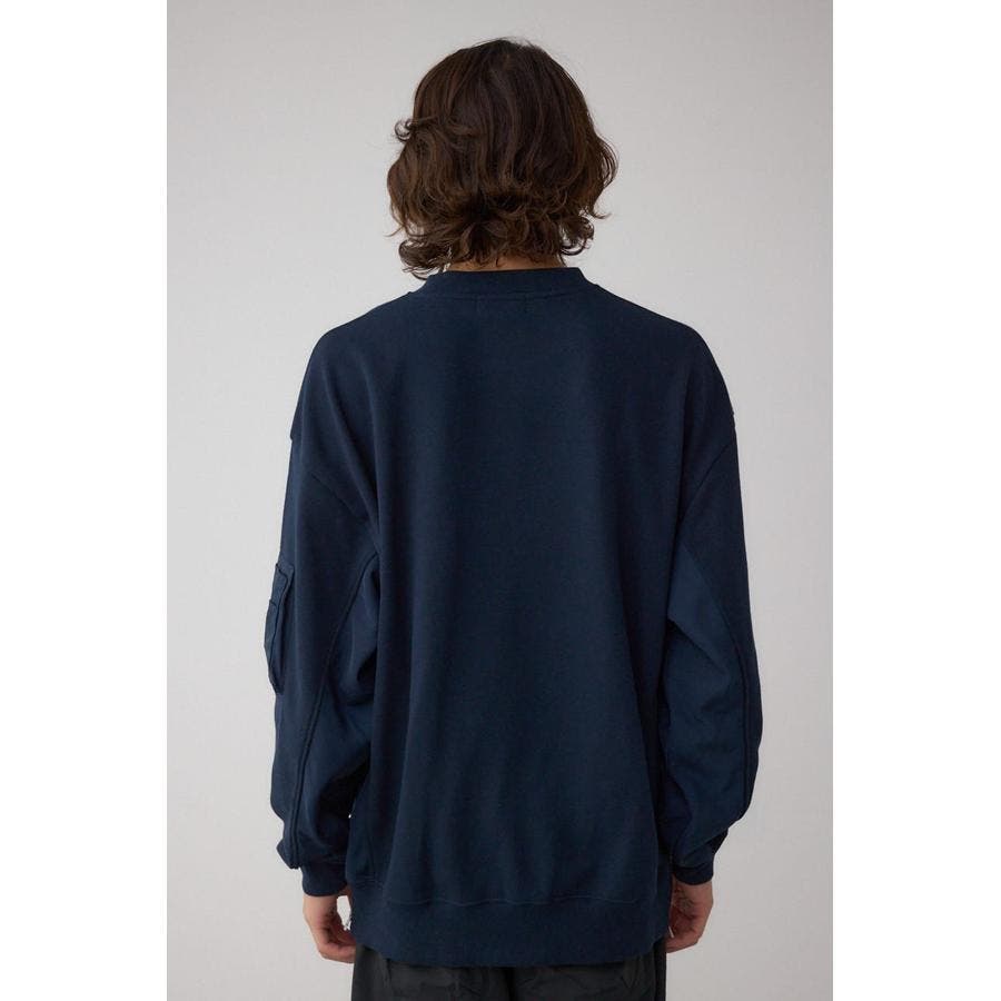 裏毛スウェットとやや光沢のある布帛をドッキングしたプルオーバー。