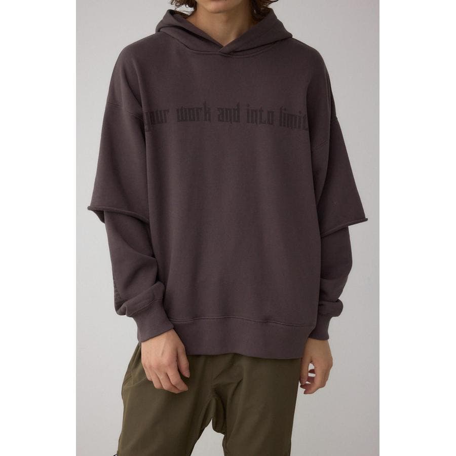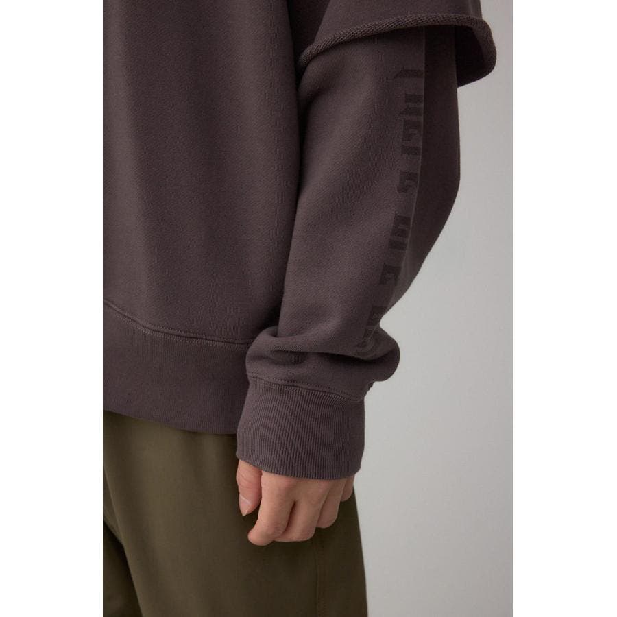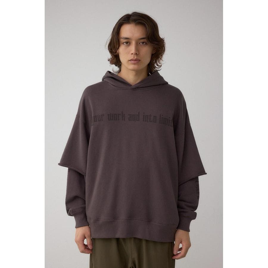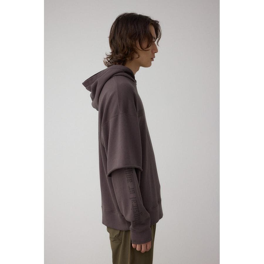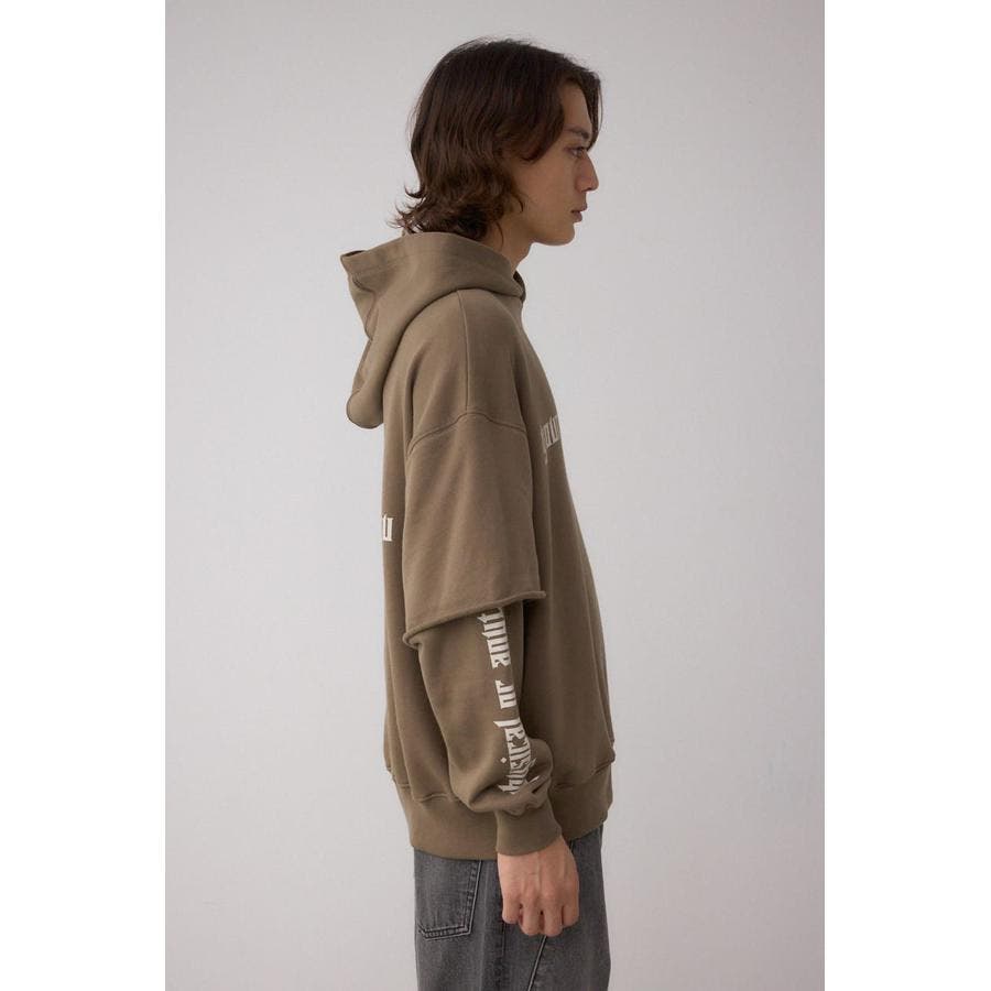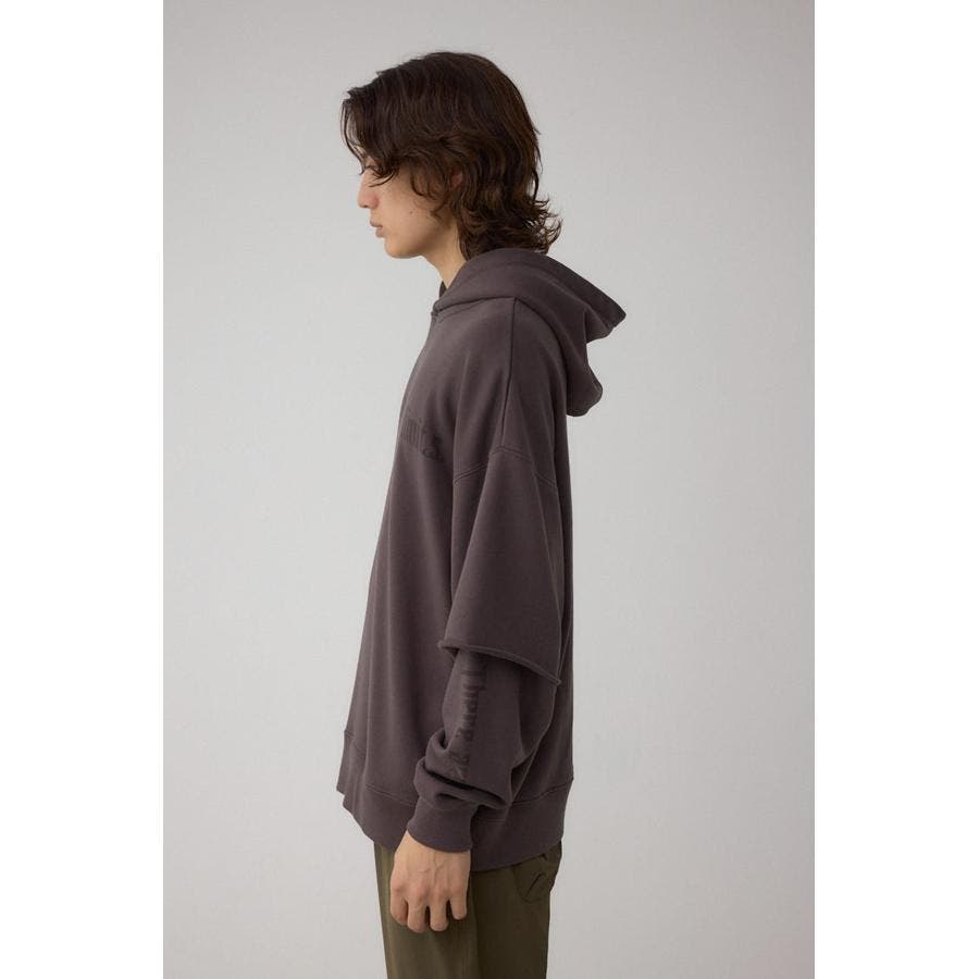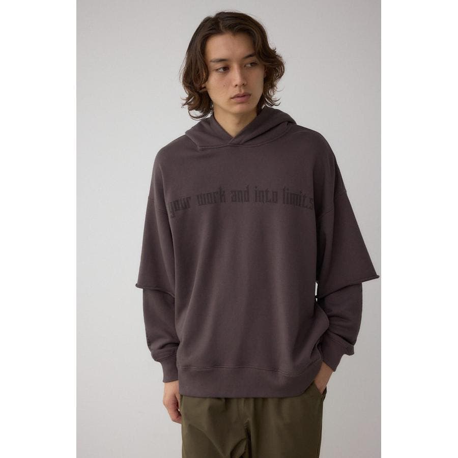 フェイクレイヤード仕様で1枚で重ね着風の表情が出せるスウェットフーディー。
