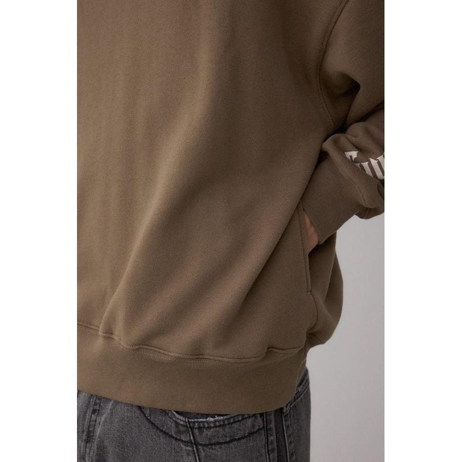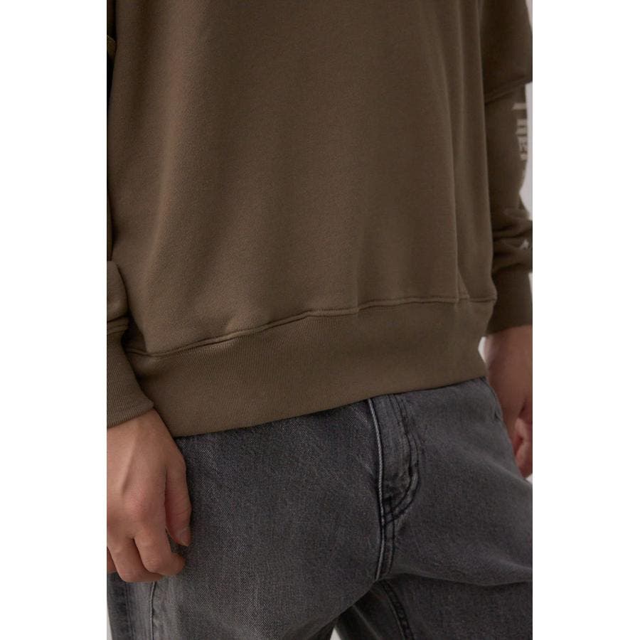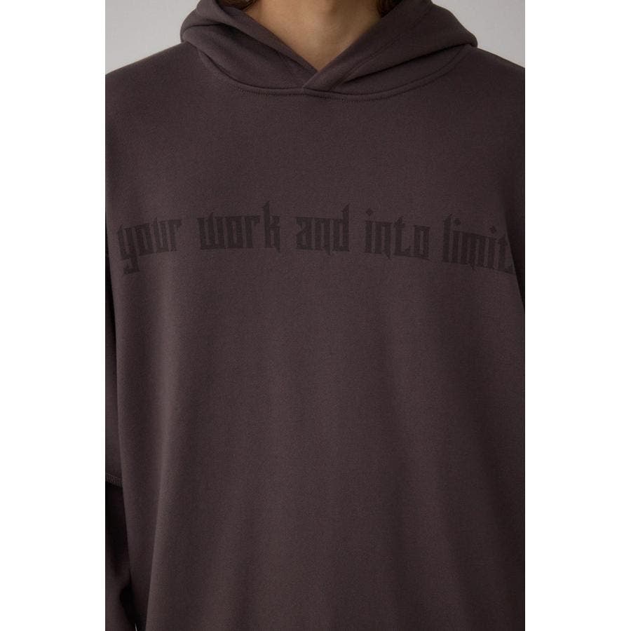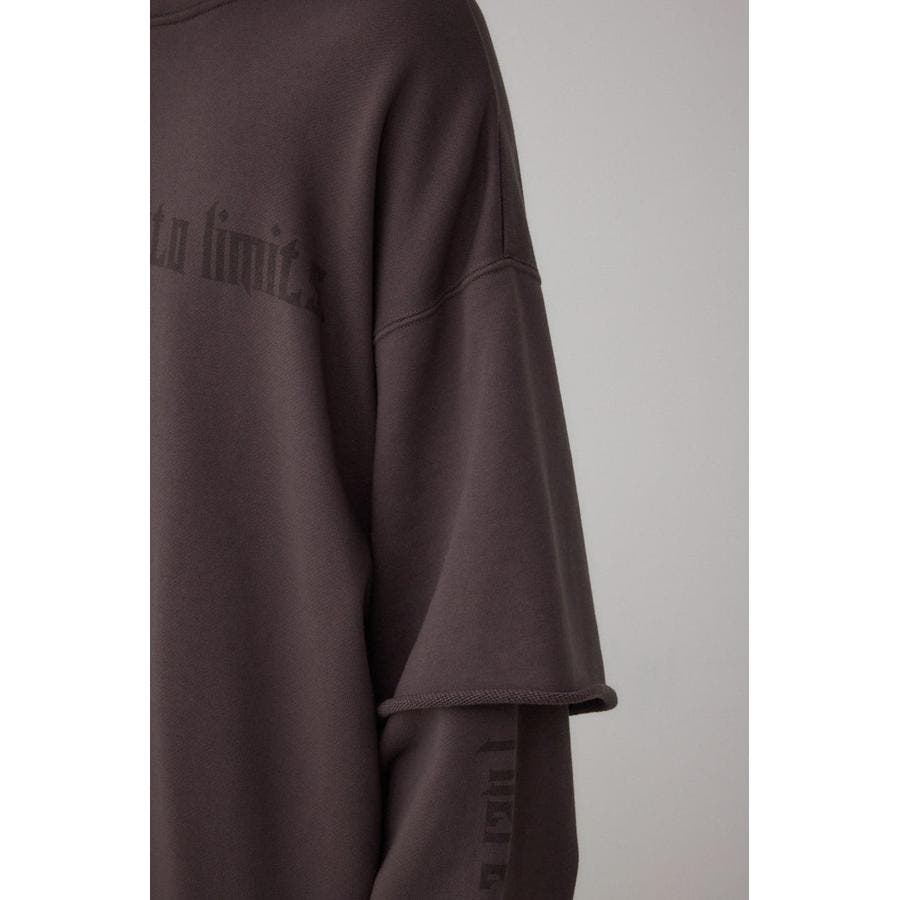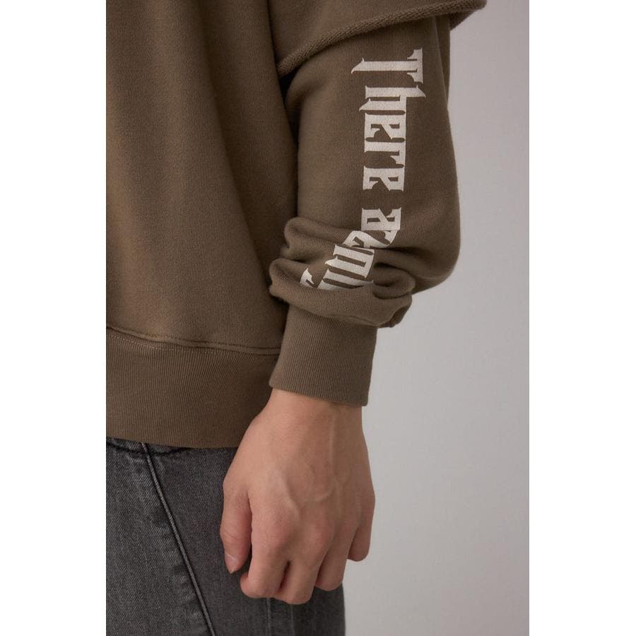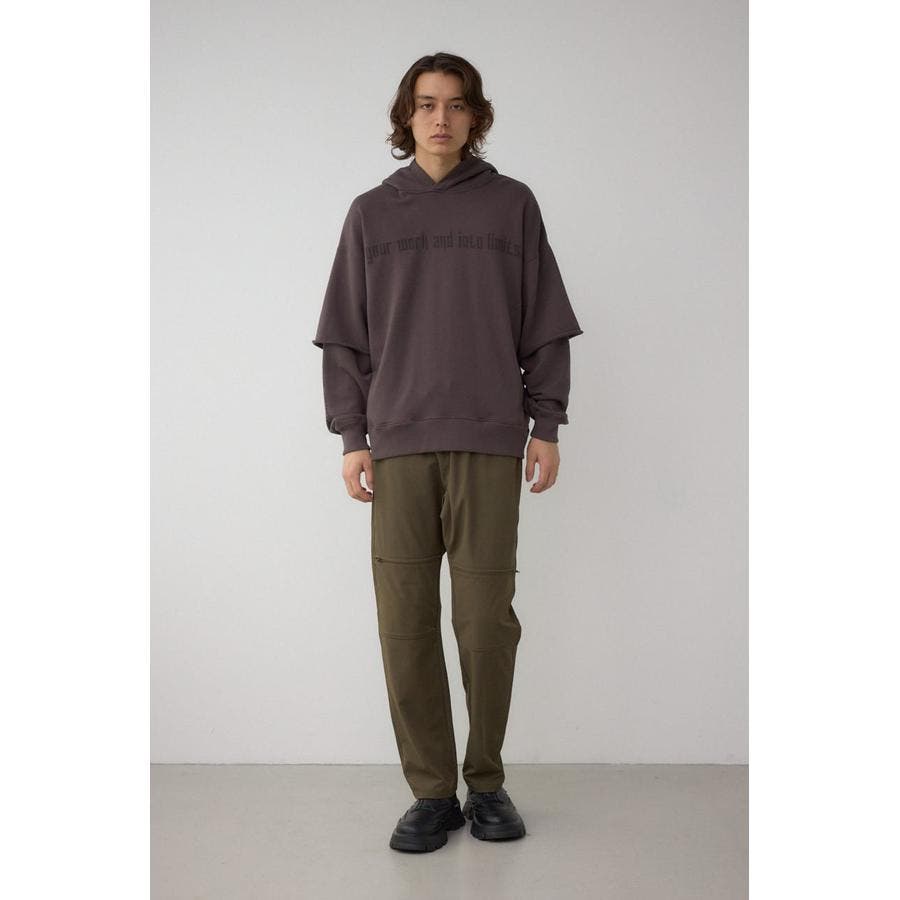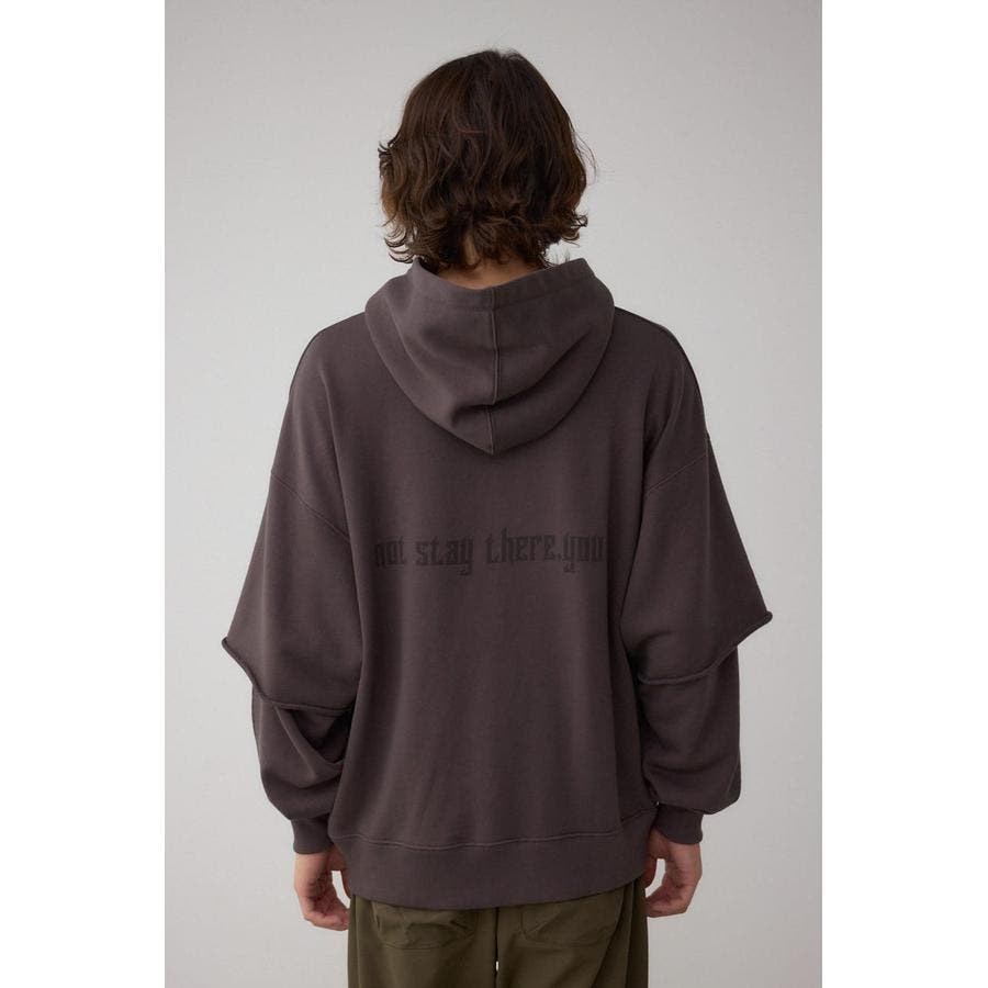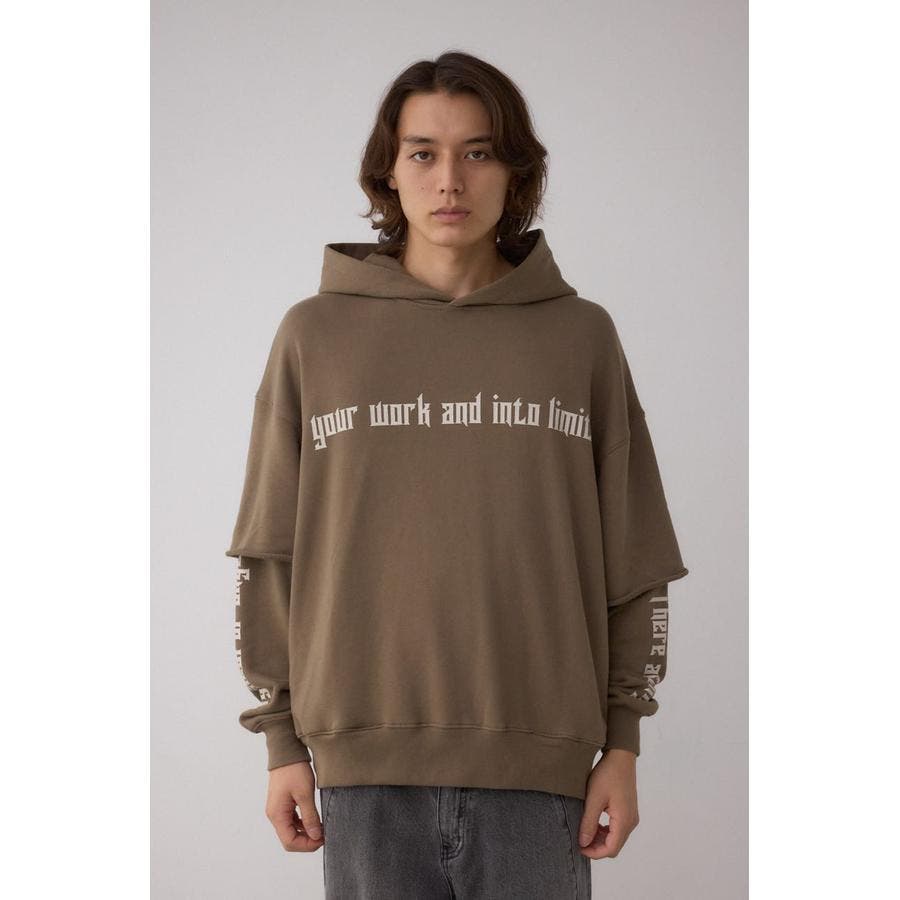 フェイクレイヤード仕様で1枚で重ね着風の表情が出せるスウェットフーディー。