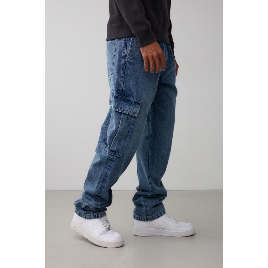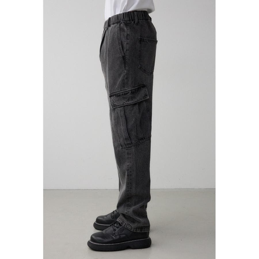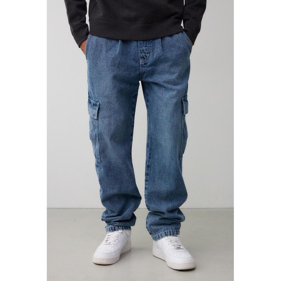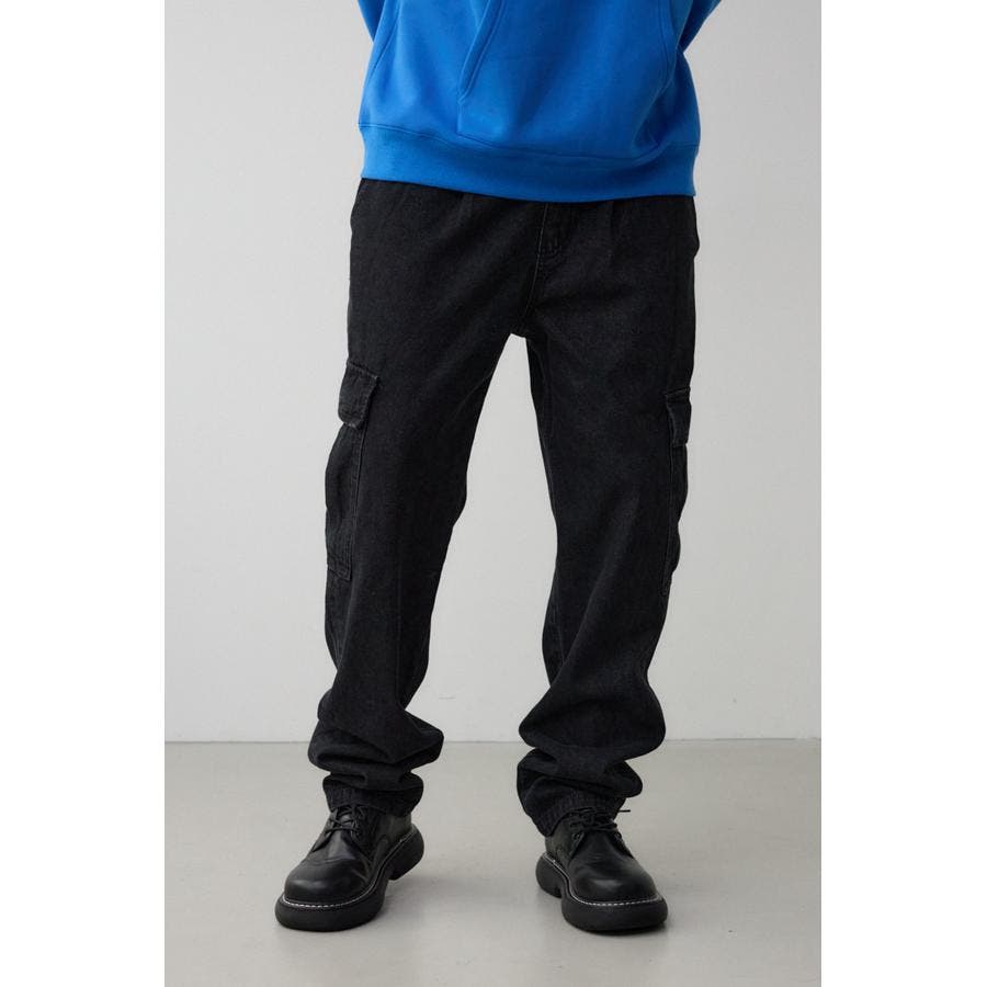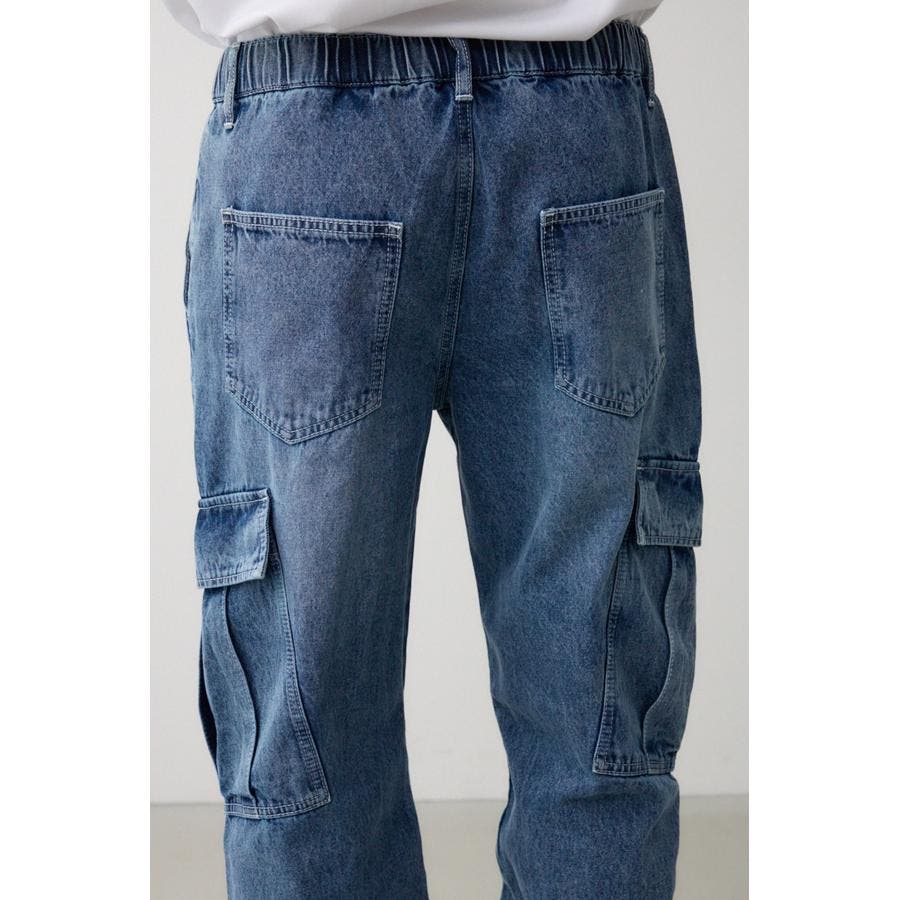 ゆったりデザインのデニムカーゴパンツになります。