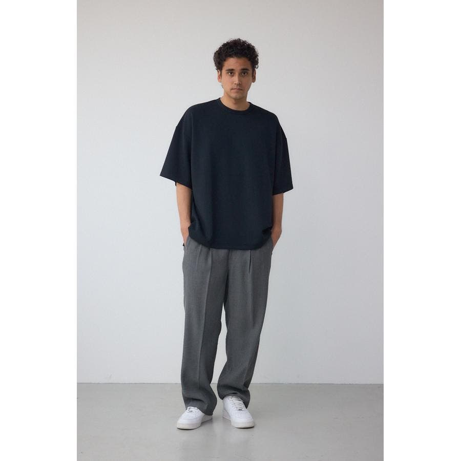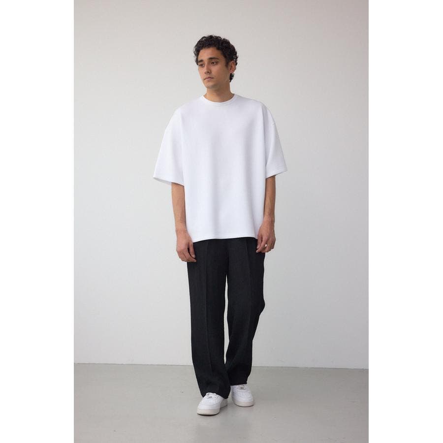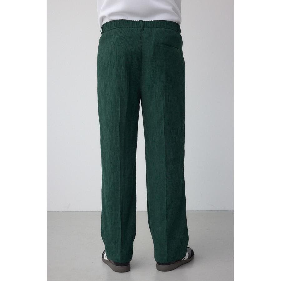 表面に縦シボがあり、センタープレスもしていてカジュアルからキレイ目まで使える素材になっています。