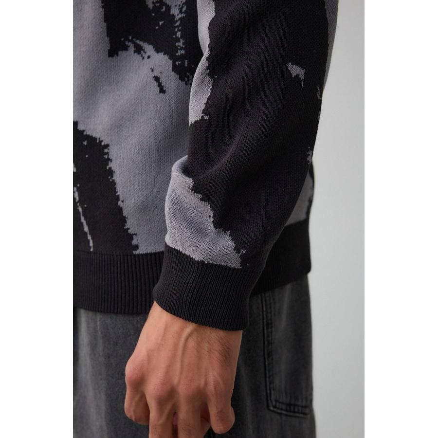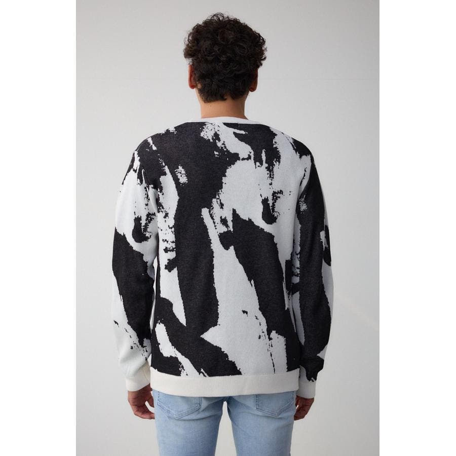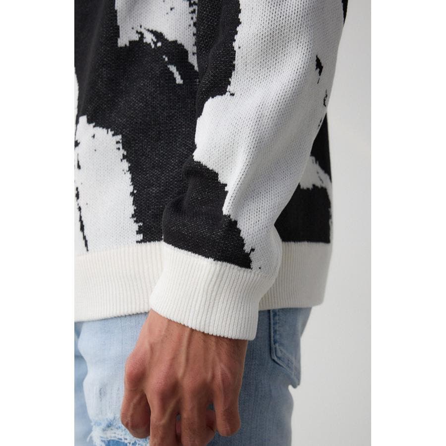 特に、ホワイトボディにブラック柄の色を重ねて編んでいるため、強配色により、ホワイト地のブラックの透けが目立ちます。