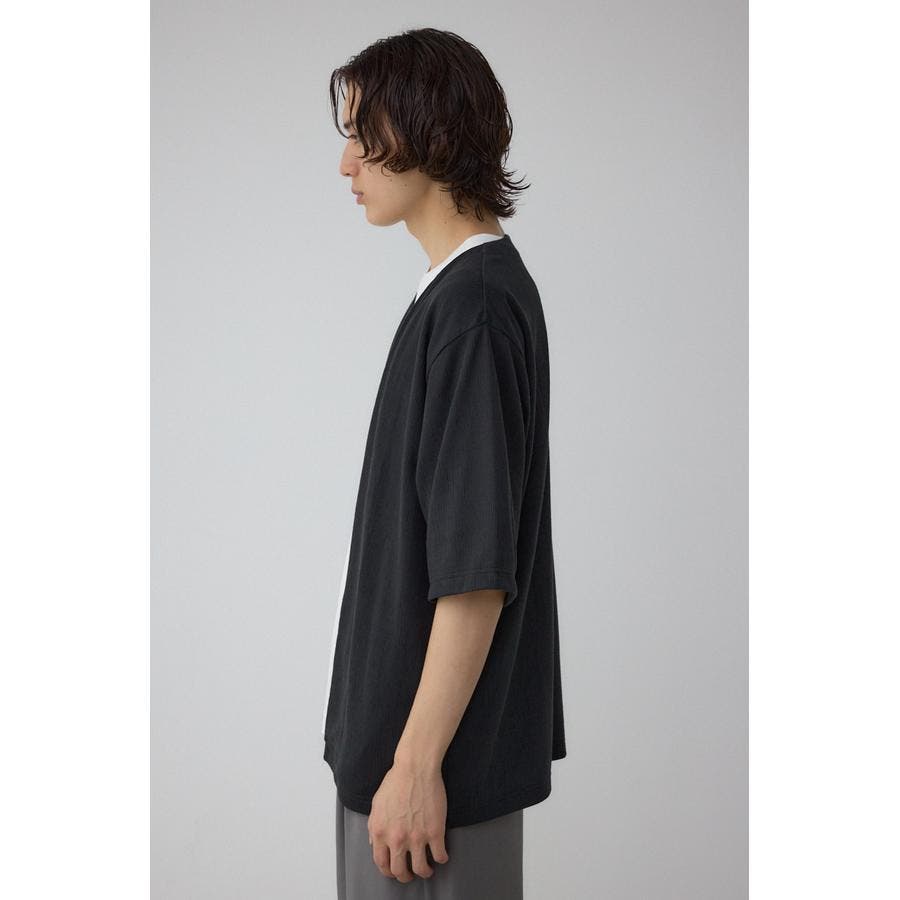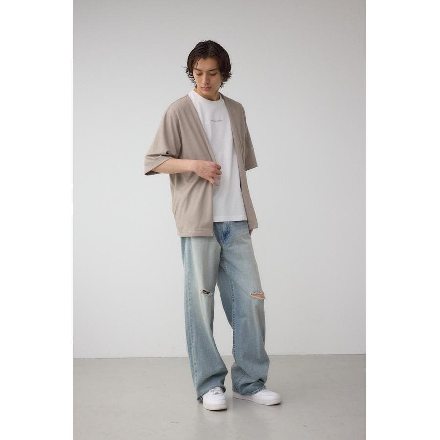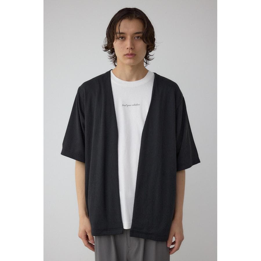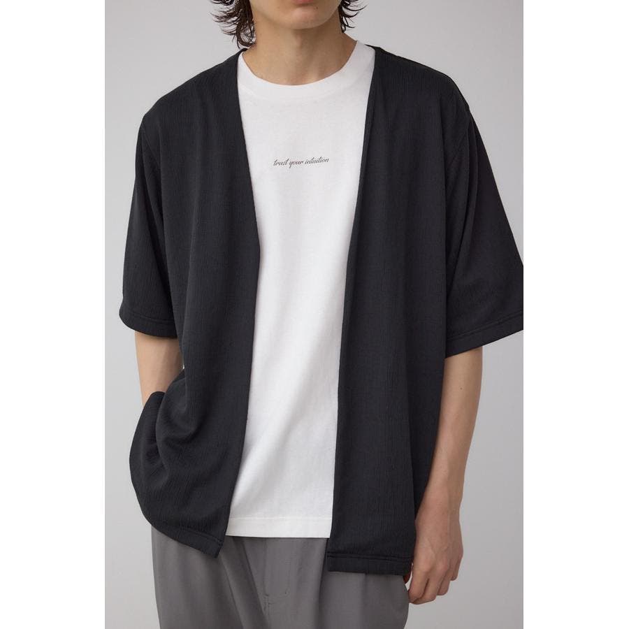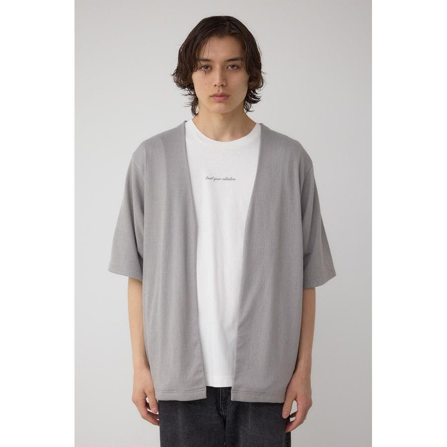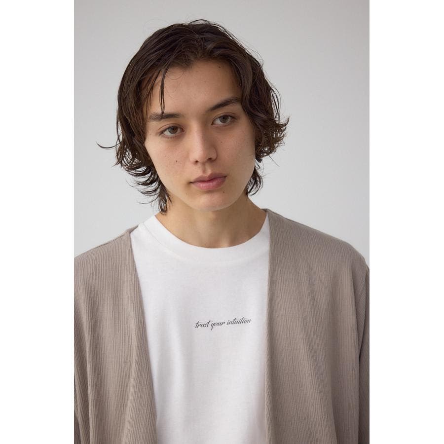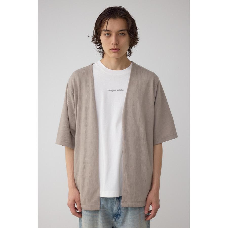 ベーシックで着やすい素材Tシャツと、さりげない表面感で落ち感のある生地を使用したカーディガンです。
