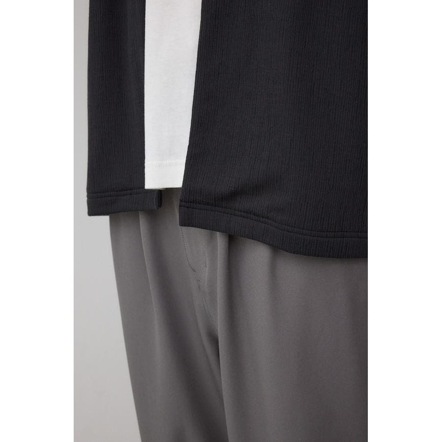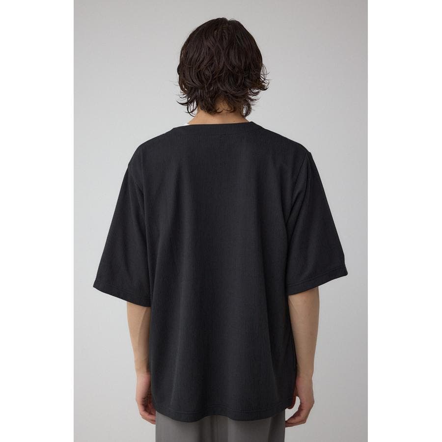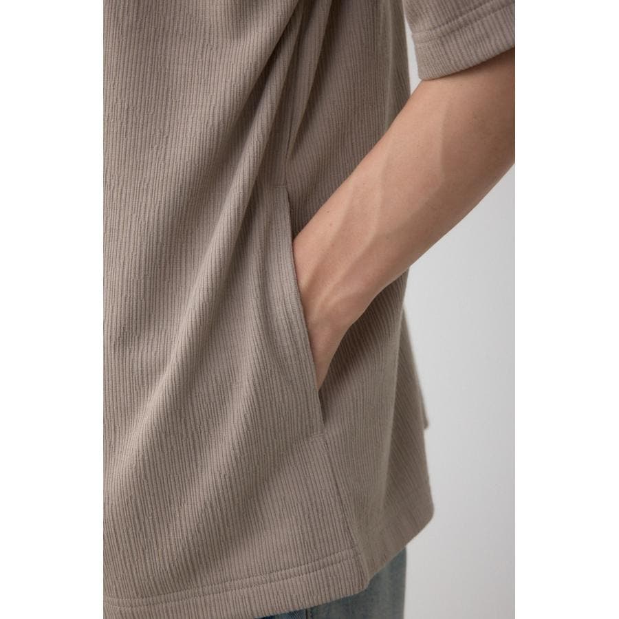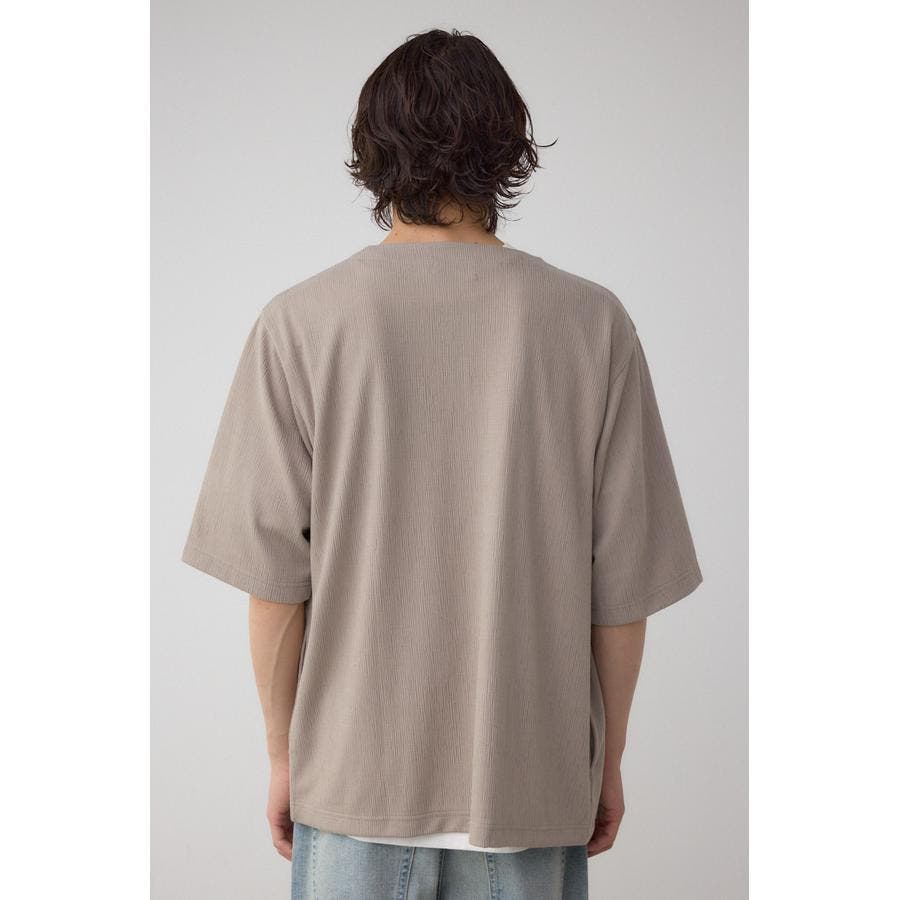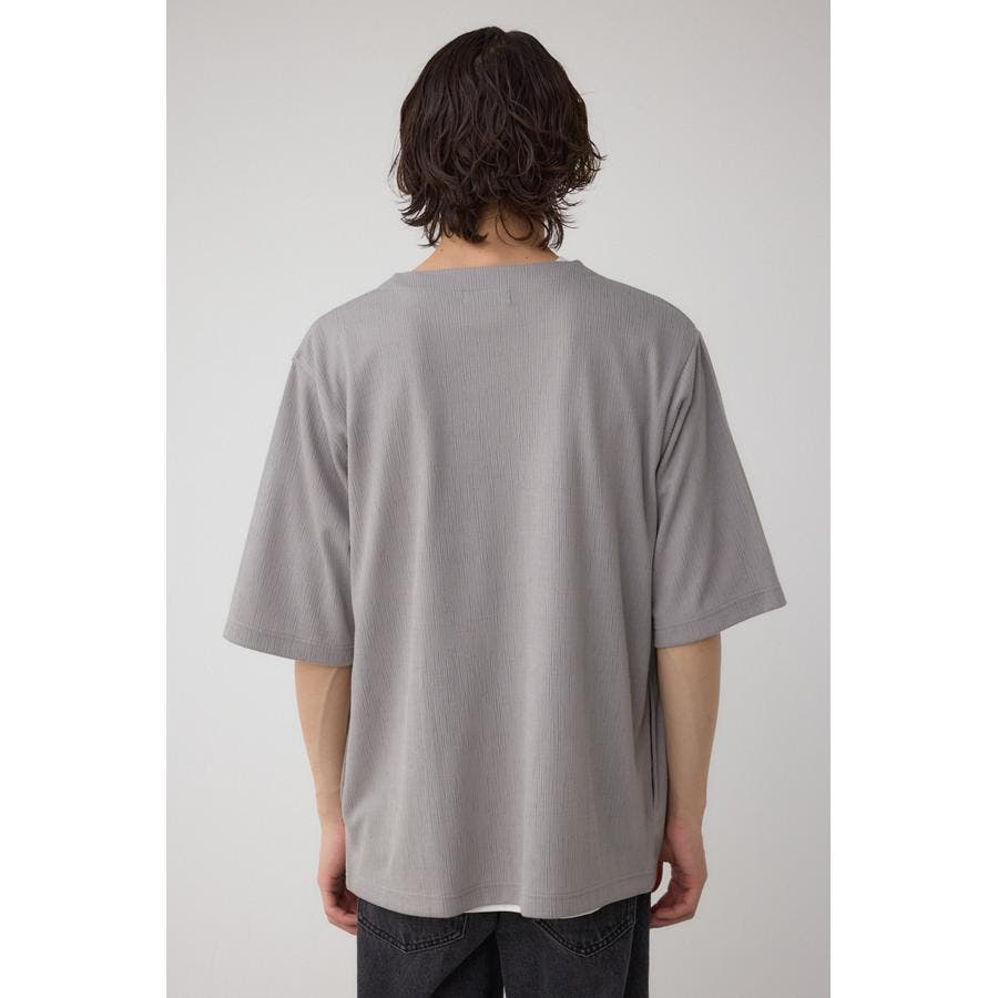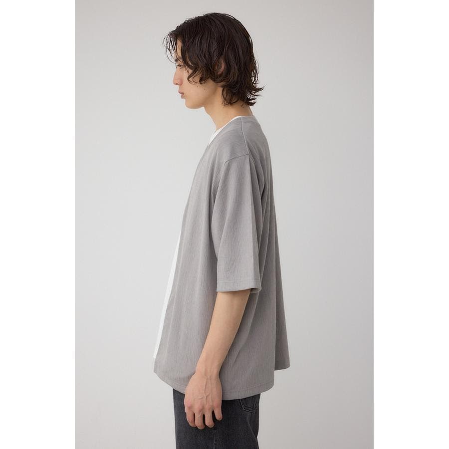 楊柳のような表面感のあるトッパーにワンポイントロゴのTシャツがセットになっています。