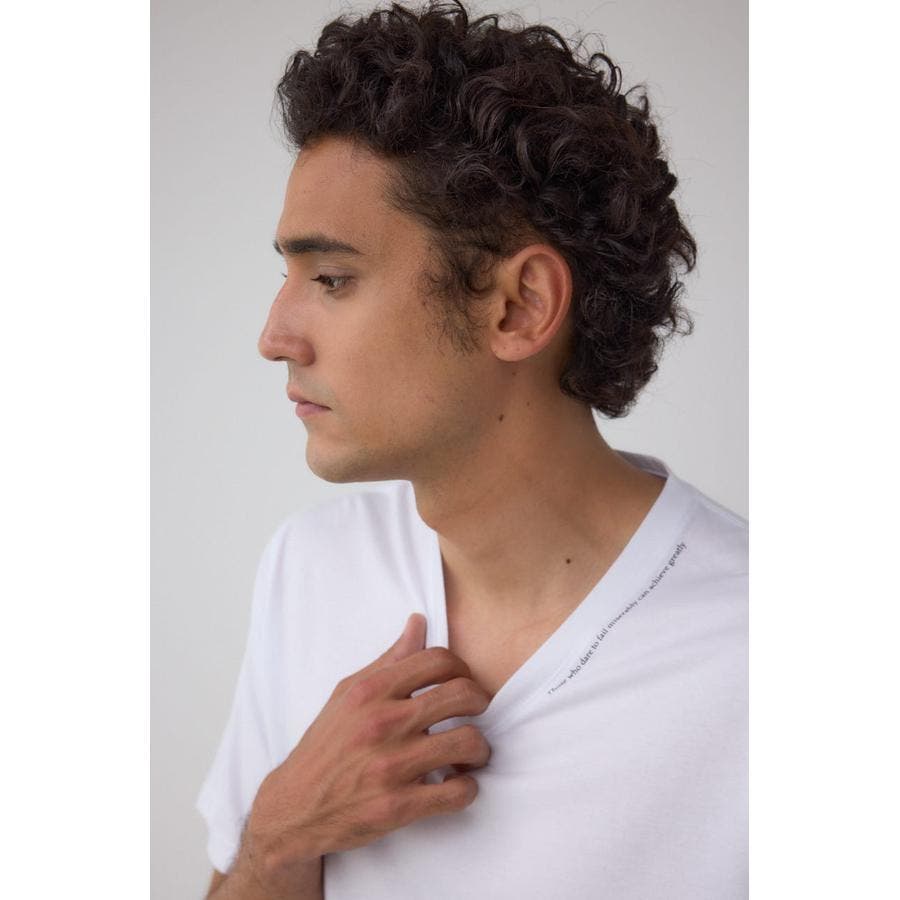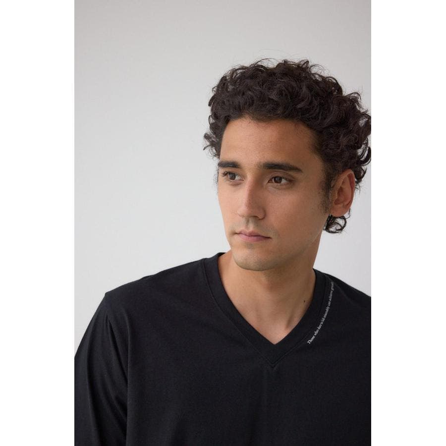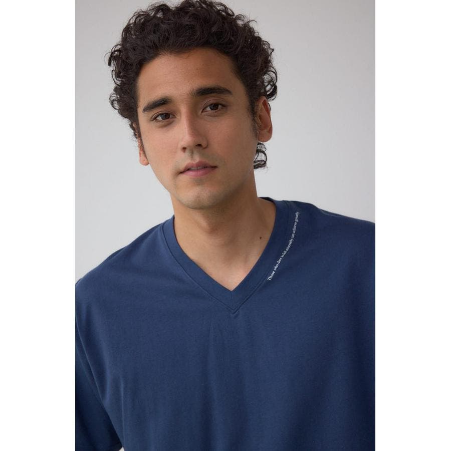 ネック部分にロゴが入ったVネックTシャツになります。