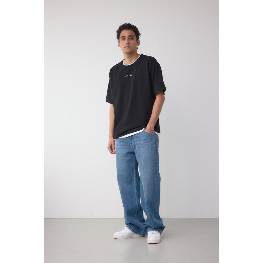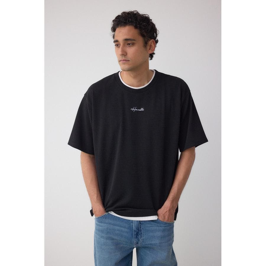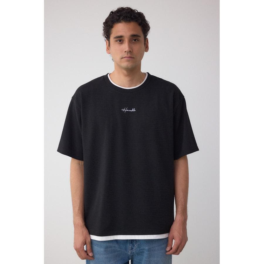 表面感のある生地にTシャツをドッキングさせたフェイクレイヤードTシャツ。