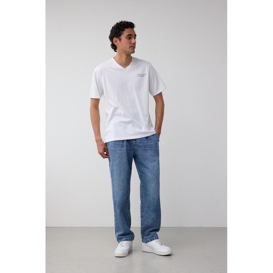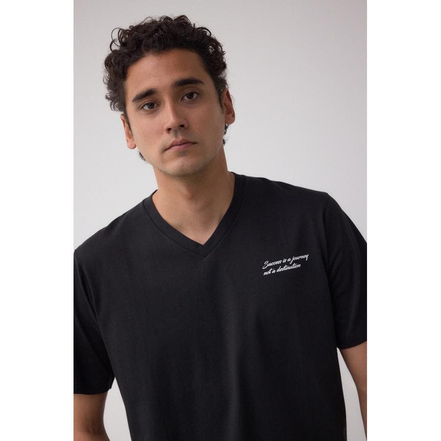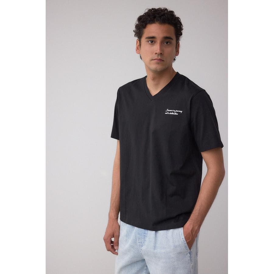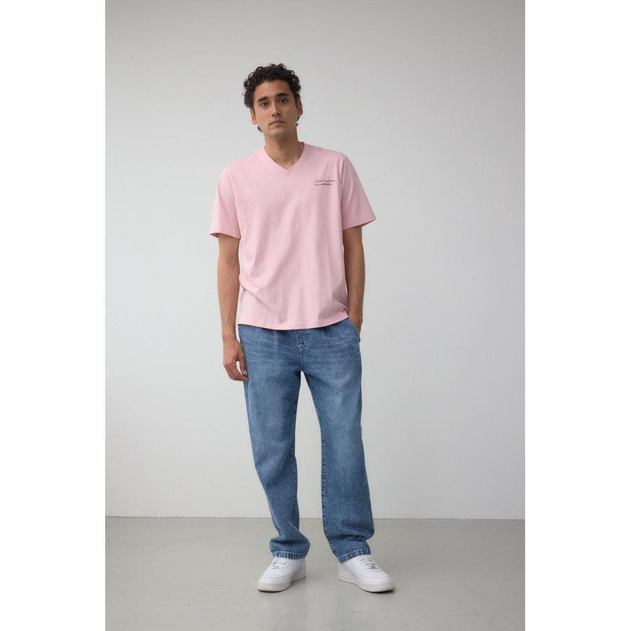 コットン100%のベーシックワンポイントVネックTシャツです。