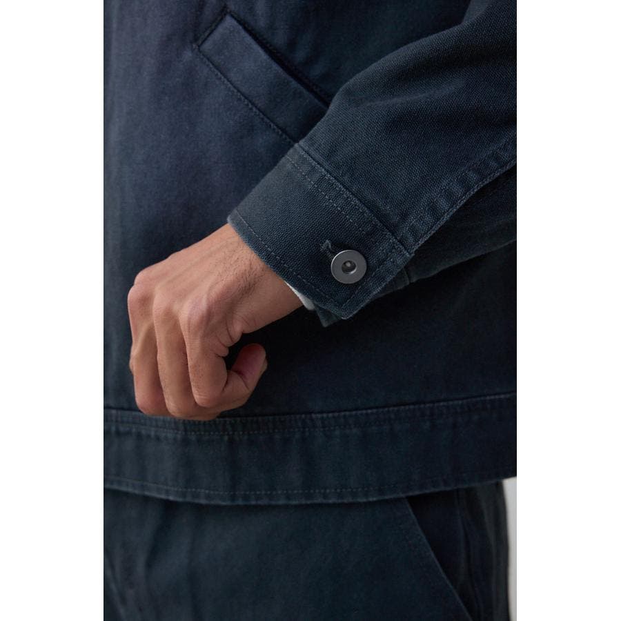 平織のヘビーオックスにブラスト+洗い加工であたりをだしたヴィンテージ風に仕上げています。