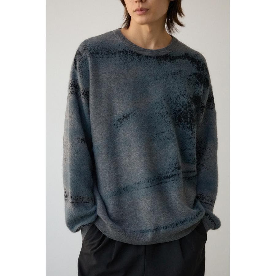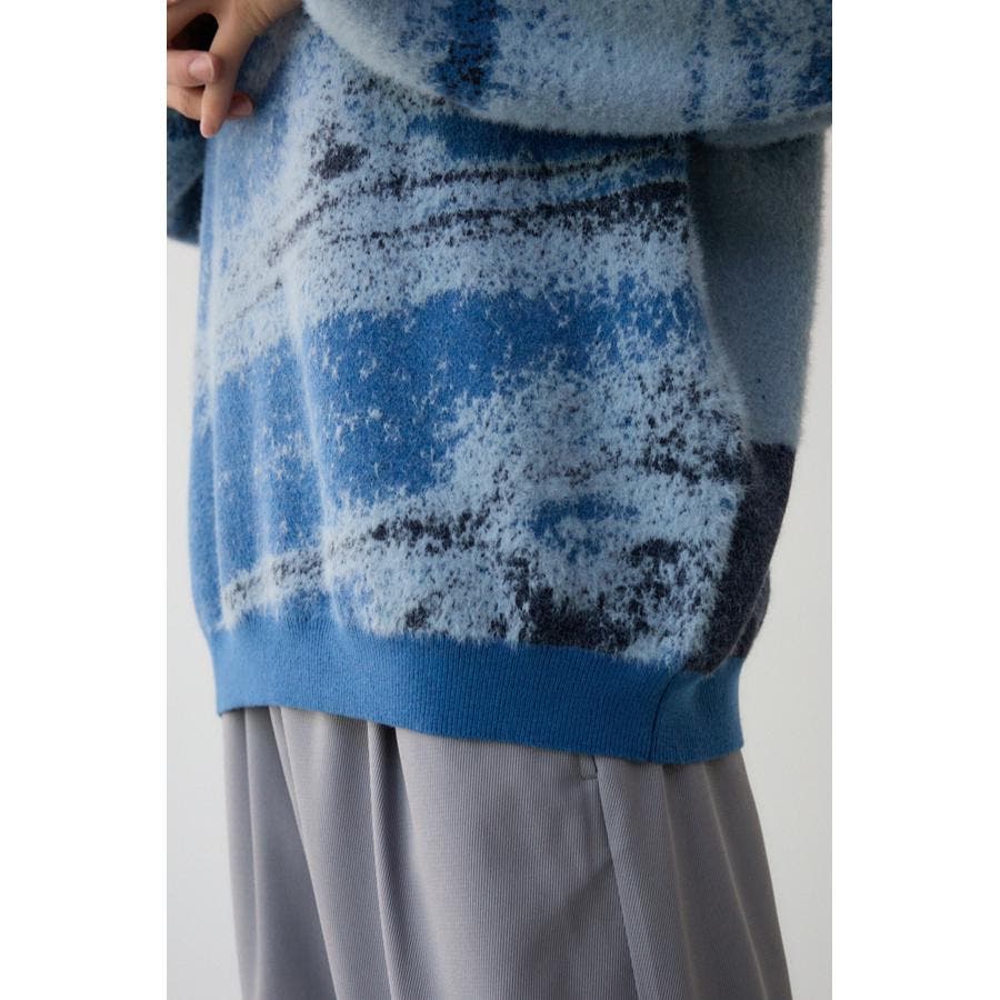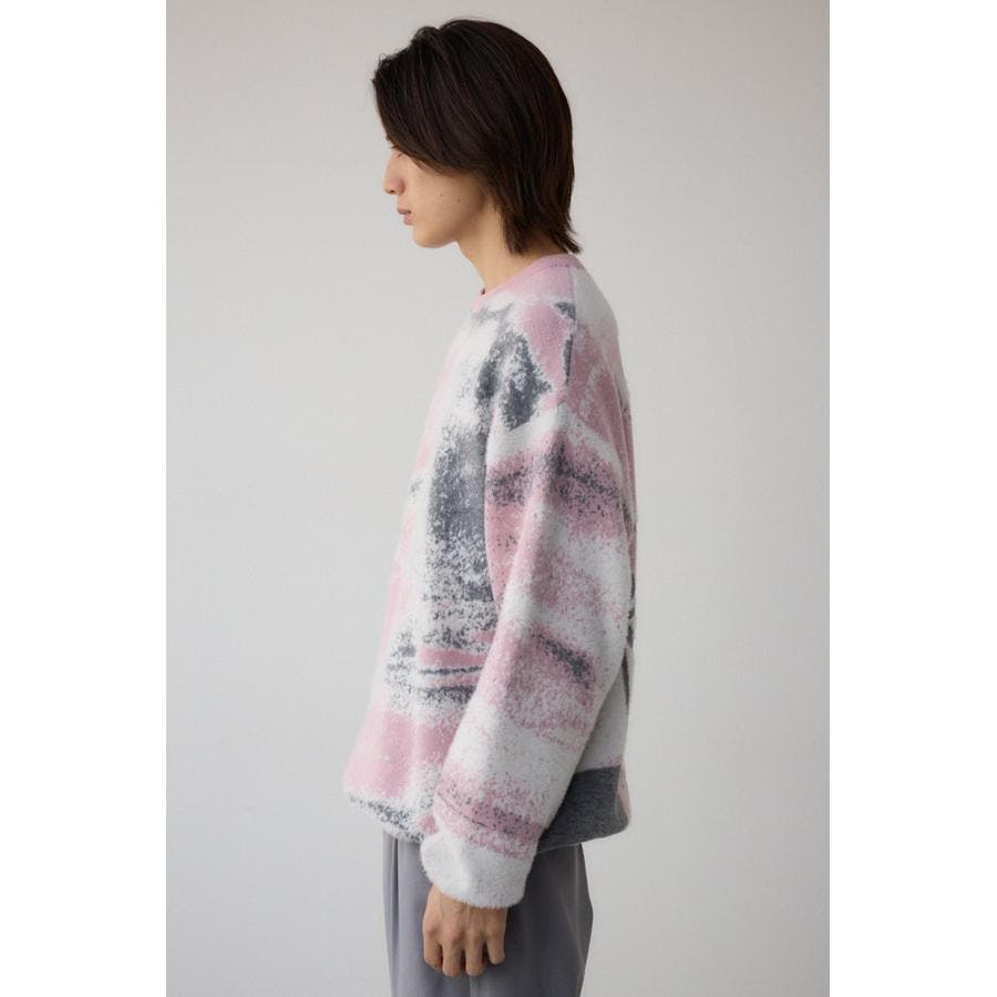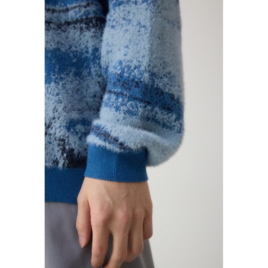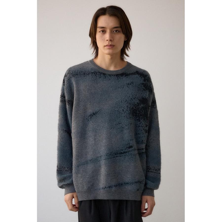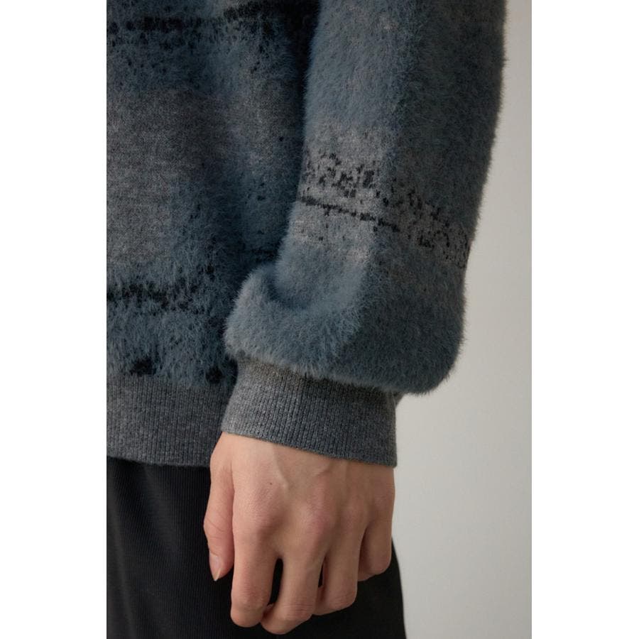 ナイロンシャギーとストレート糸を合わせて編み、陰影でフォトのようなイメージを表現したニットトップス。