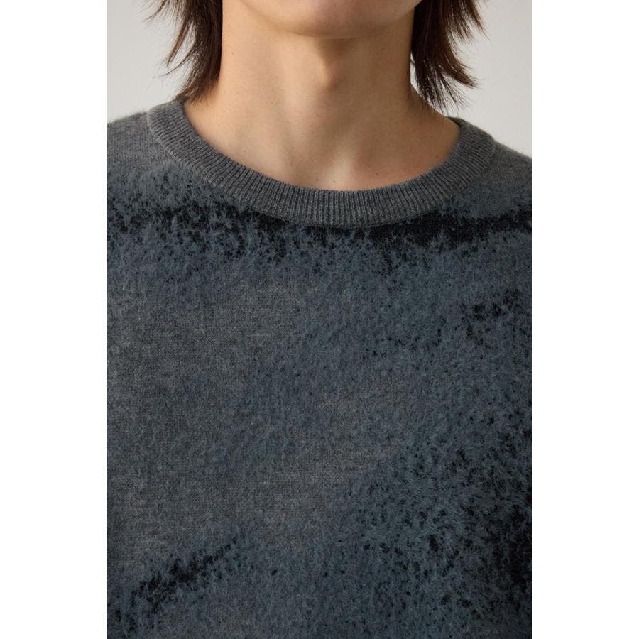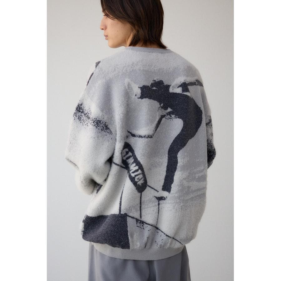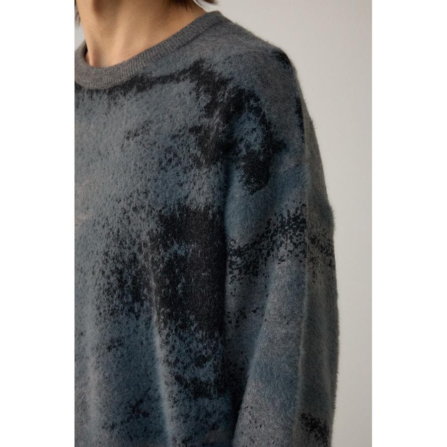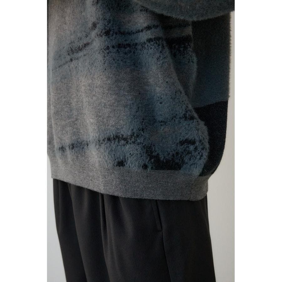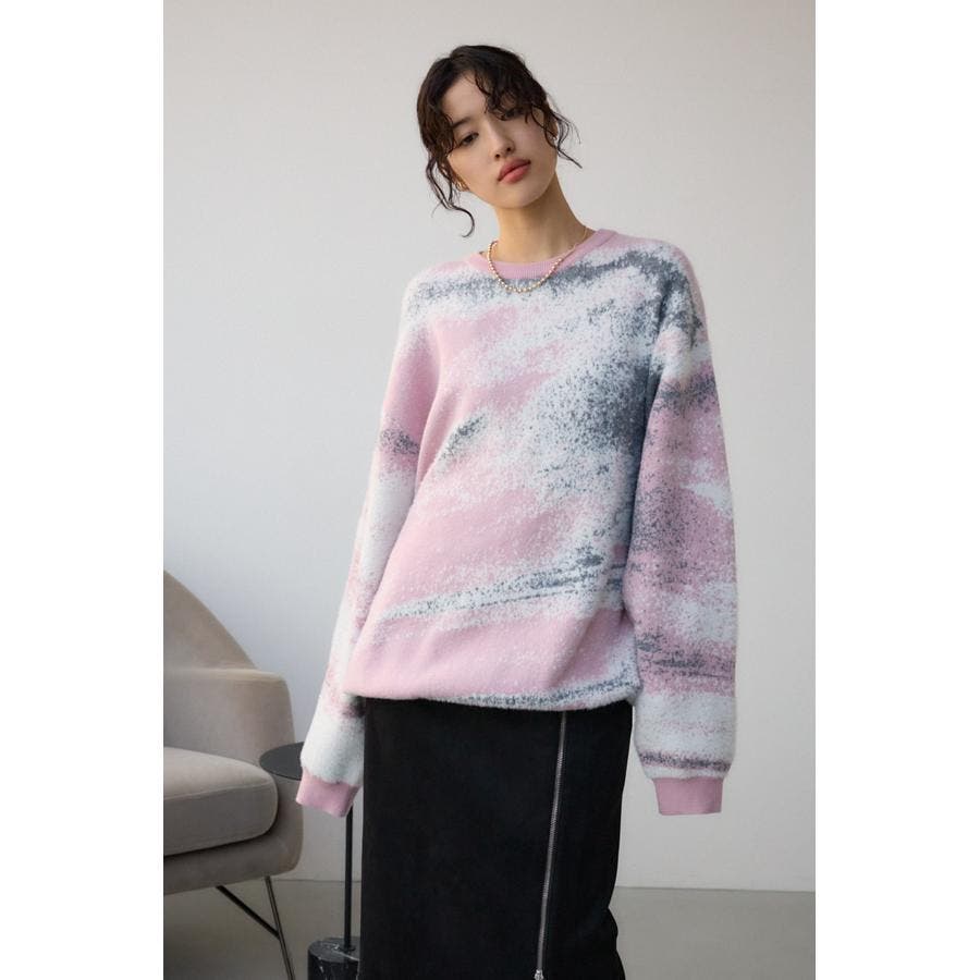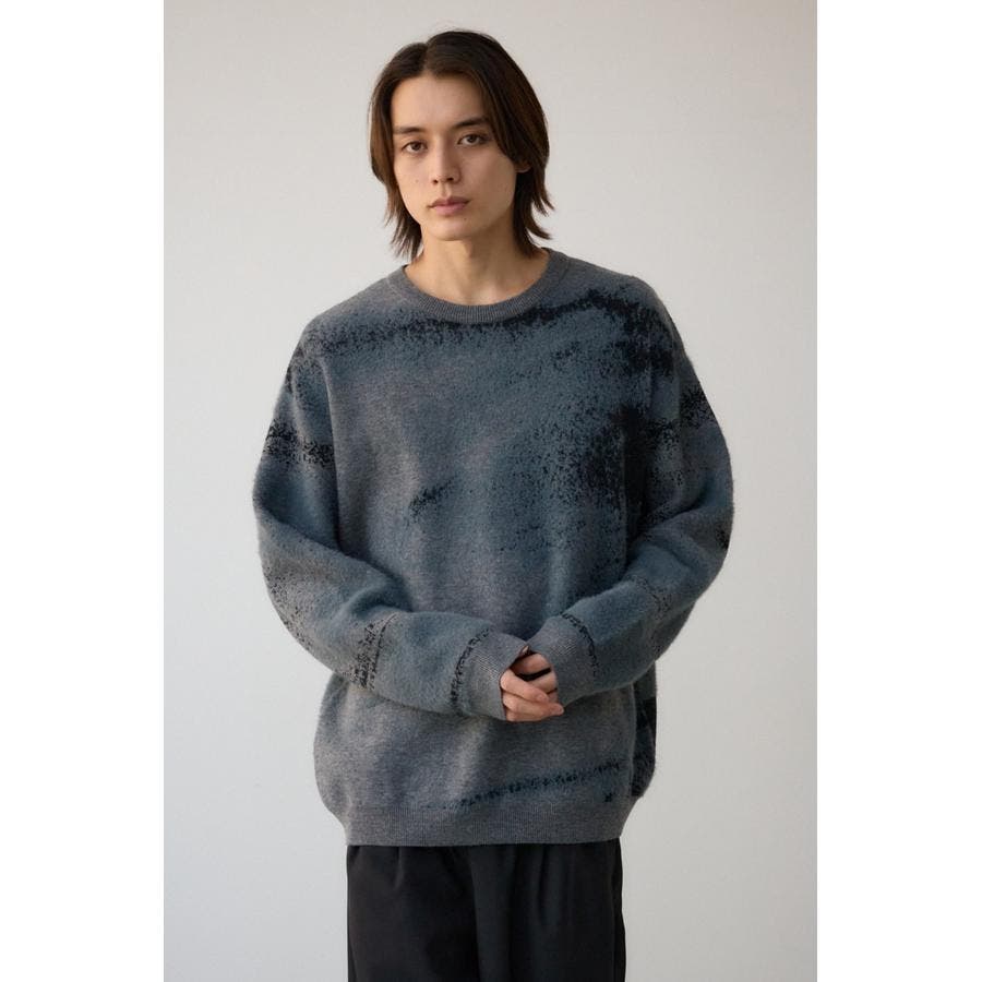 ナイロンシャギーとストレート糸を合わせて編み、陰影でフォトのようなイメージを表現したニットトップス。