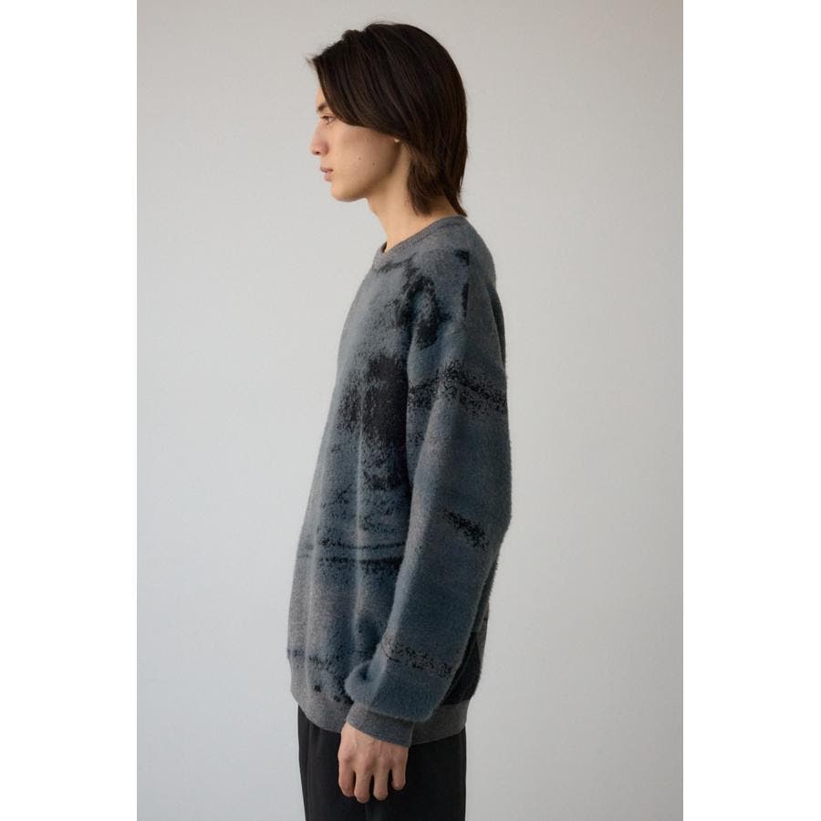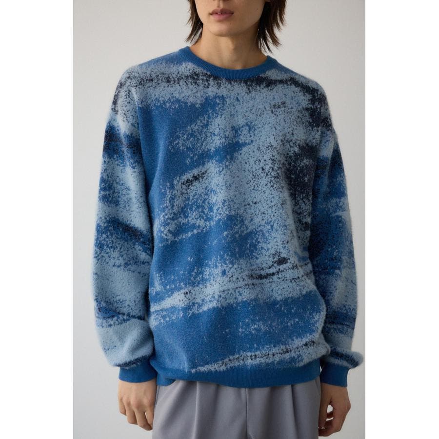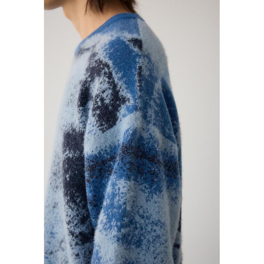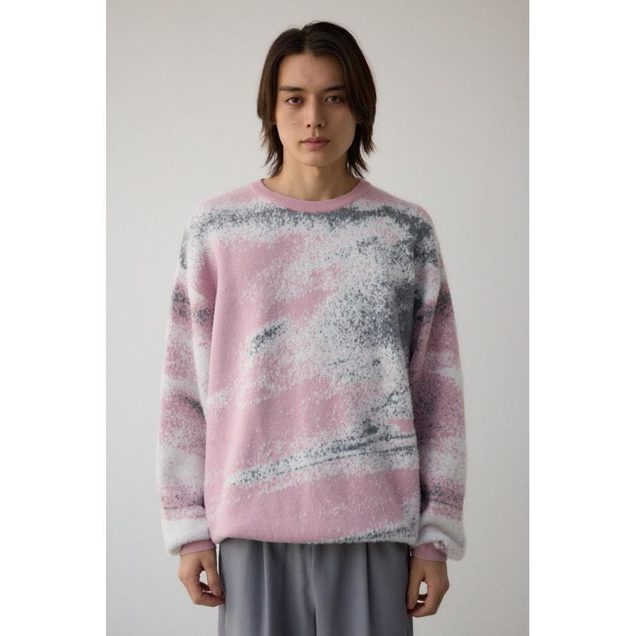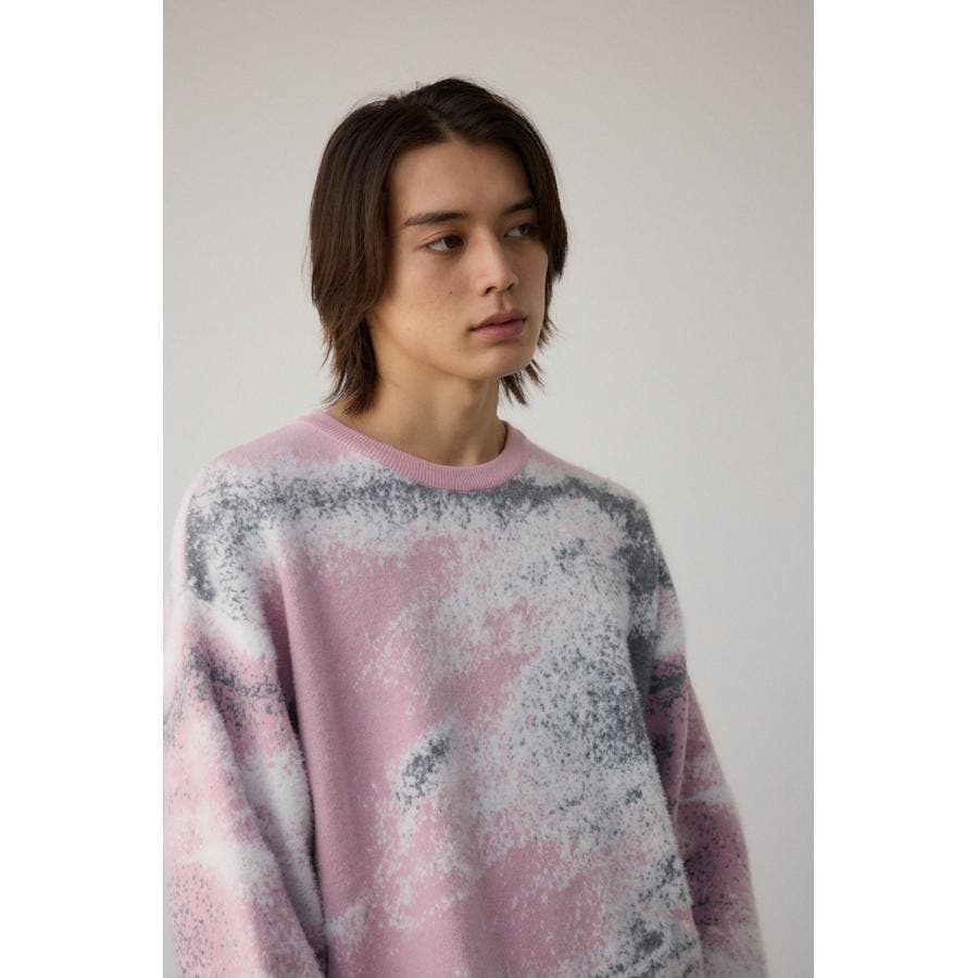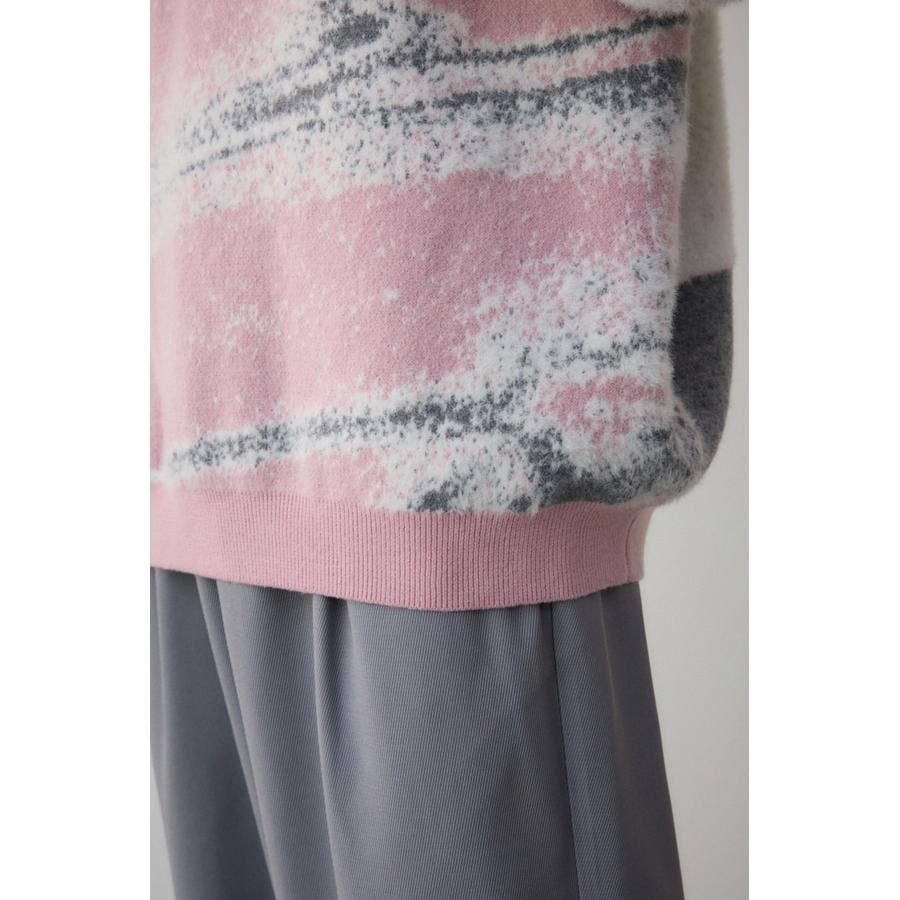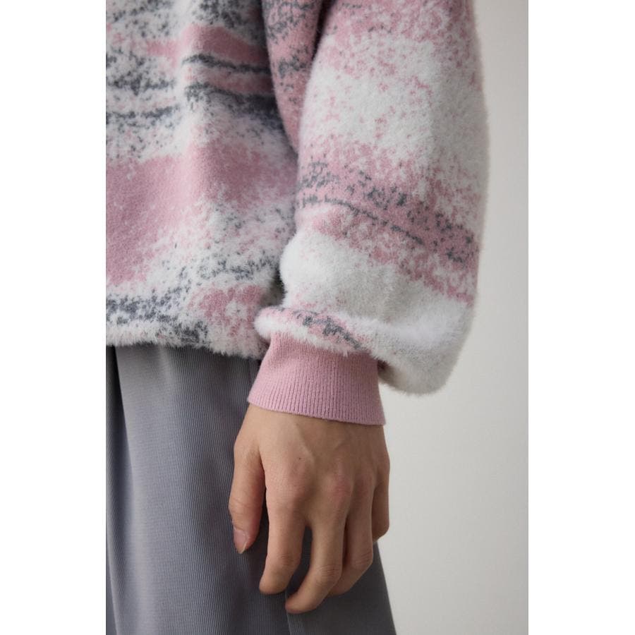 ナイロンシャギーとストレート糸を合わせて編み、陰影でフォトのようなイメージを表現したニットトップス。