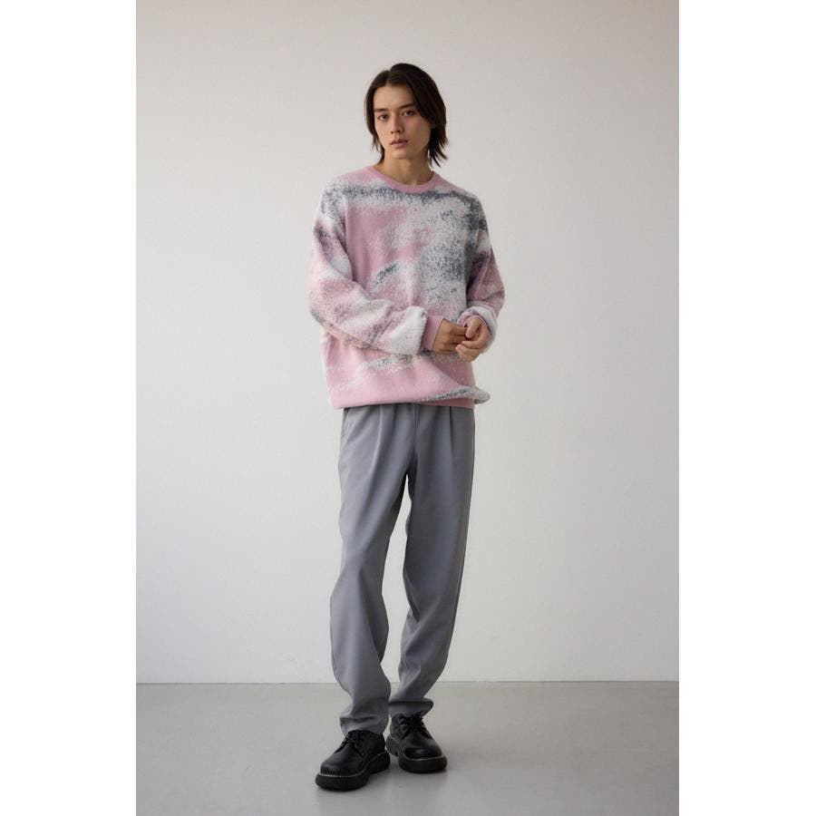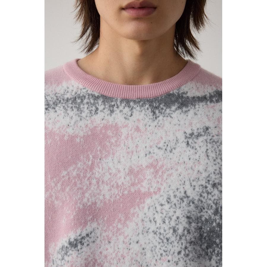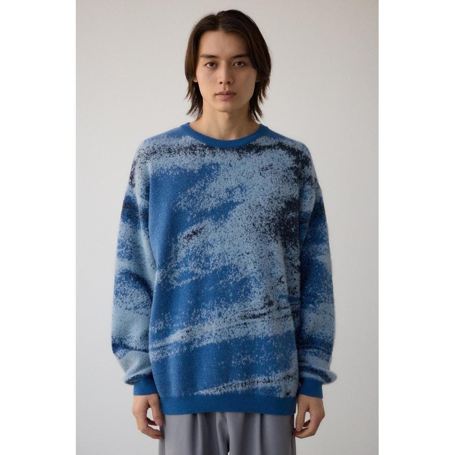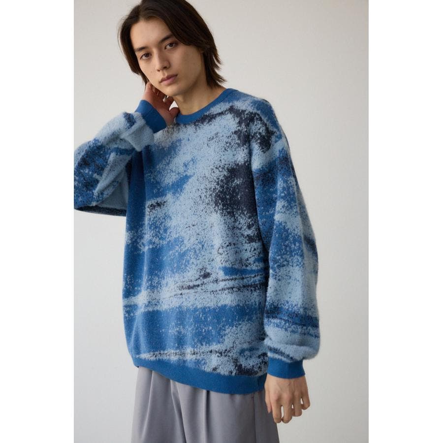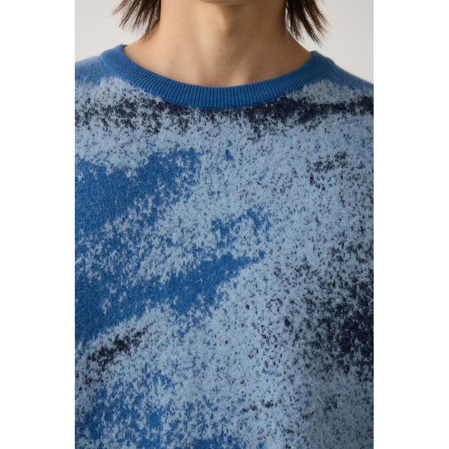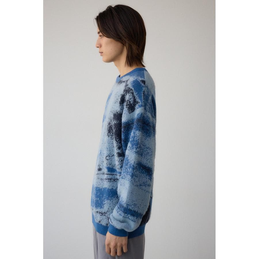 ナイロンシャギーとストレート糸を合わせて編み、陰影でフォトのようなイメージを表現したニットトップス。