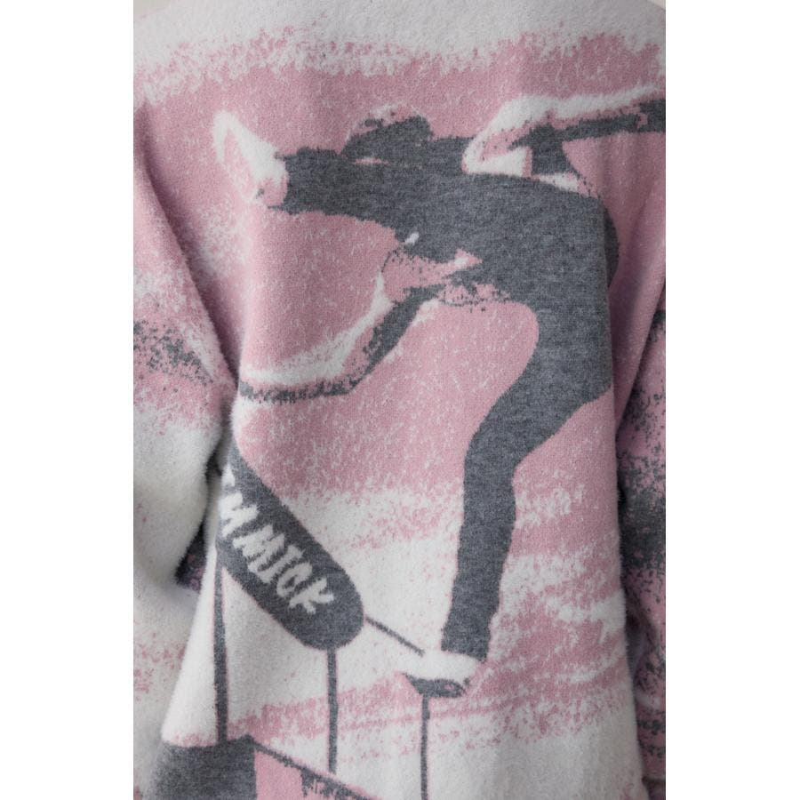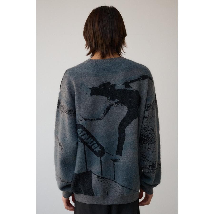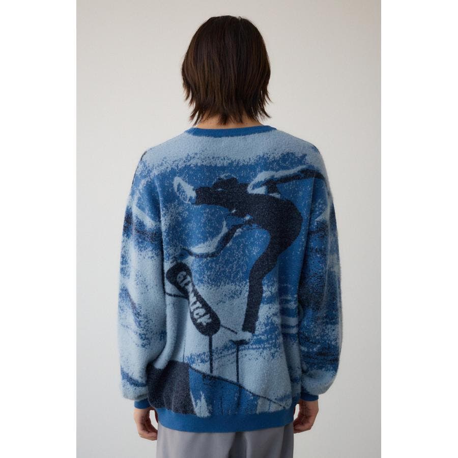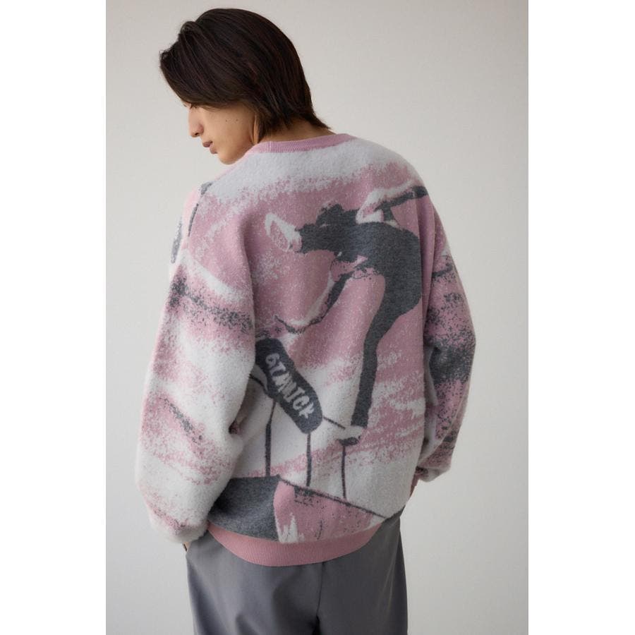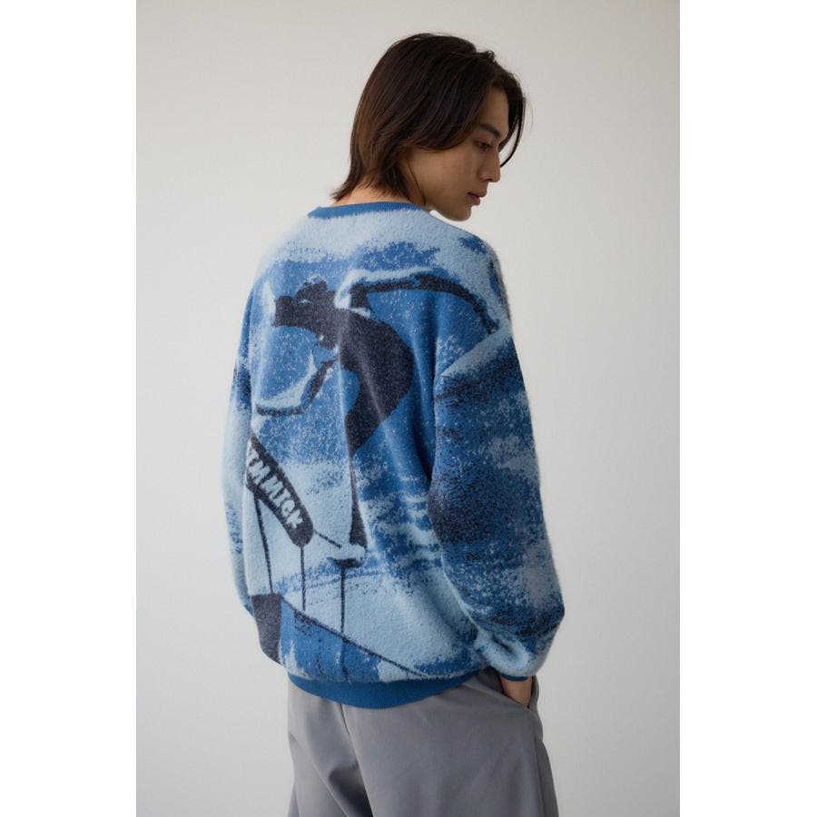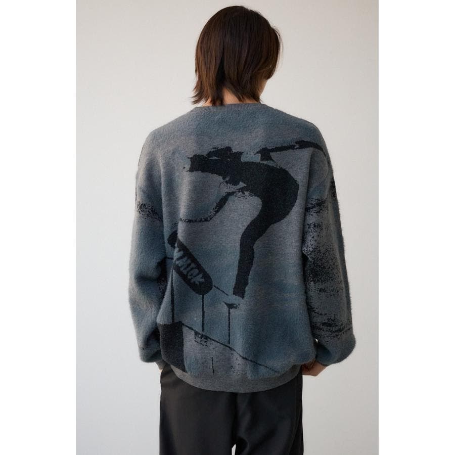 ナイロンシャギーとストレート糸を合わせて編み、陰影でフォトのようなイメージを表現したニットトップス。