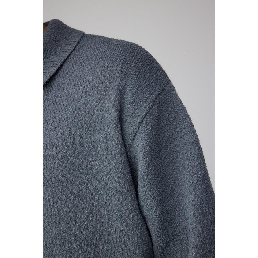 ポリエステルのブークレ糸に、ストレッチ糸を一緒に編み込み、ほどよい厚みを出しました。