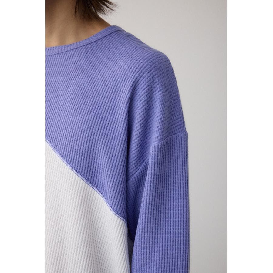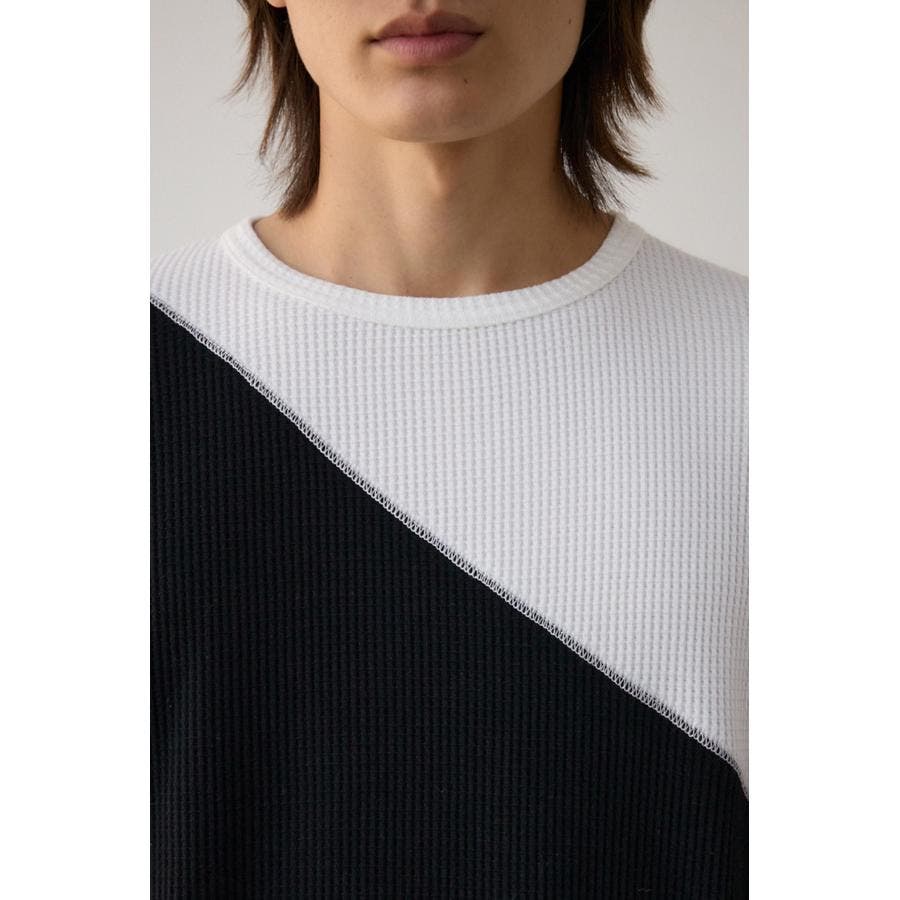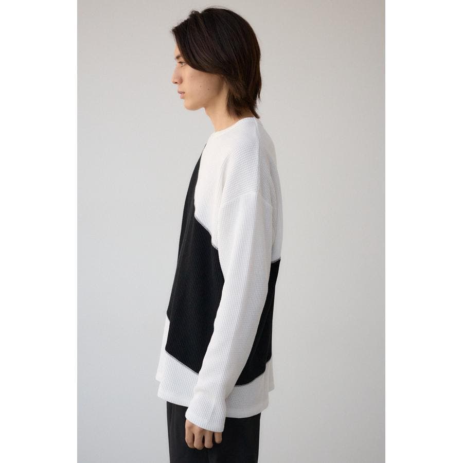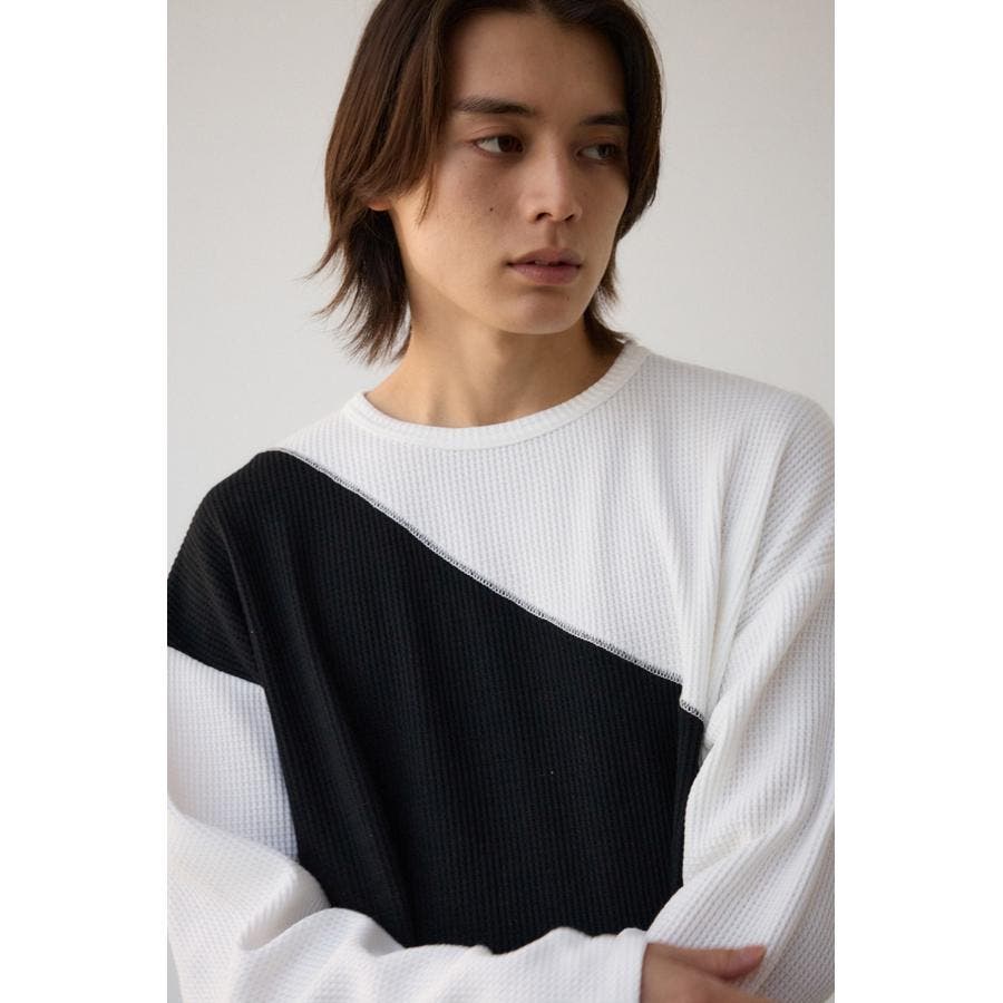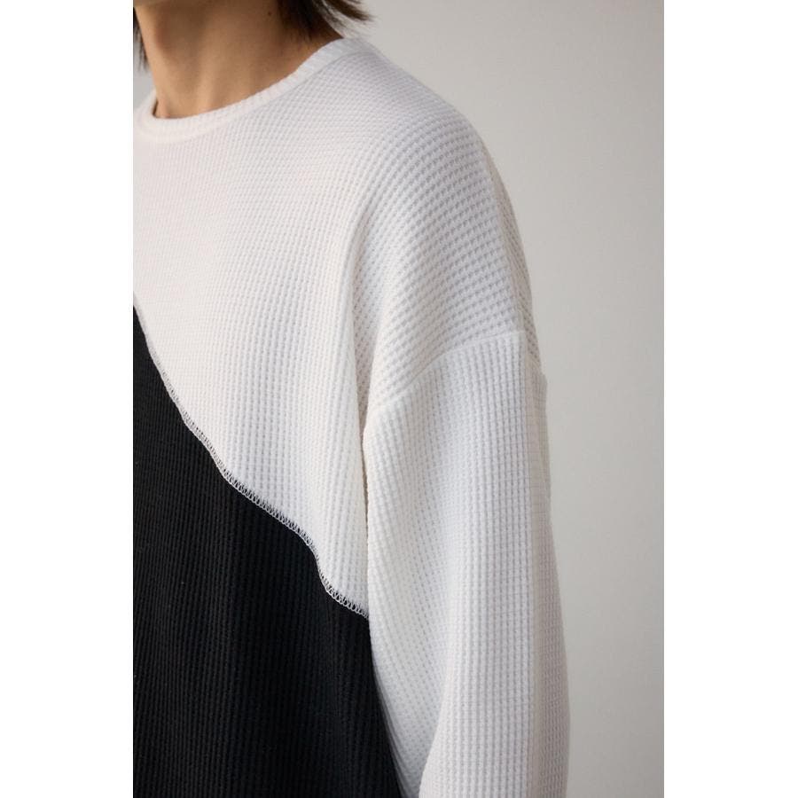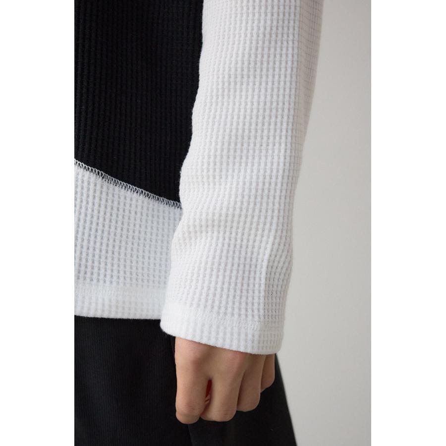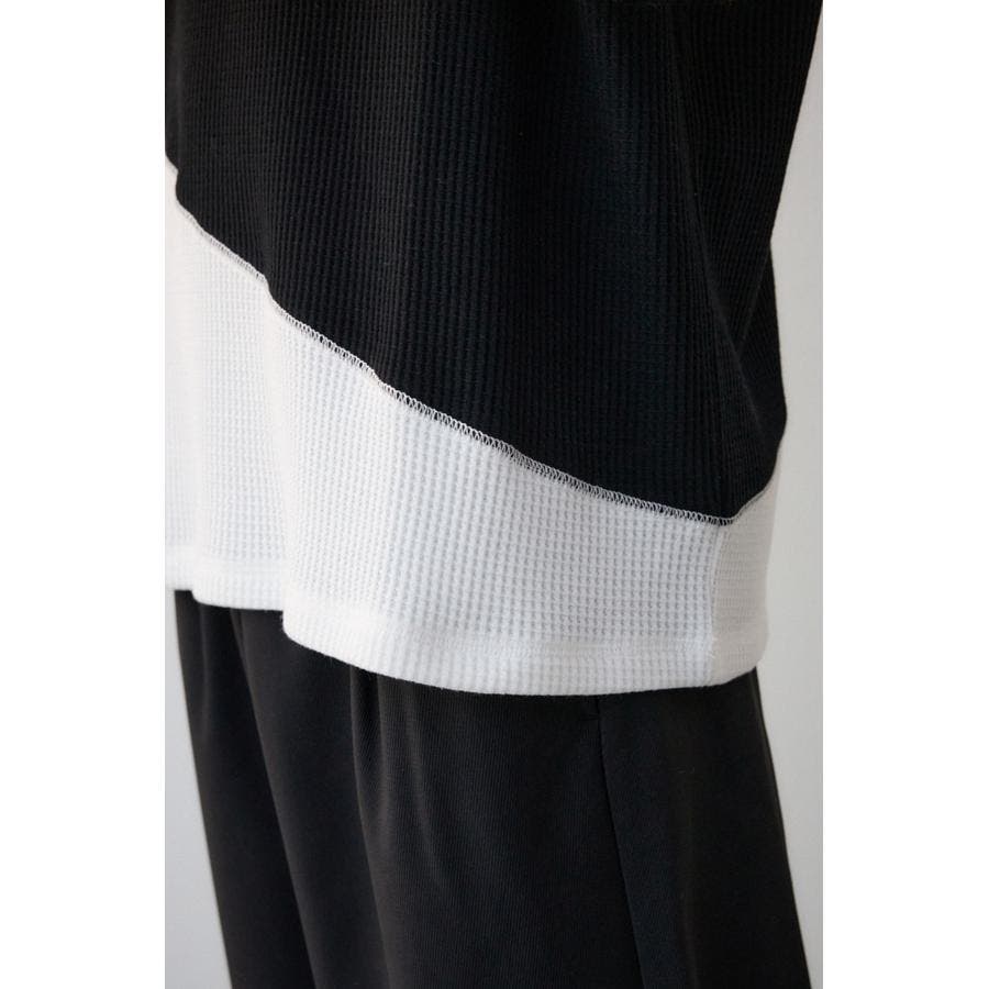 厚みのあるワッフル素材にバイカラーの切り替えがポイントです。