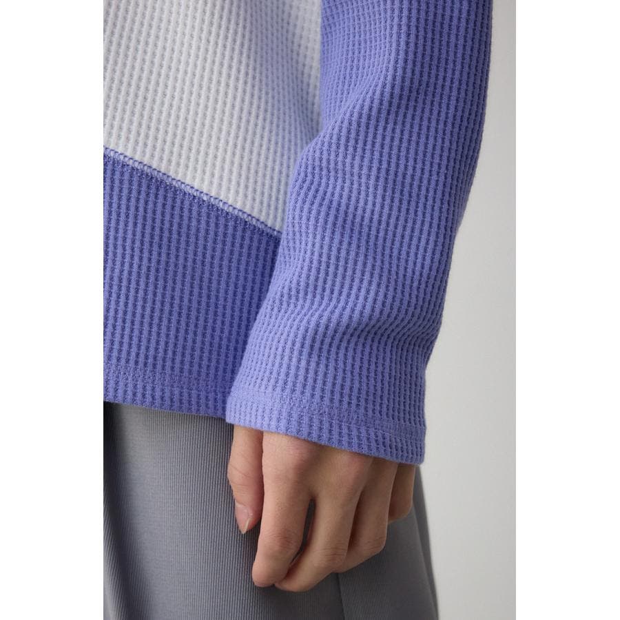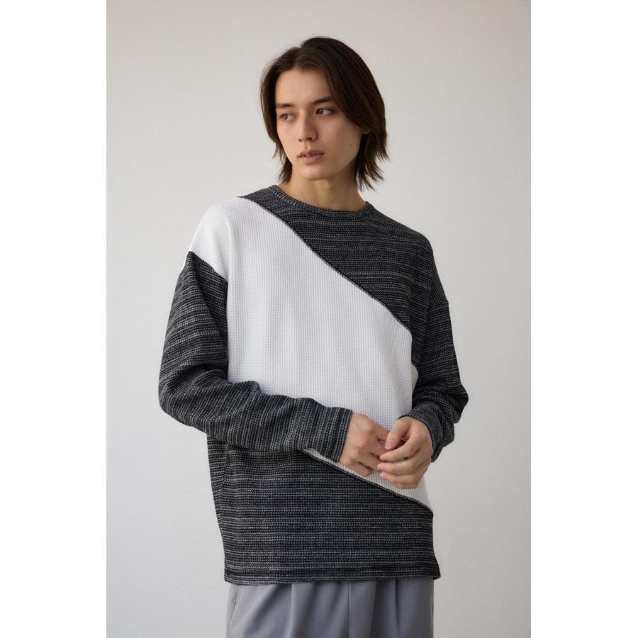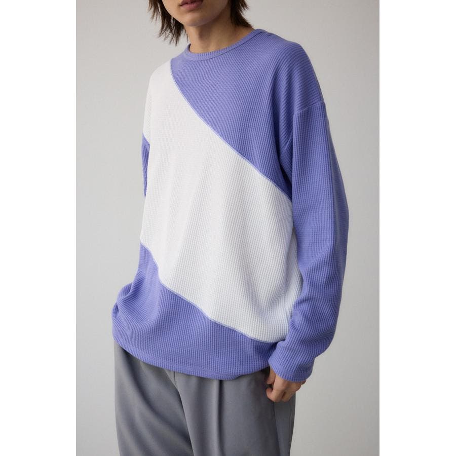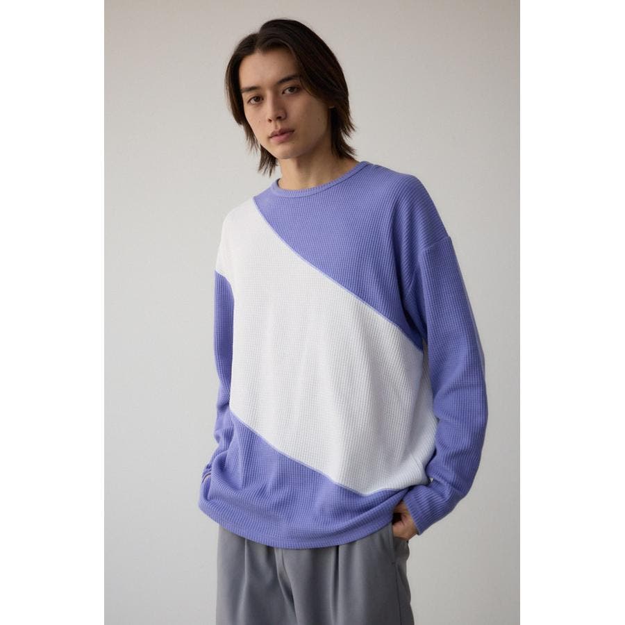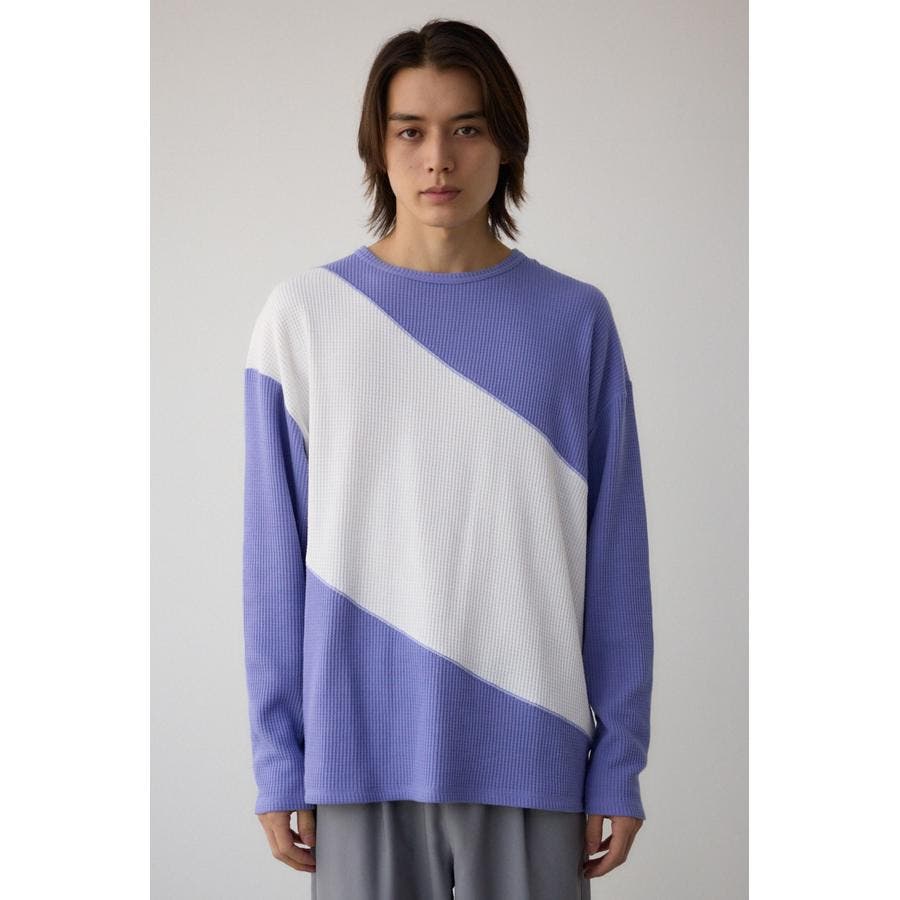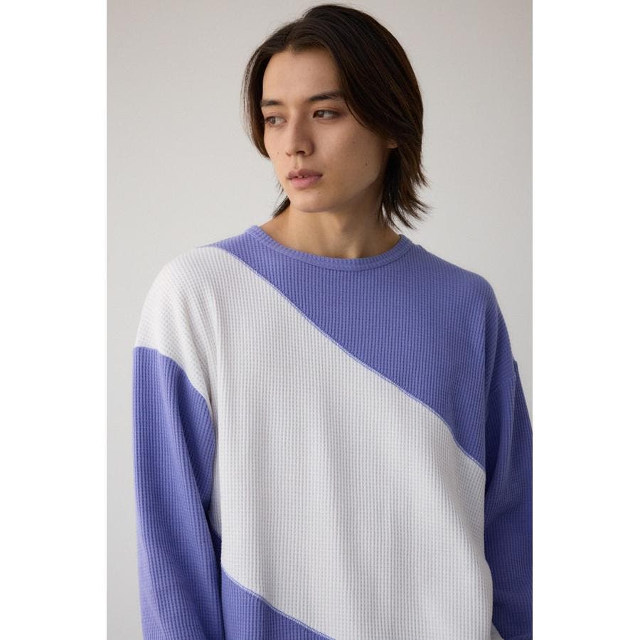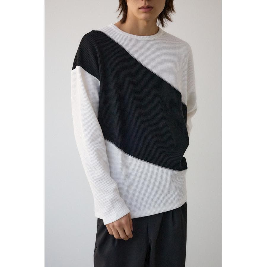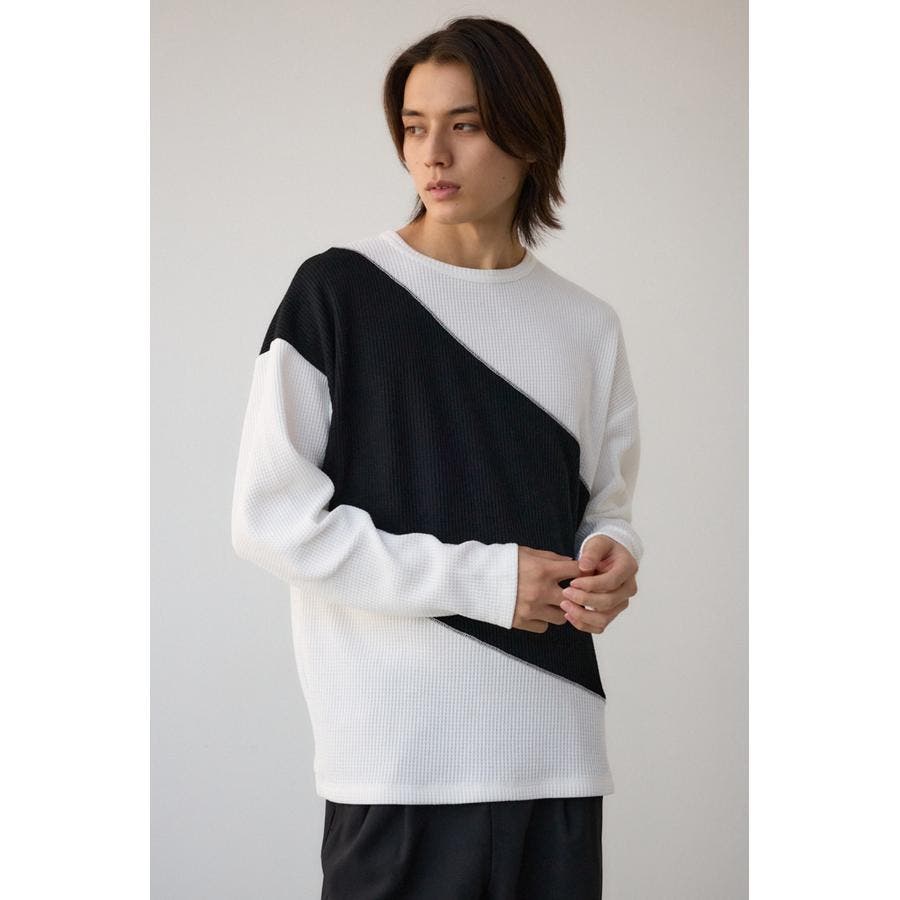 厚みのあるワッフル素材にバイカラーの切り替えがポイントです。