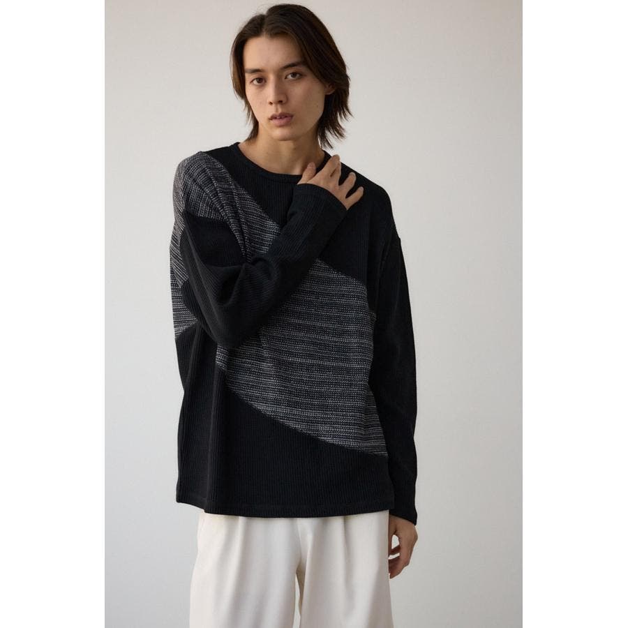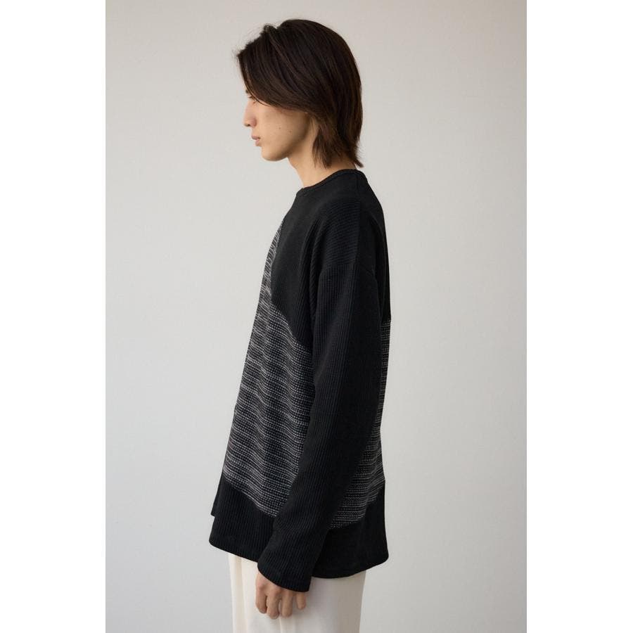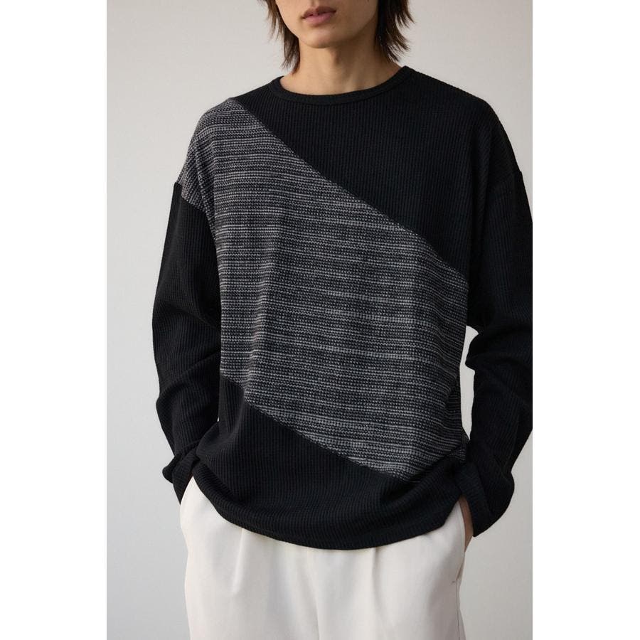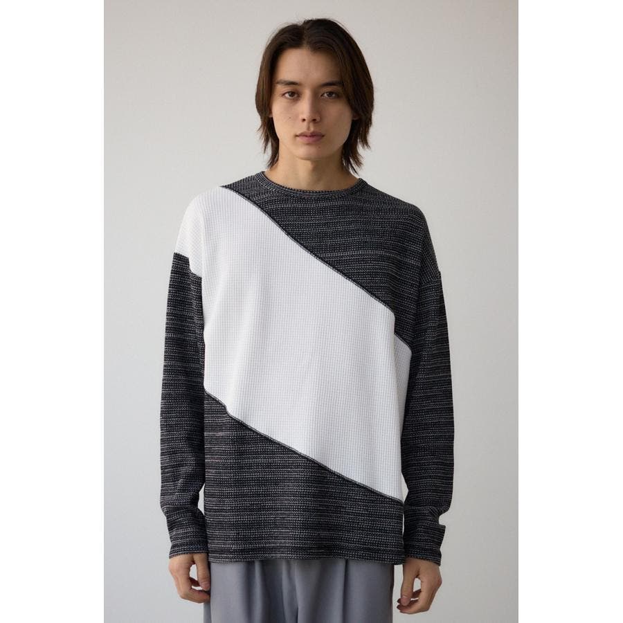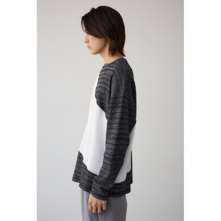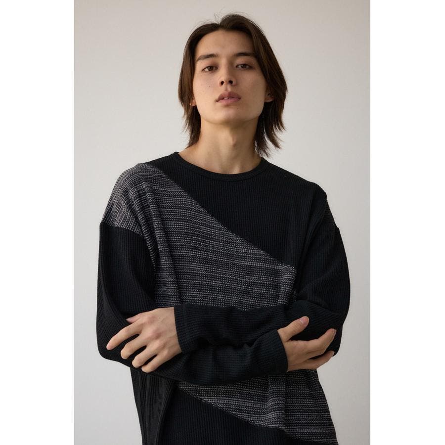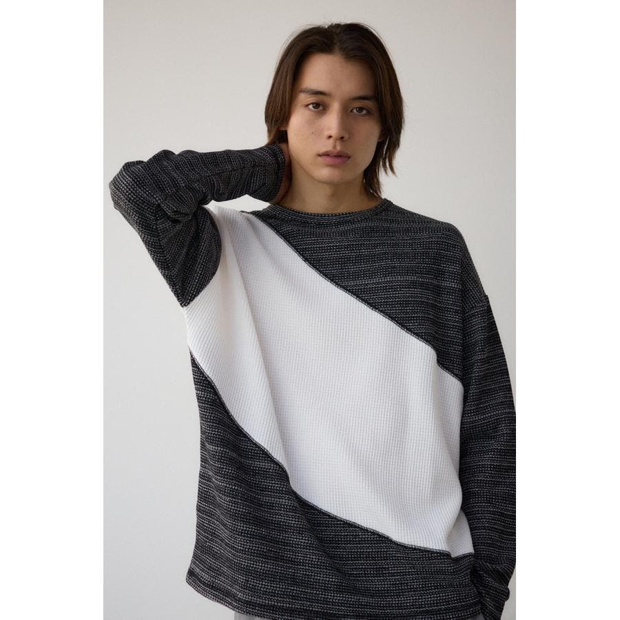 厚みのあるワッフル素材にバイカラーの切り替えがポイントです。