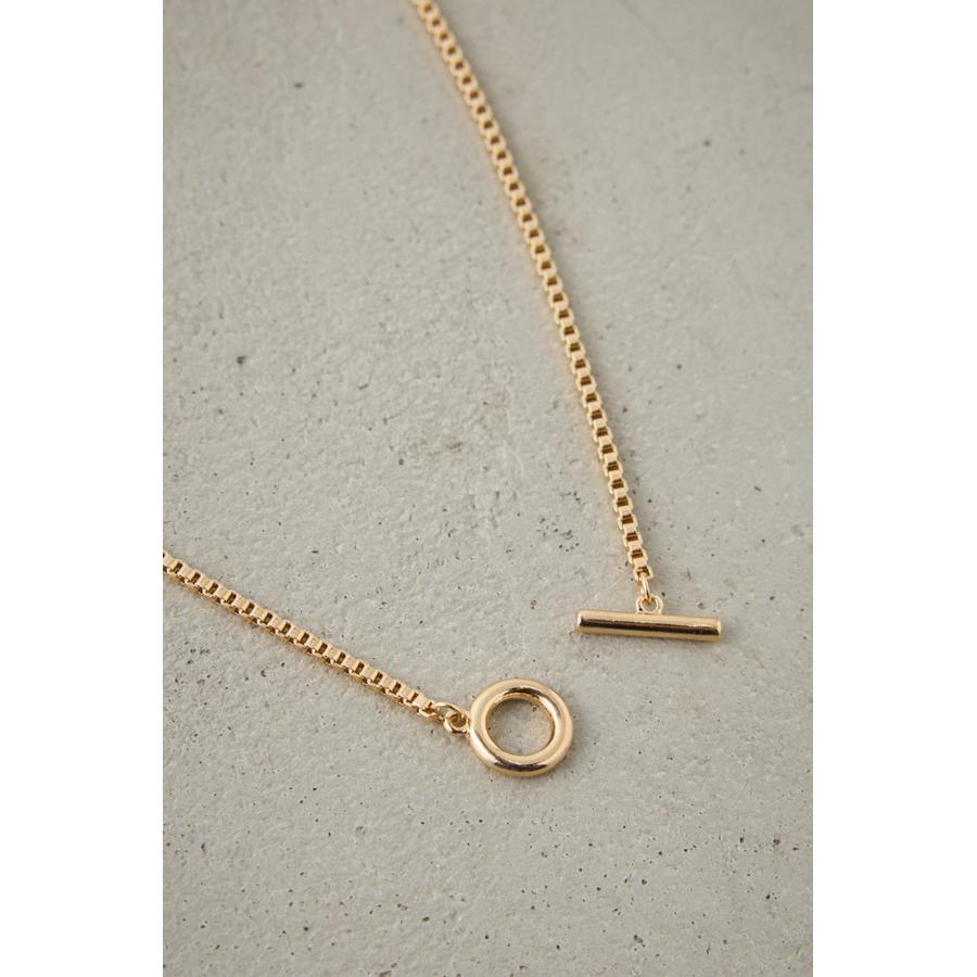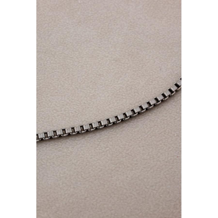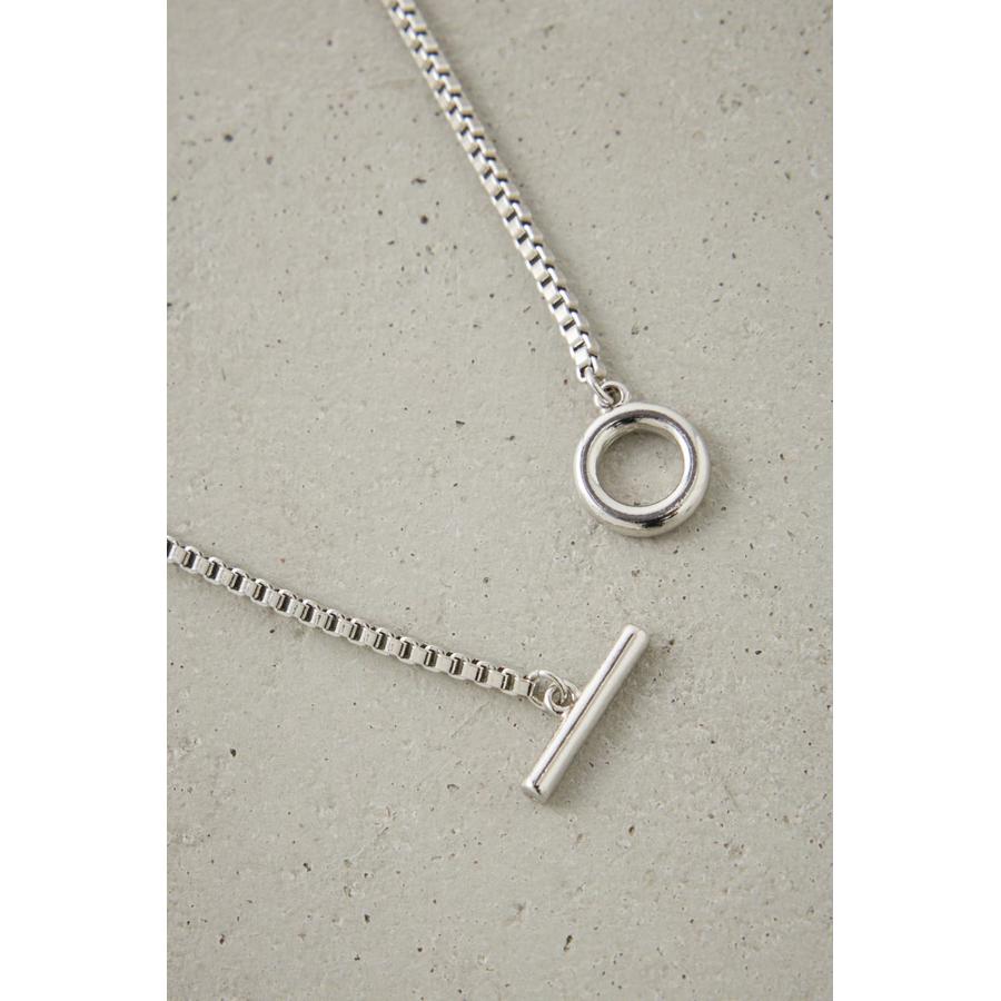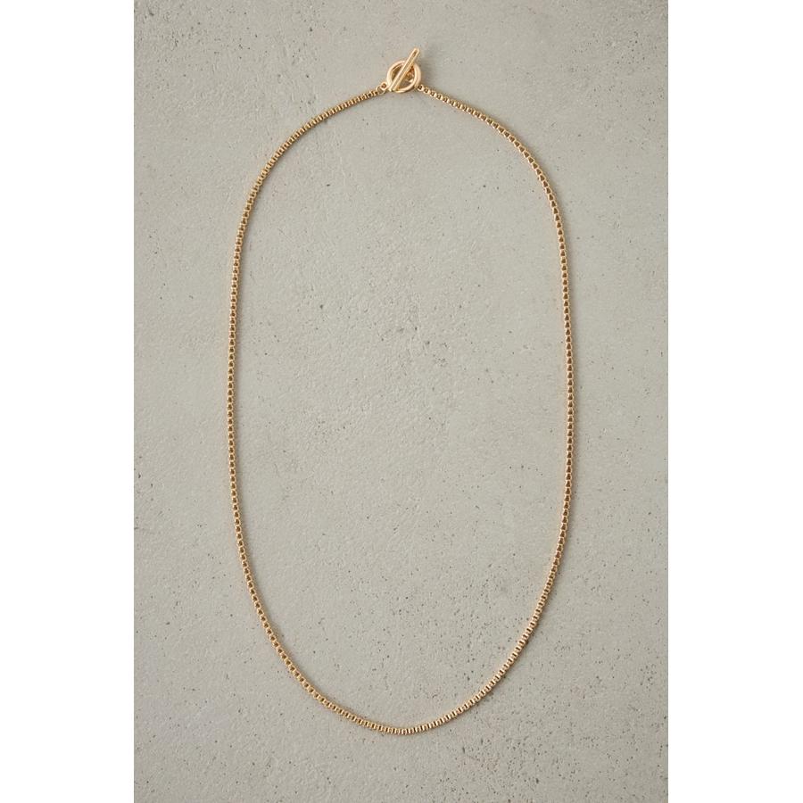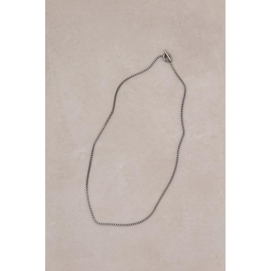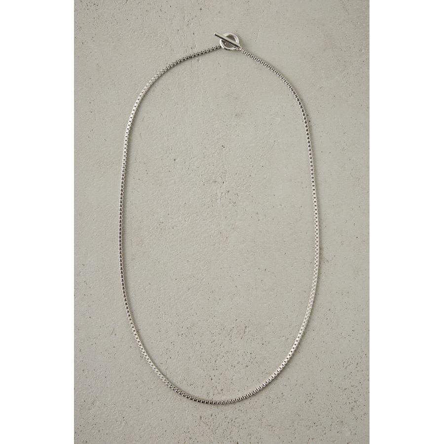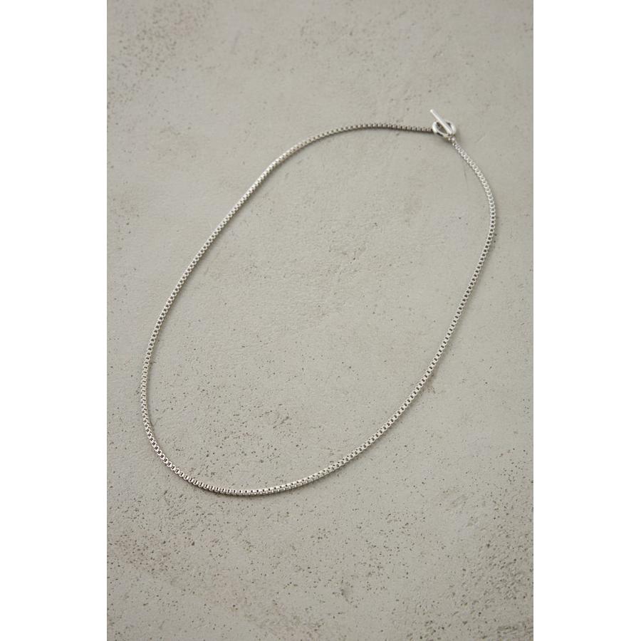 四角いパーツを交互に組み合わせて仕上げたアイテム。細めなデザインなので、首元をすっきり見せてくれます。