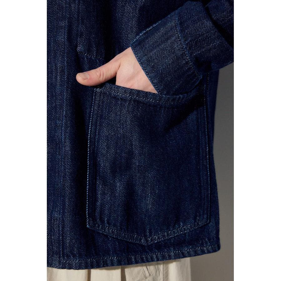ワンウォッシュ加工による落ち着いた色味と、甘撚りのインディゴデニムを使用することで、柔らかく馴染みの良い着心地を実現。