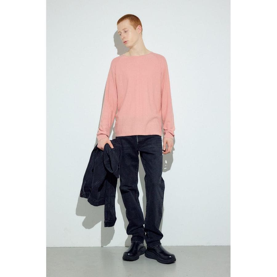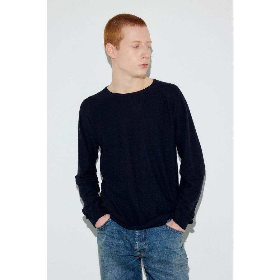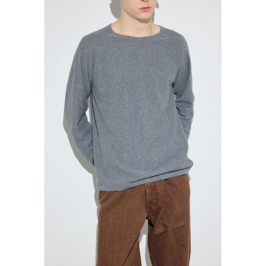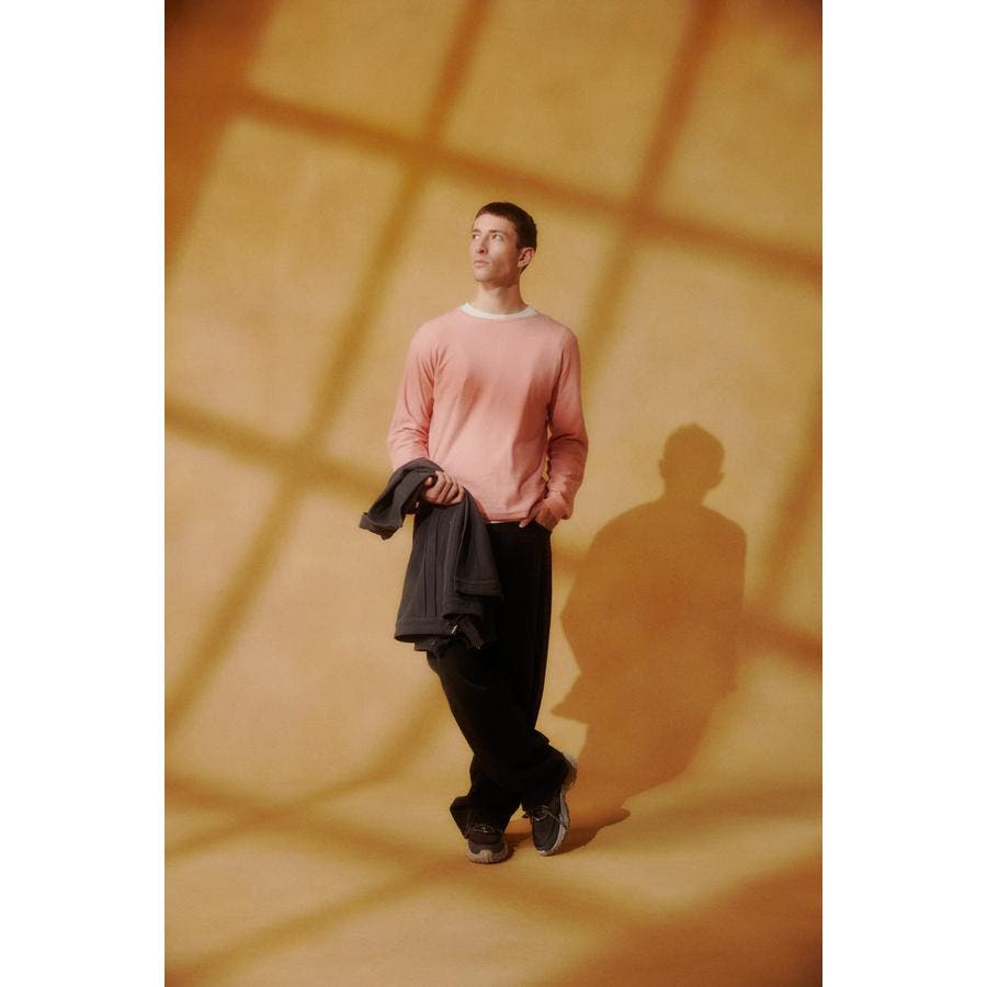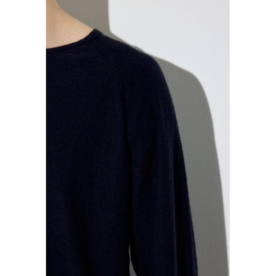 細番手のコットン×カシミヤ混紡糸を高密度に編み上げ、シンプルでクリーンなルックスに程よい上品さをプラスしました。