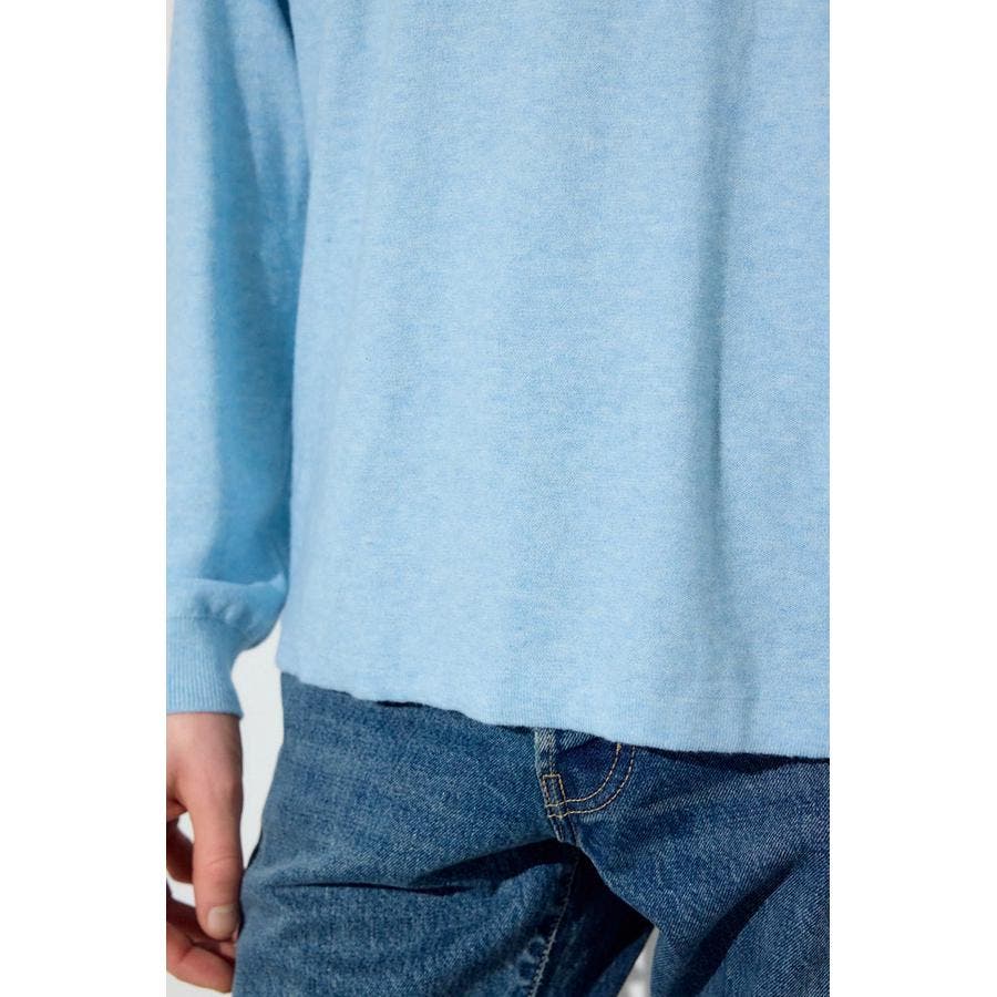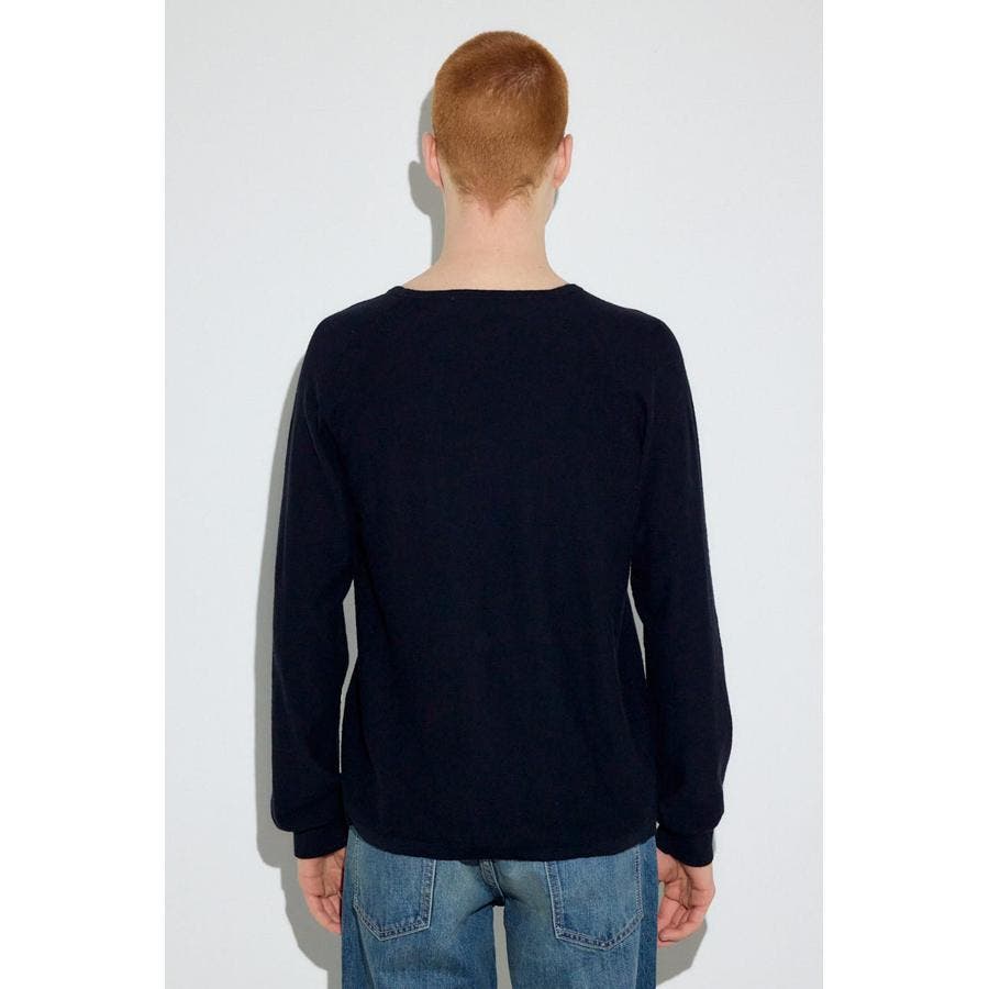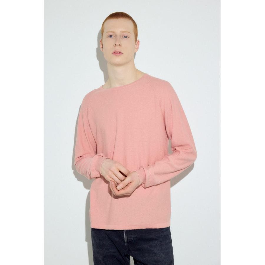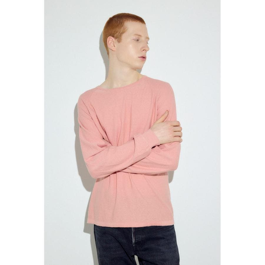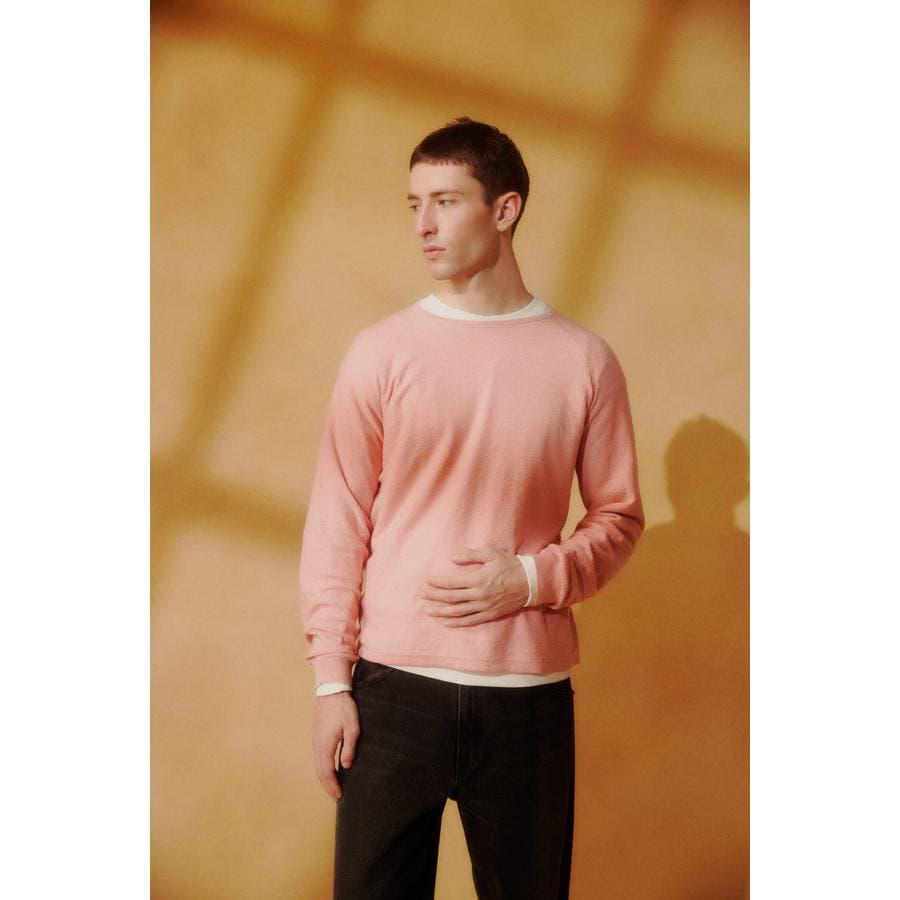 細番手のコットン×カシミヤ混紡糸を高密度に編み上げ、シンプルでクリーンなルックスに程よい上品さをプラスしました。