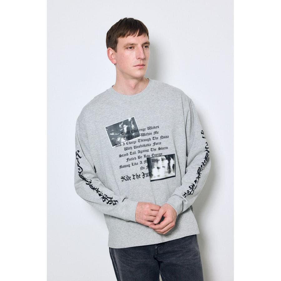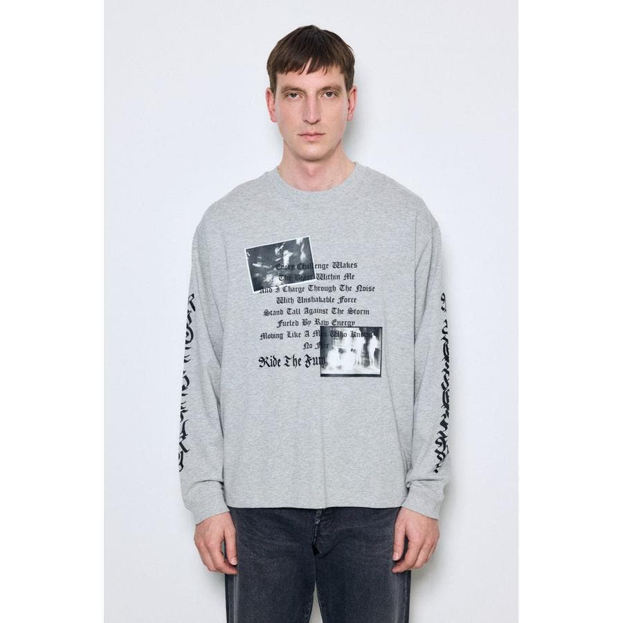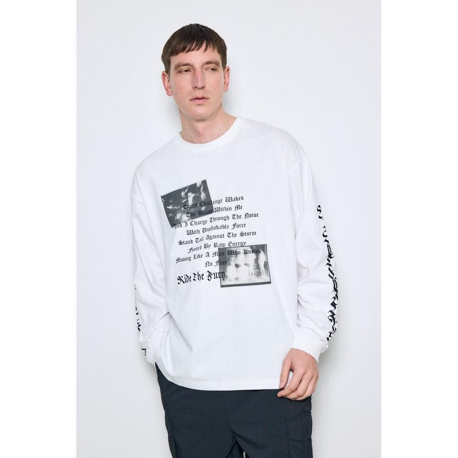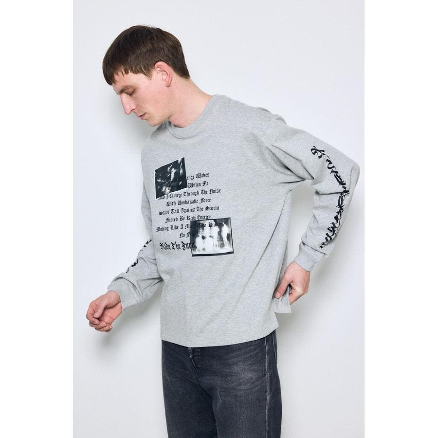 程よい厚みの天竺素材を使用した、ロゴグラフィック長袖Tシャツ。