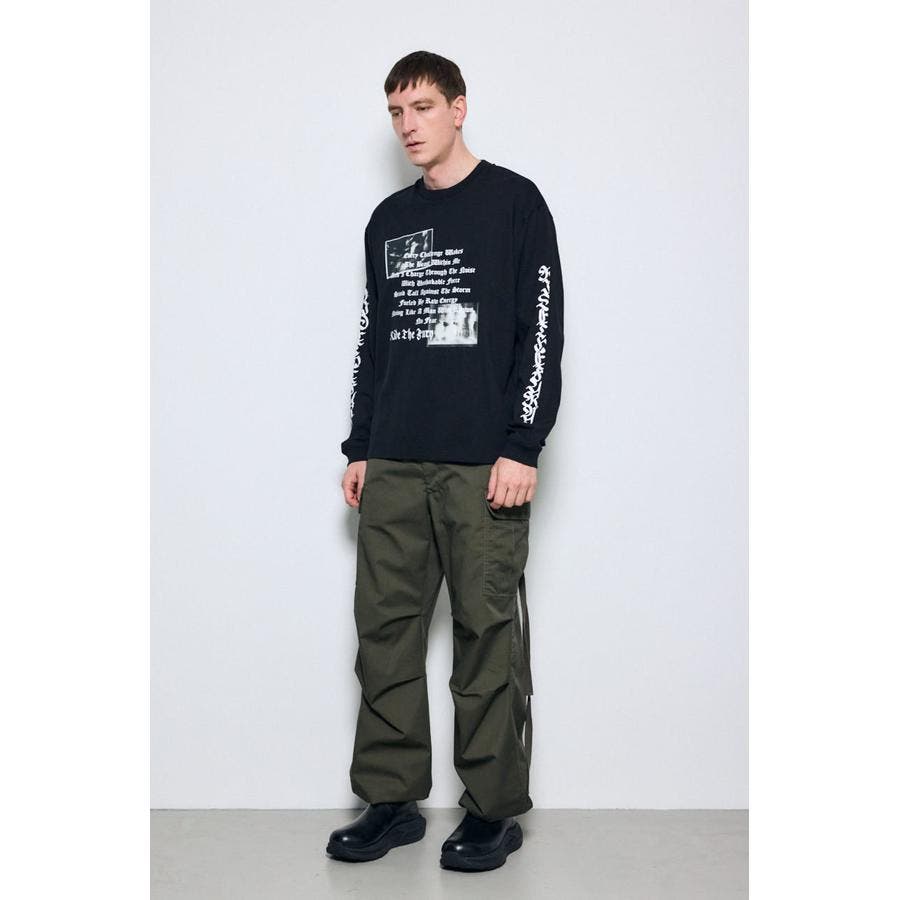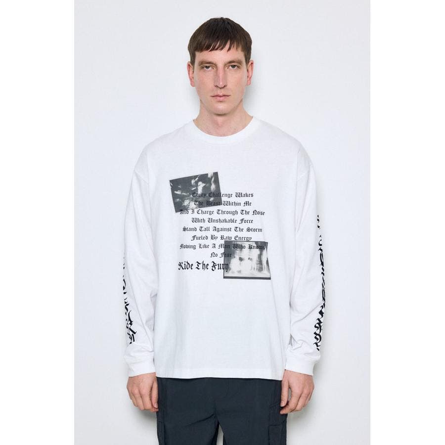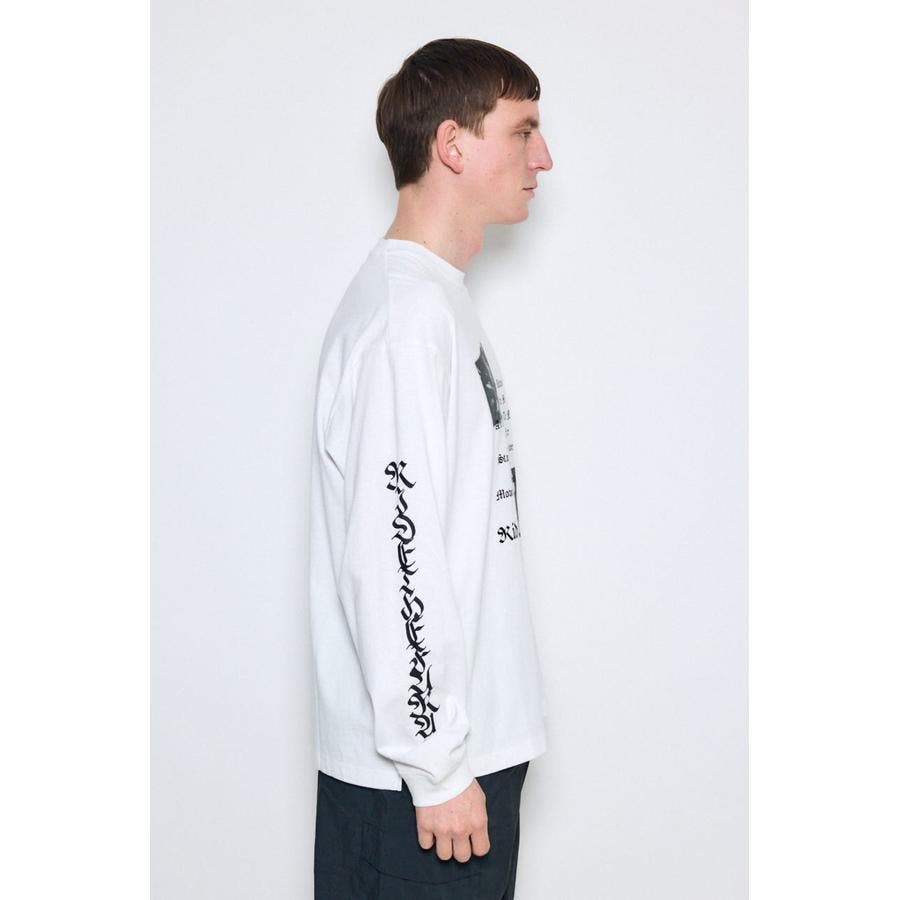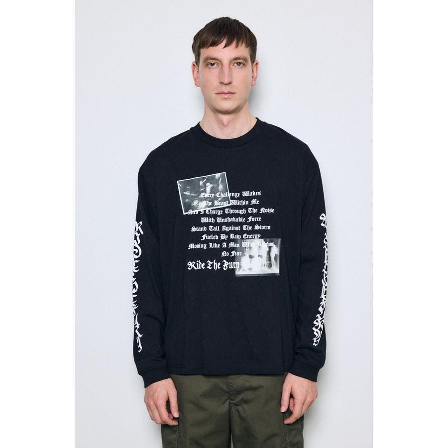 程よい厚みの天竺素材を使用した、ロゴグラフィック長袖Tシャツ。