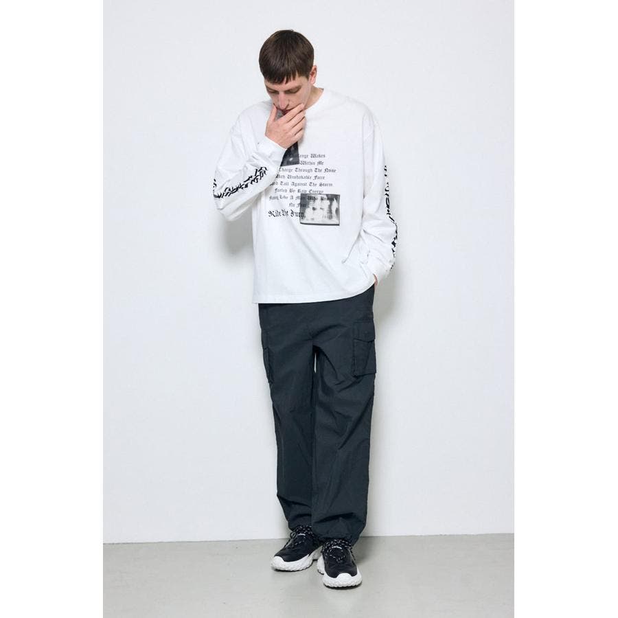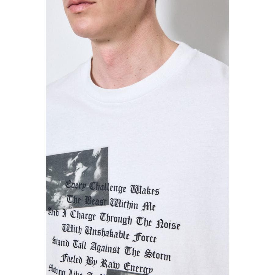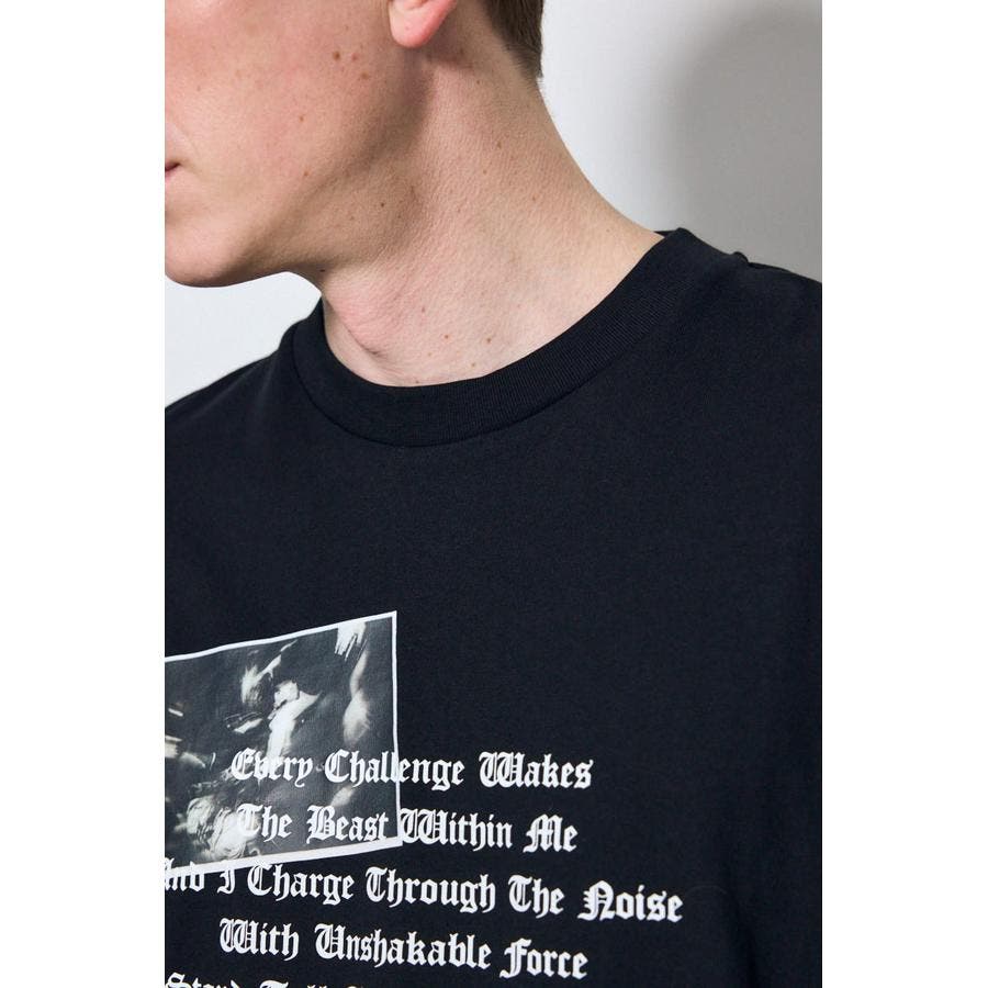フロントのフォトとロゴ、さらに袖に施したロゴプリントがアクセントに。