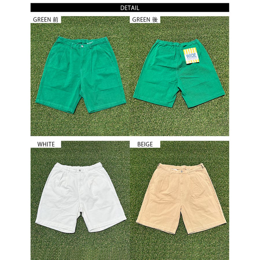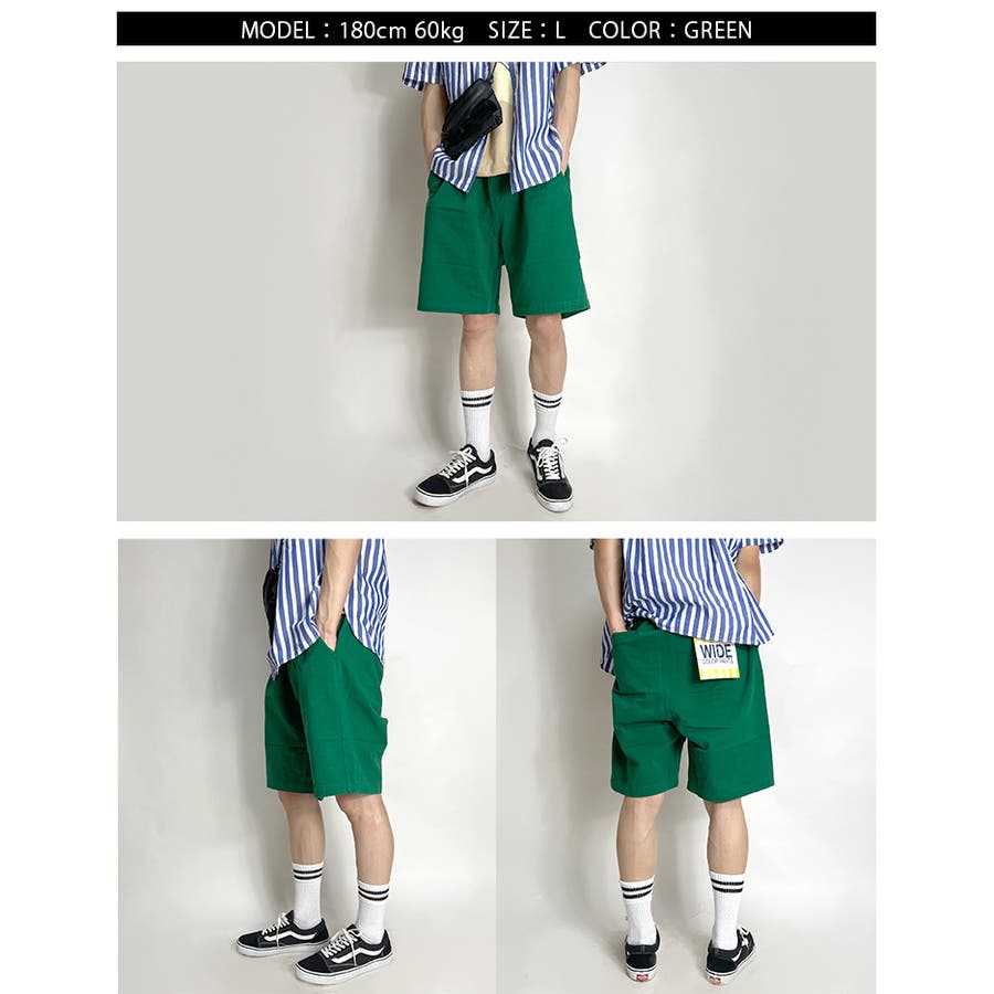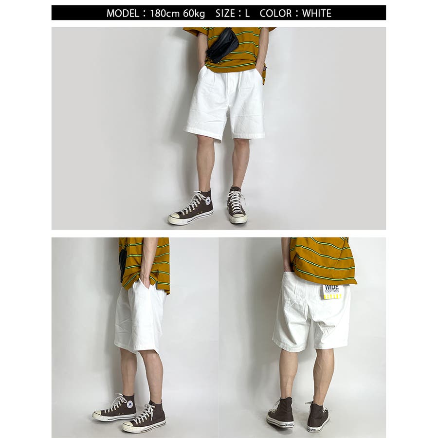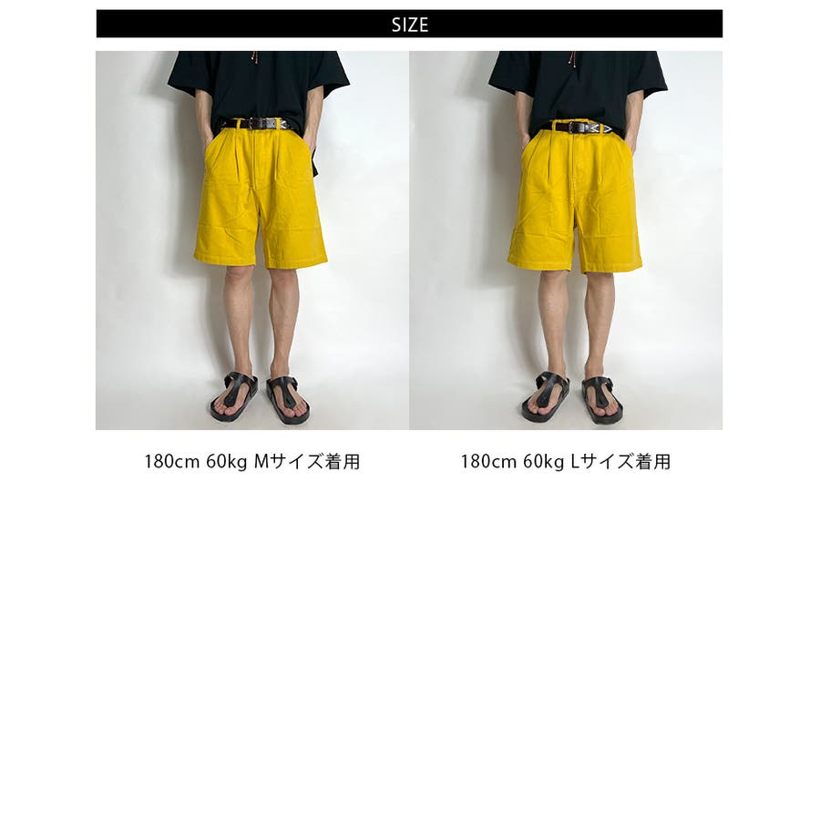 ■サイズ:M/L(cm)---------ウエスト:78/81前股ぐり:34/35股下:20/20ヒップ:116/120わたり:35/36裾幅:30.5/31.5---------■素材■COTTON100%---------ワイドシルエットに仕上げたカラーショートパンツです。しっかりとした生地を使用しています。太すぎず細すぎない絶妙なバランスのコーディネートが仕上がります。フロントジッパーフライにベルトループ、シルエットを際立たせるツータック仕様等、細部まで拘ったアイテムとなります。定番アイテムなのでTシャツや開襟シャツなど幅広いコーディネートにマッチするアイテムです。※実際の商品はモニタの関係上、若干色合いが異なる場合がございます。能色の物は洗濯の際色移りする場合がございます。