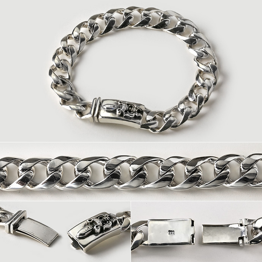 留め具部分にダガー(短刀)をデザインしたブレスレット。喜平チェーンも幅広で存在感抜群です。シルバーアクセ好きなら1つは持っておきたい、定番デザインのアクセサリーです。