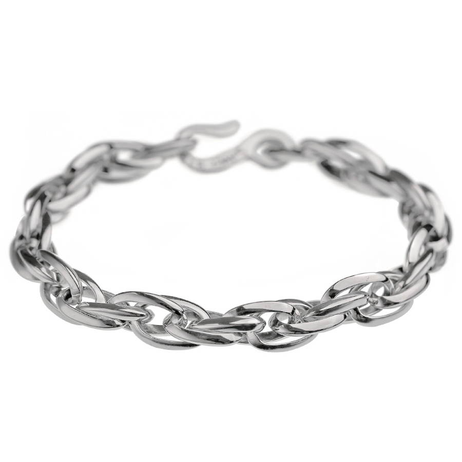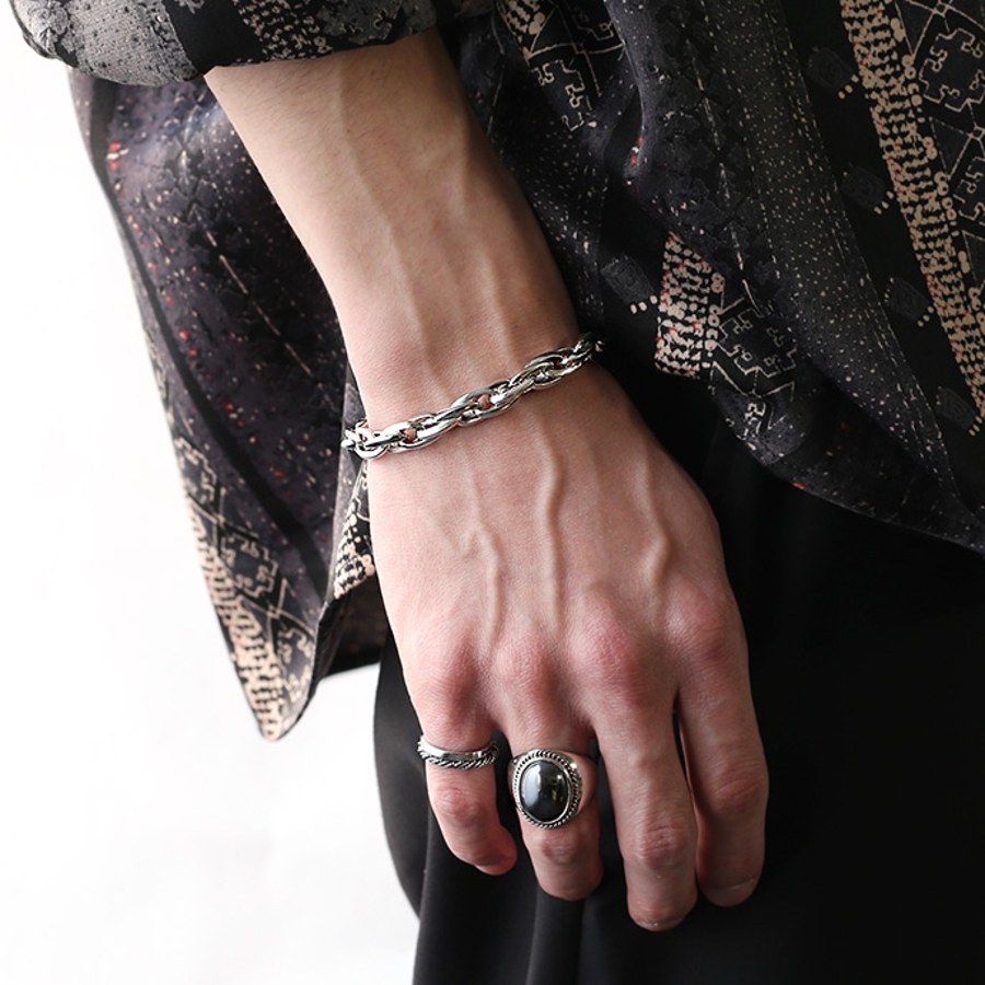 表面の艶が高級感を放つブレスレット。 1つの輪に3つの輪がつながる独特のデザインで、重厚感もありつつシンプルなデザインに仕上がっています。 周りと差がつくシルバー925製ブレスレットで、コーデを格上げしてみては。
