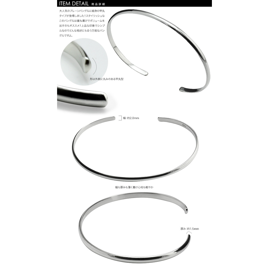 甲丸プレーンナローバングルシルバーBinichビニッチ