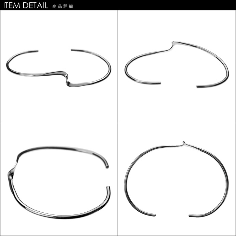中央でねじったデザインのシルバーバングルです。シンプルなのにユニークな造形は、自然と周囲の目を惹きつけそう。細身のバングルなので他のアクセサリーとの重ね着けも◎ですよ。