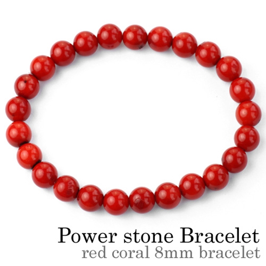 レッドコーラルブレスレット8mm玉パワーストーン天然石Binichビニッチ