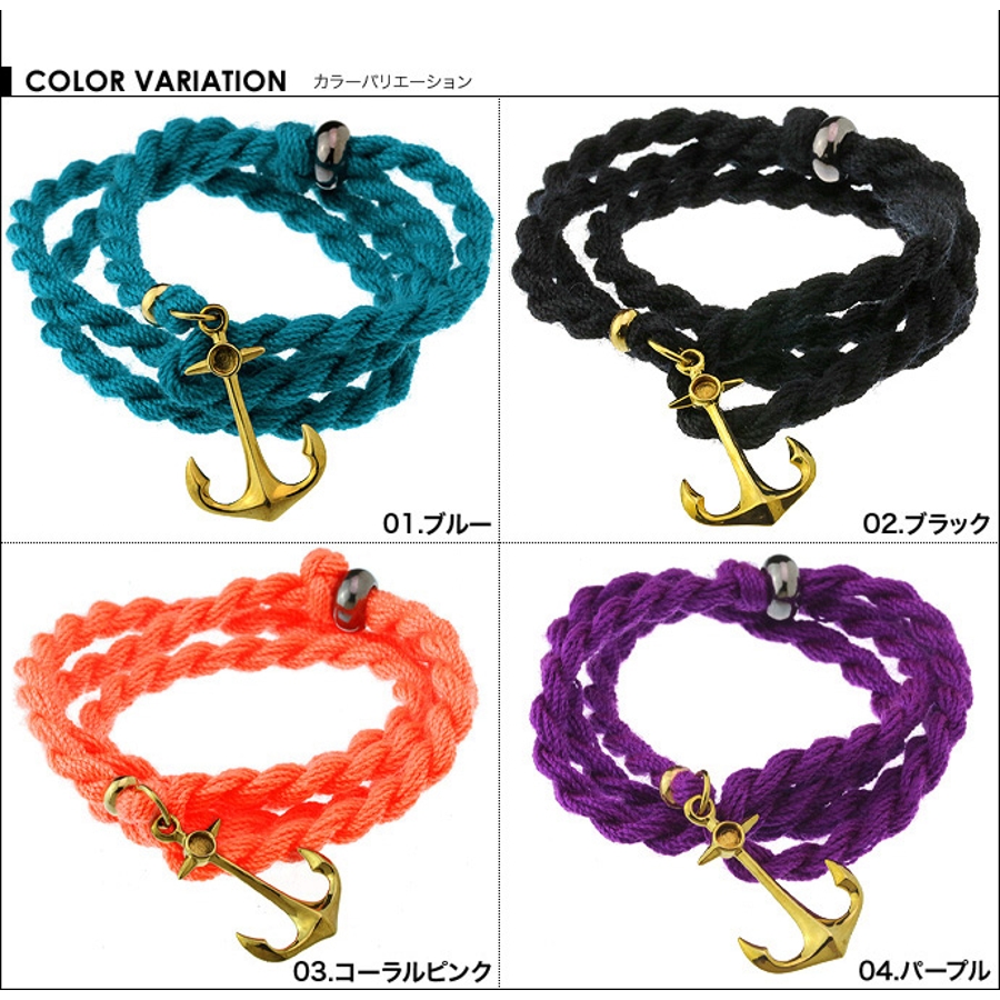 ゴールドアンカーロープブレスレット全4色カラーブレスレット錨Binichビニッチ…