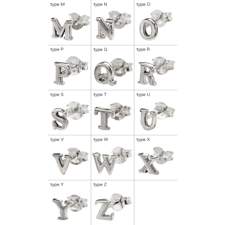 小ぶりでシンプルなブロック体のアルファベットピアス。自分のイニシャルだけでなく、大切な人のイニシャルと合わせて両耳に着けたり、子供のイニシャルを着けてみたりと、意味を込めて選びたいアイテムです。流行に左右されない定番デザインなので、プレゼントとしてもオススメです。