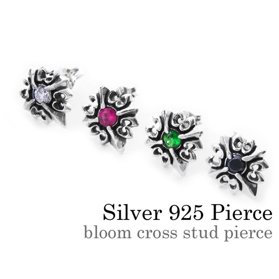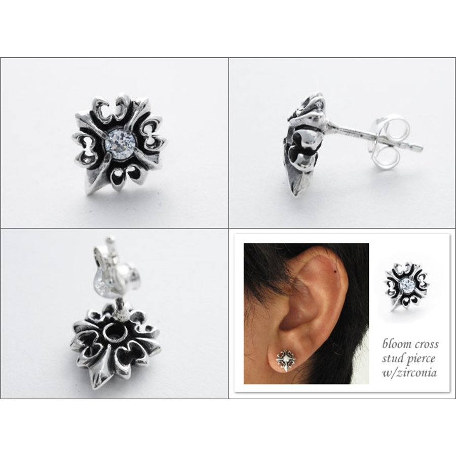 ブルームクロススタッドピアスwジルコニアメンズシルバー925アクセサリー片耳用1…